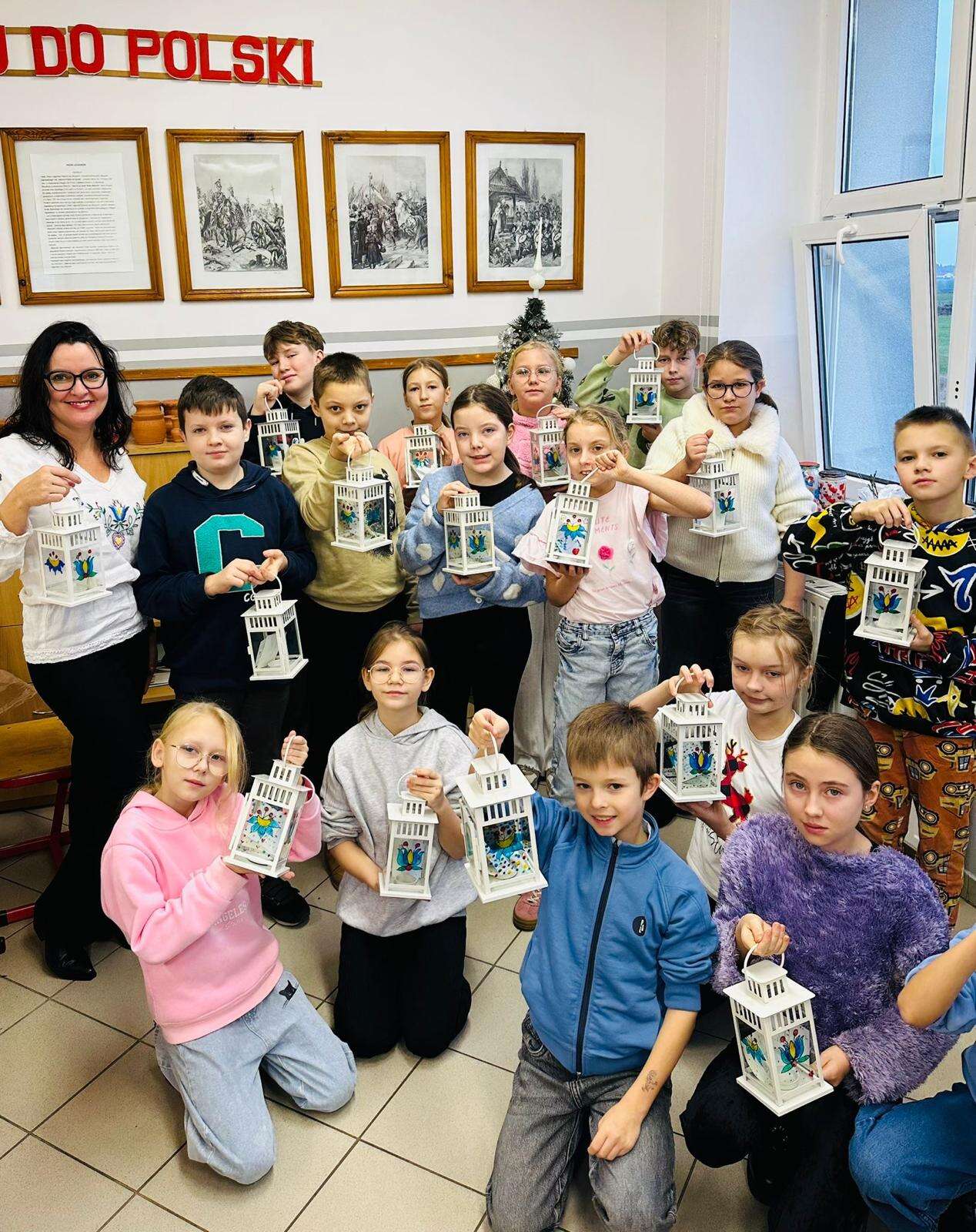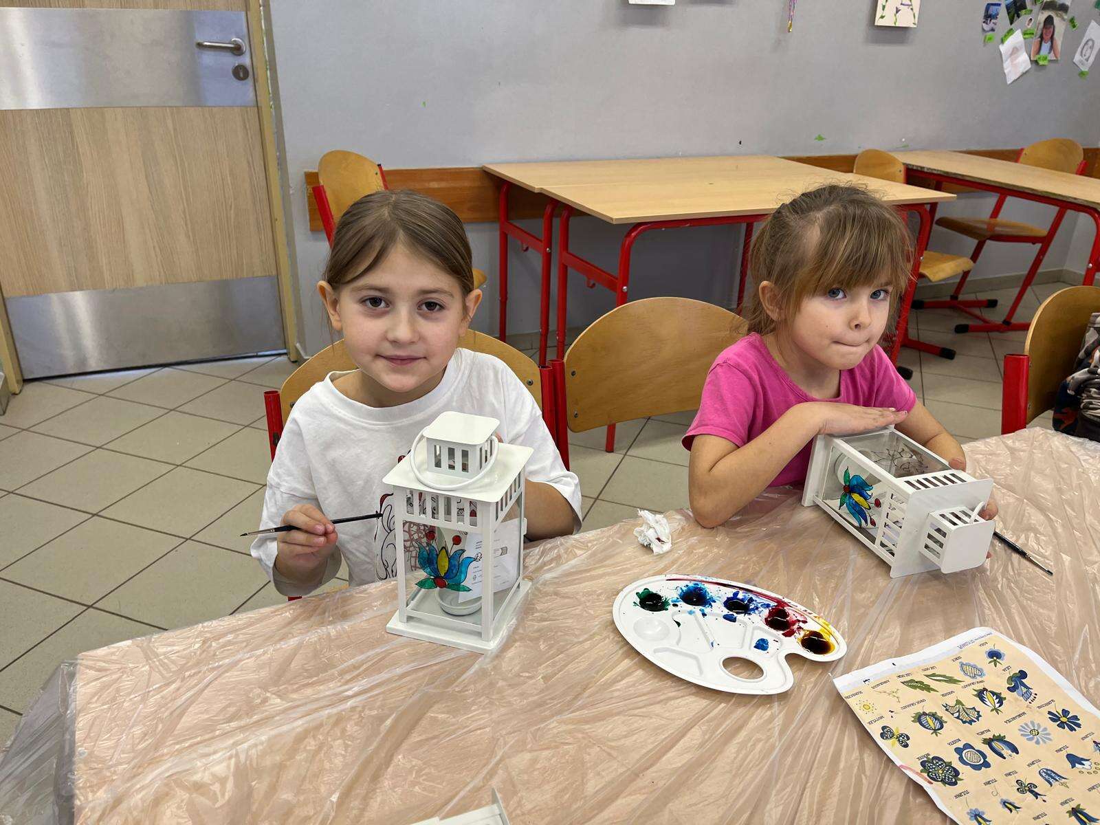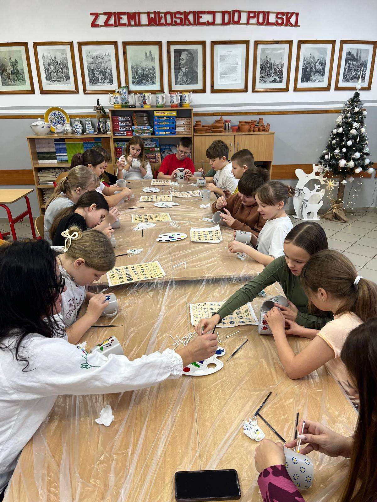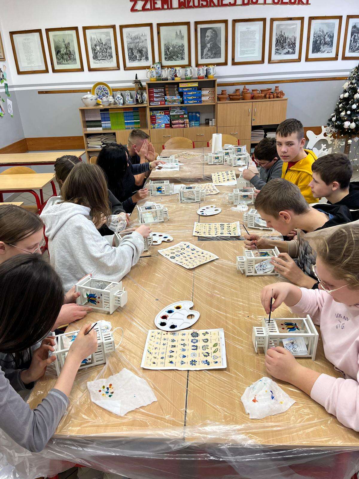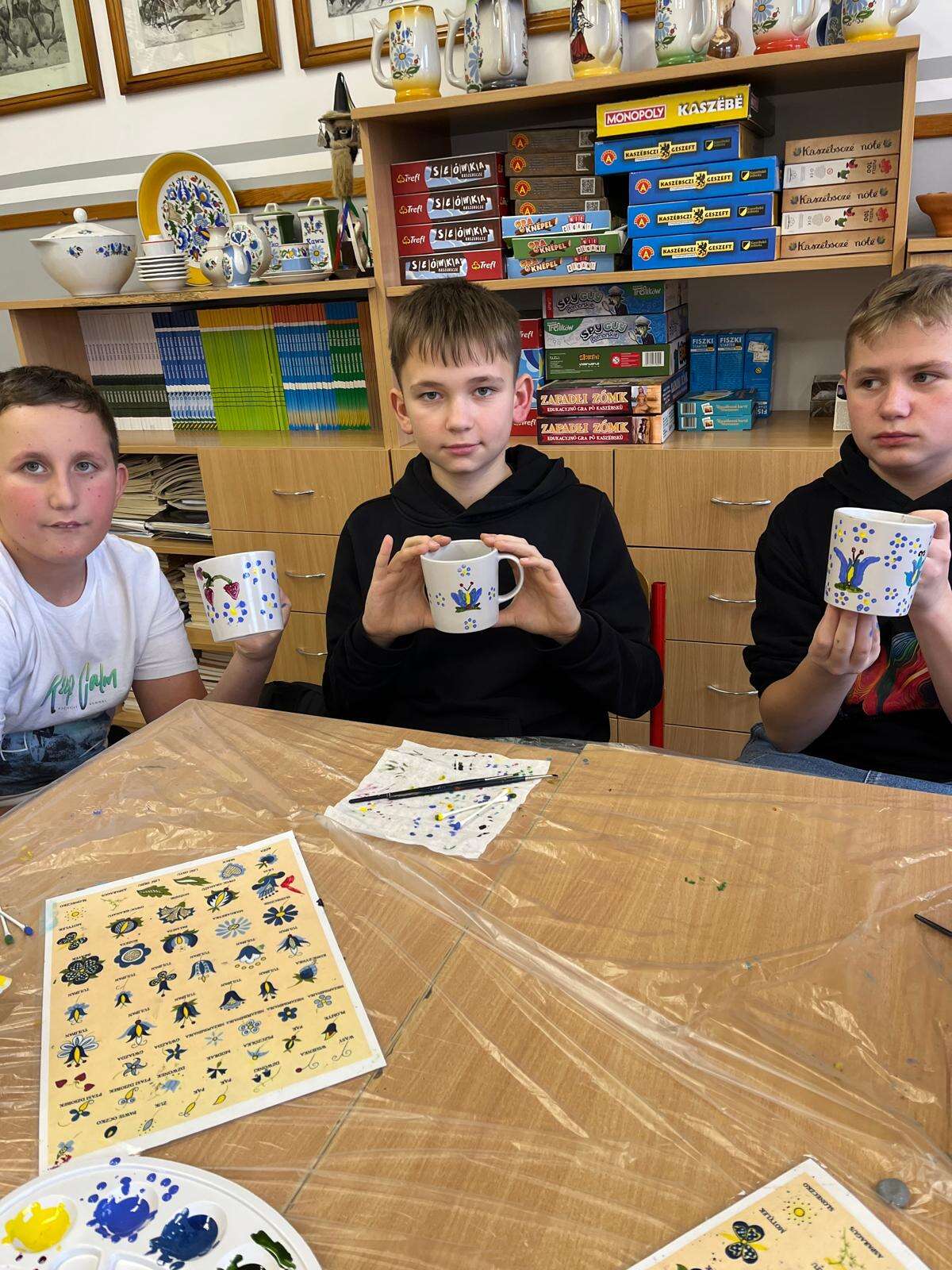 Podczas zajęć dzieci malowały lampiony oraz kubki, zdobiąc je tradycyjnymi wzorami kaszubskimi. Uczniowie z dużym zaangażowaniem i radością tworzyli swoje prace, jednocześnie poznając znaczenie charakterystycznych motywów i kolorów regionu. Każda z wykonanych ozdób była niepowtarzalna i stanowiła piękną, własnoręcznie przygotowaną dekorację świąteczną.