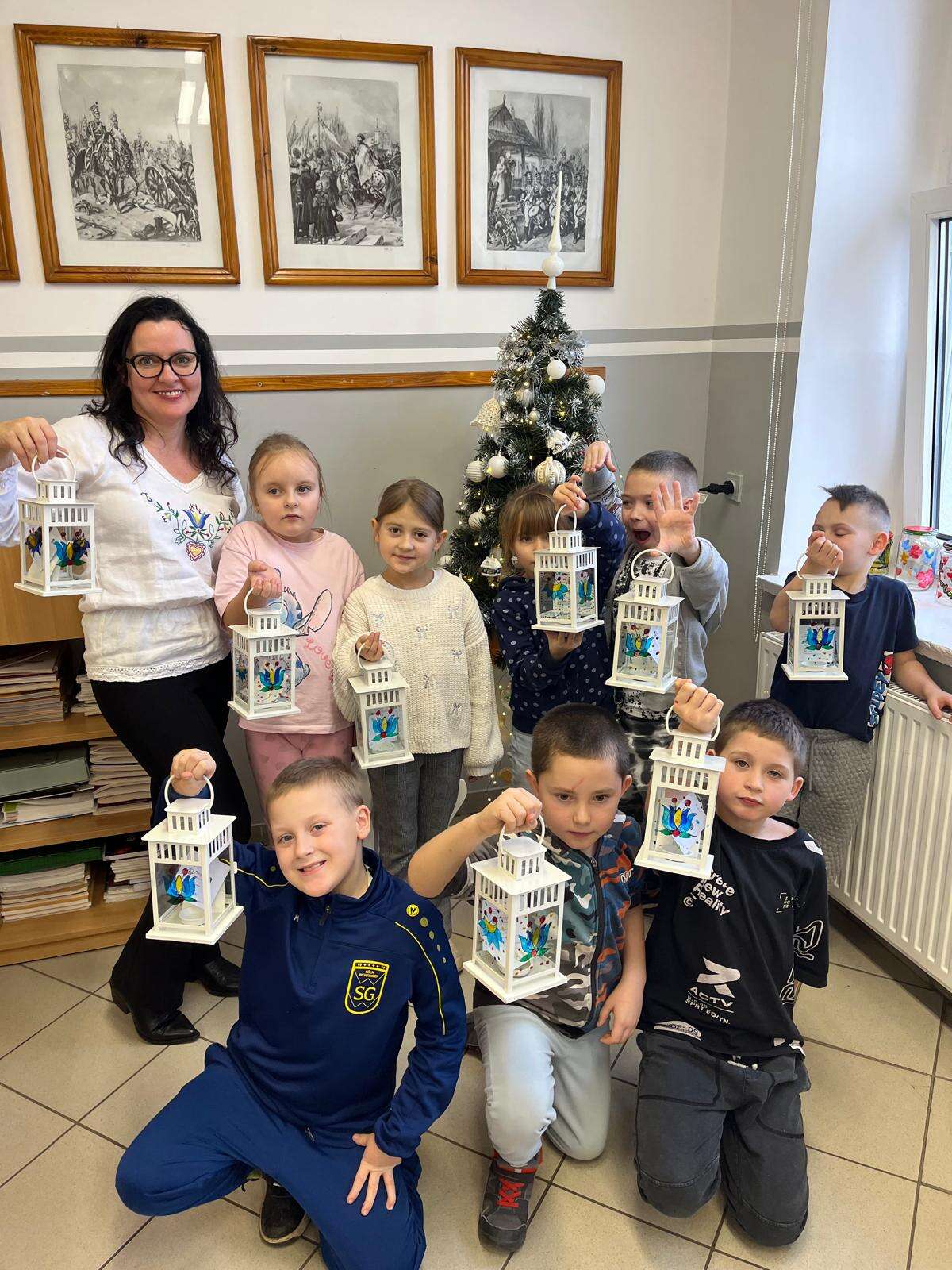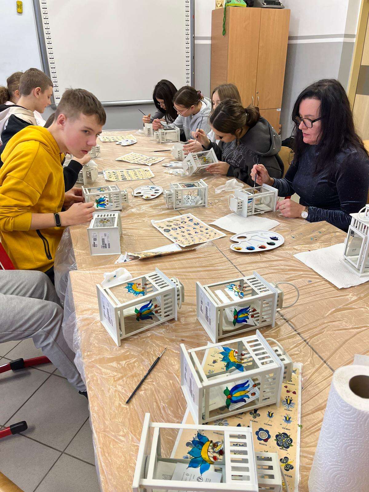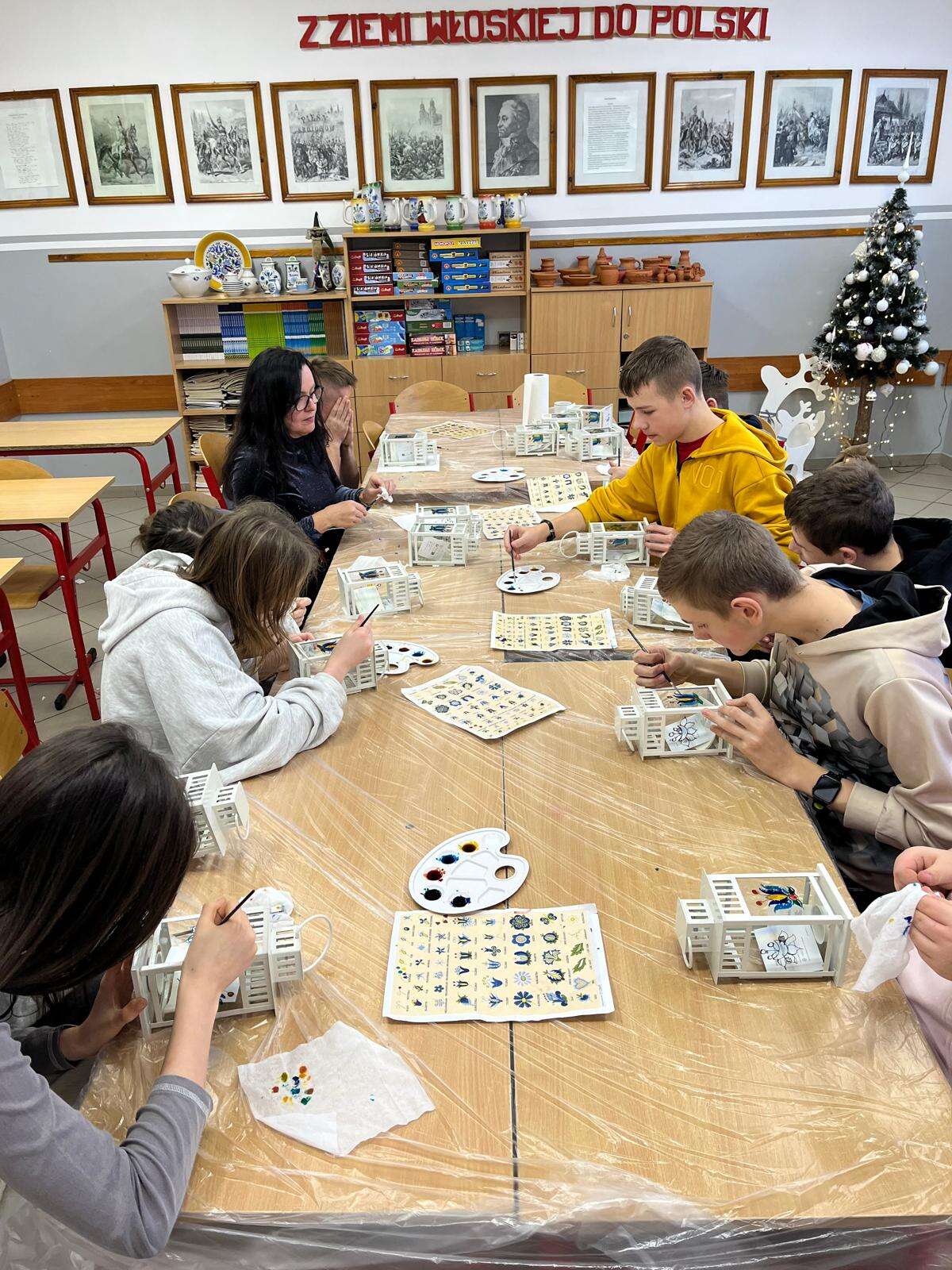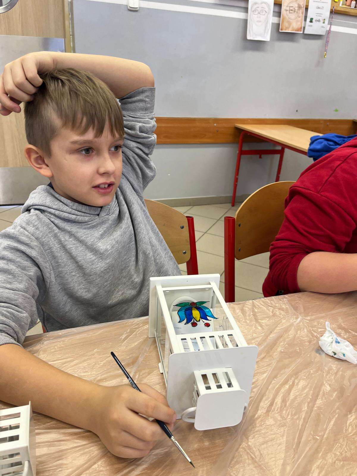 Podczas zajęć dzieci malowały lampiony oraz kubki, zdobiąc je tradycyjnymi wzorami kaszubskimi. Uczniowie z dużym zaangażowaniem i radością tworzyli swoje prace, jednocześnie poznając znaczenie charakterystycznych motywów i kolorów regionu. Każda z wykonanych ozdób była niepowtarzalna i stanowiła piękną, własnoręcznie przygotowaną dekorację świąteczną.