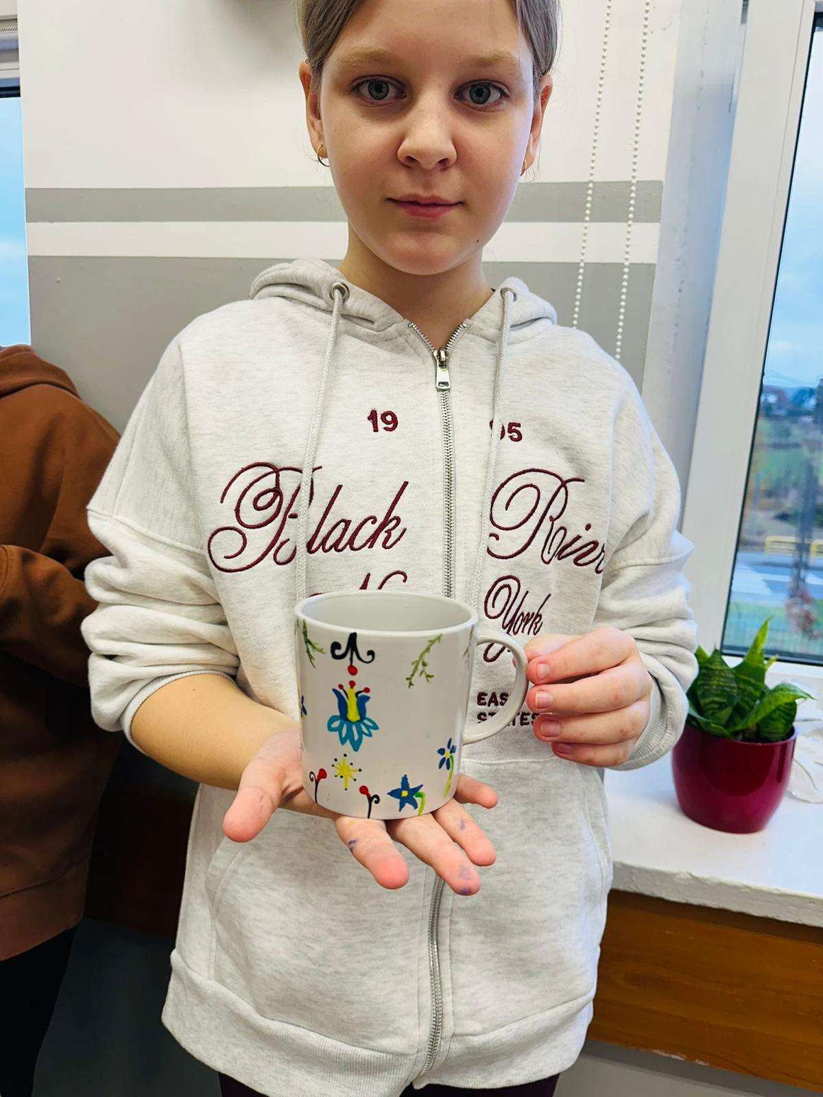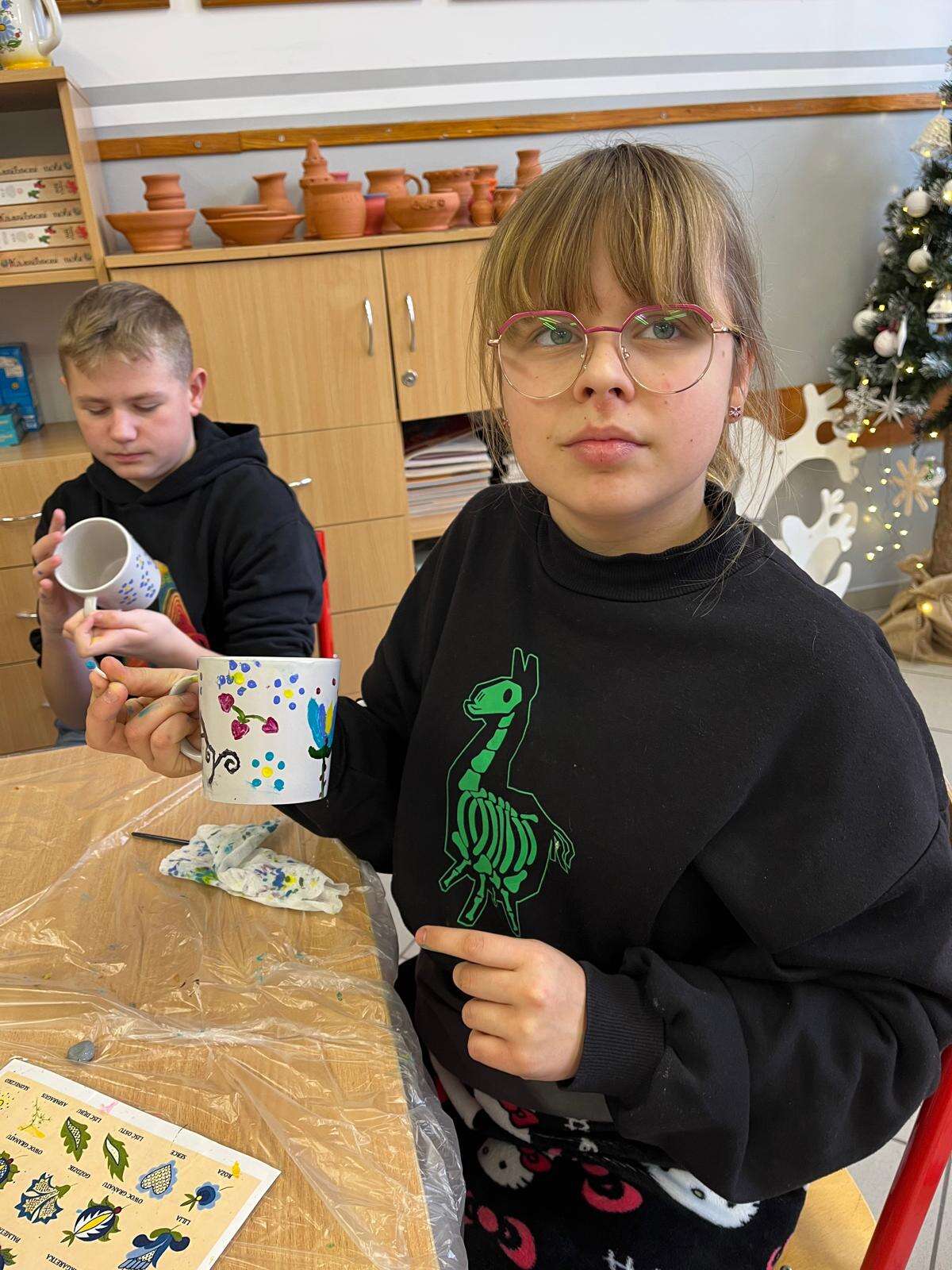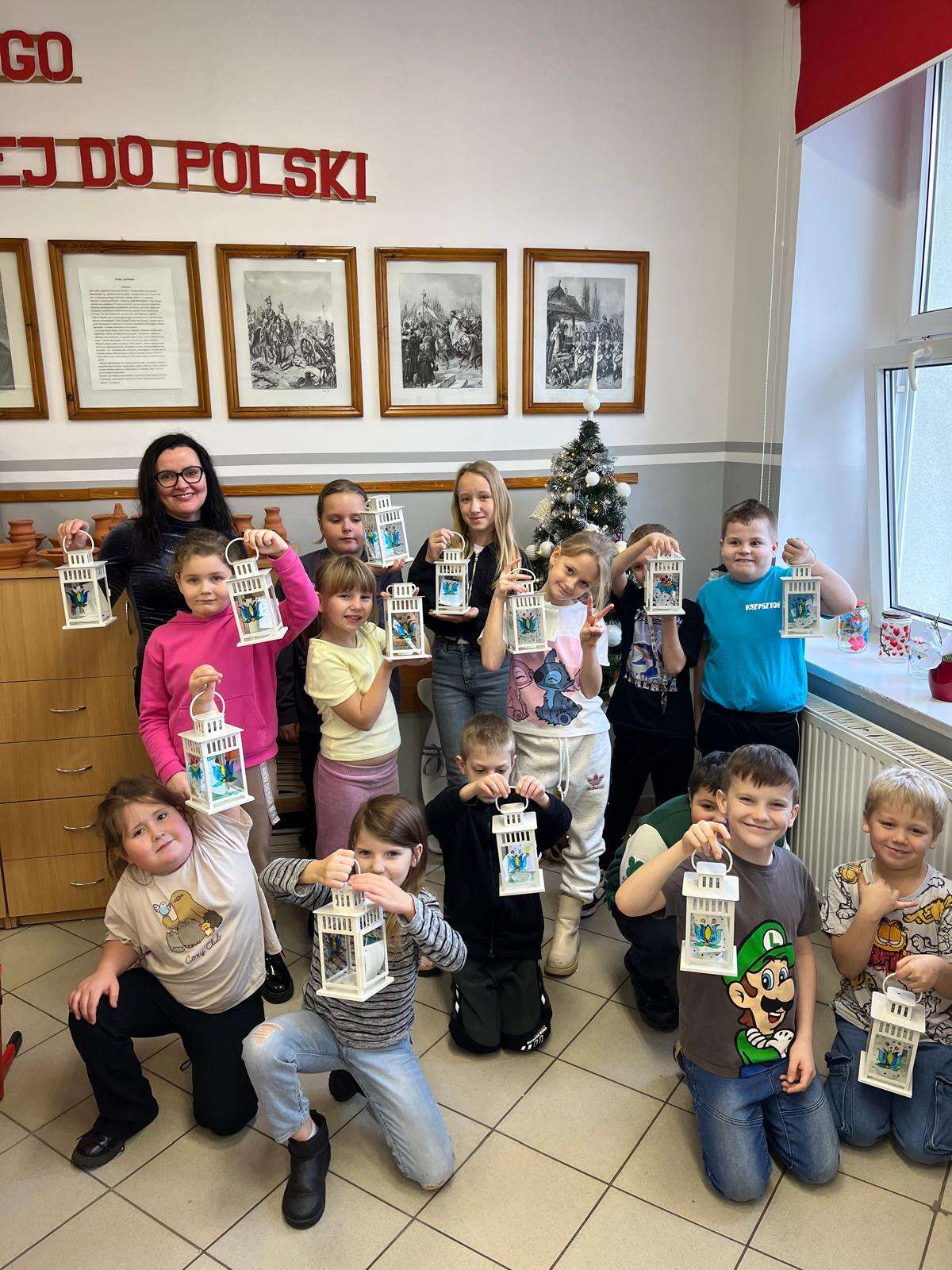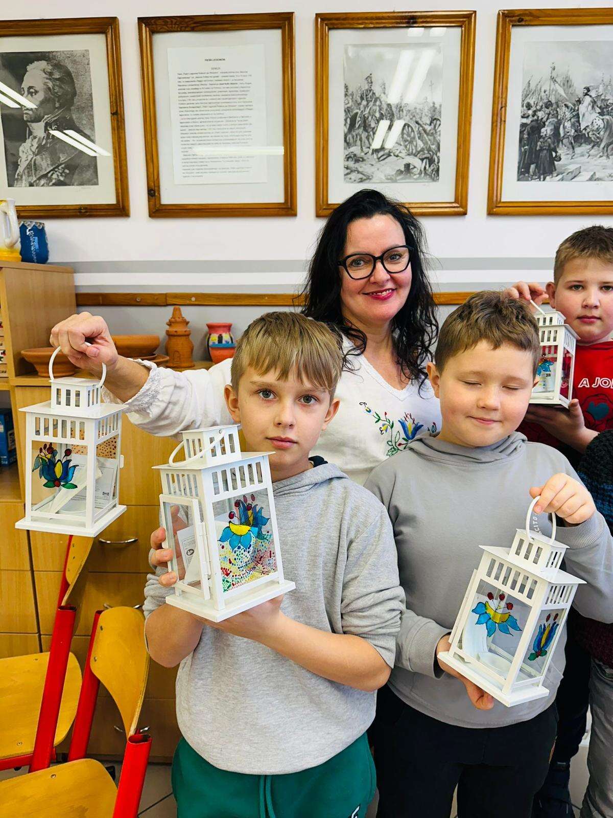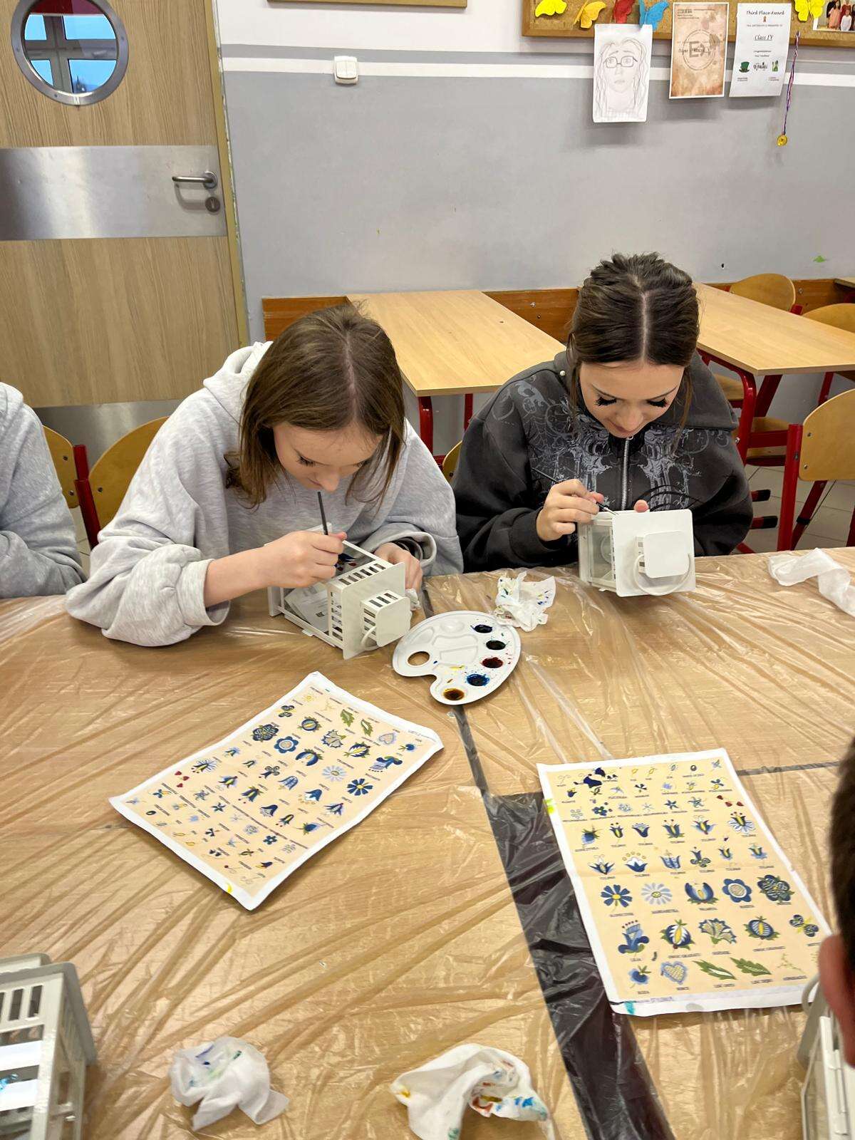 Podczas zajęć dzieci malowały lampiony oraz kubki, zdobiąc je tradycyjnymi wzorami kaszubskimi. Uczniowie z dużym zaangażowaniem i radością tworzyli swoje prace, jednocześnie poznając znaczenie charakterystycznych motywów i kolorów regionu. Każda z wykonanych ozdób była niepowtarzalna i stanowiła piękną, własnoręcznie przygotowaną dekorację świąteczną.