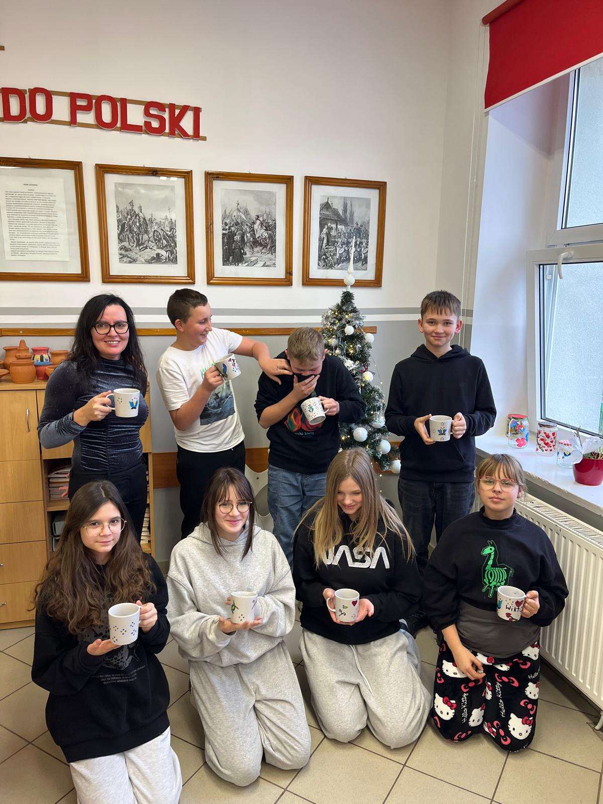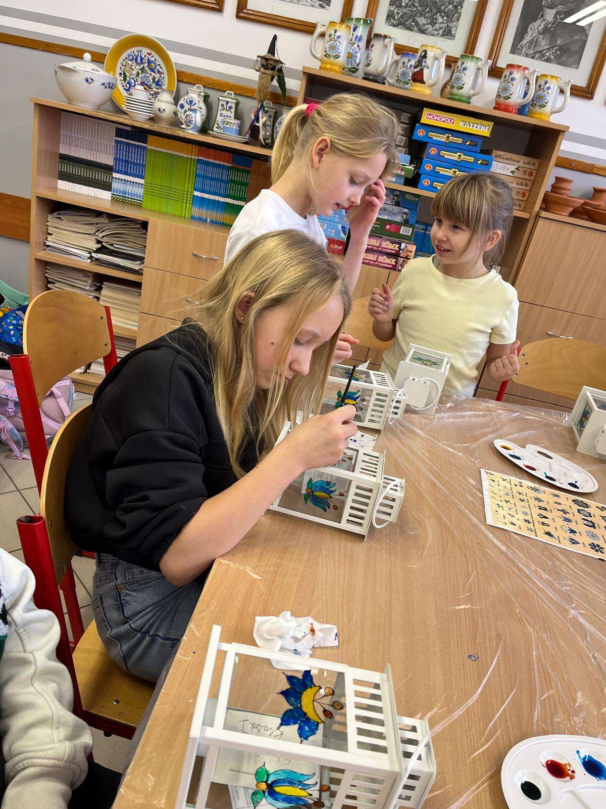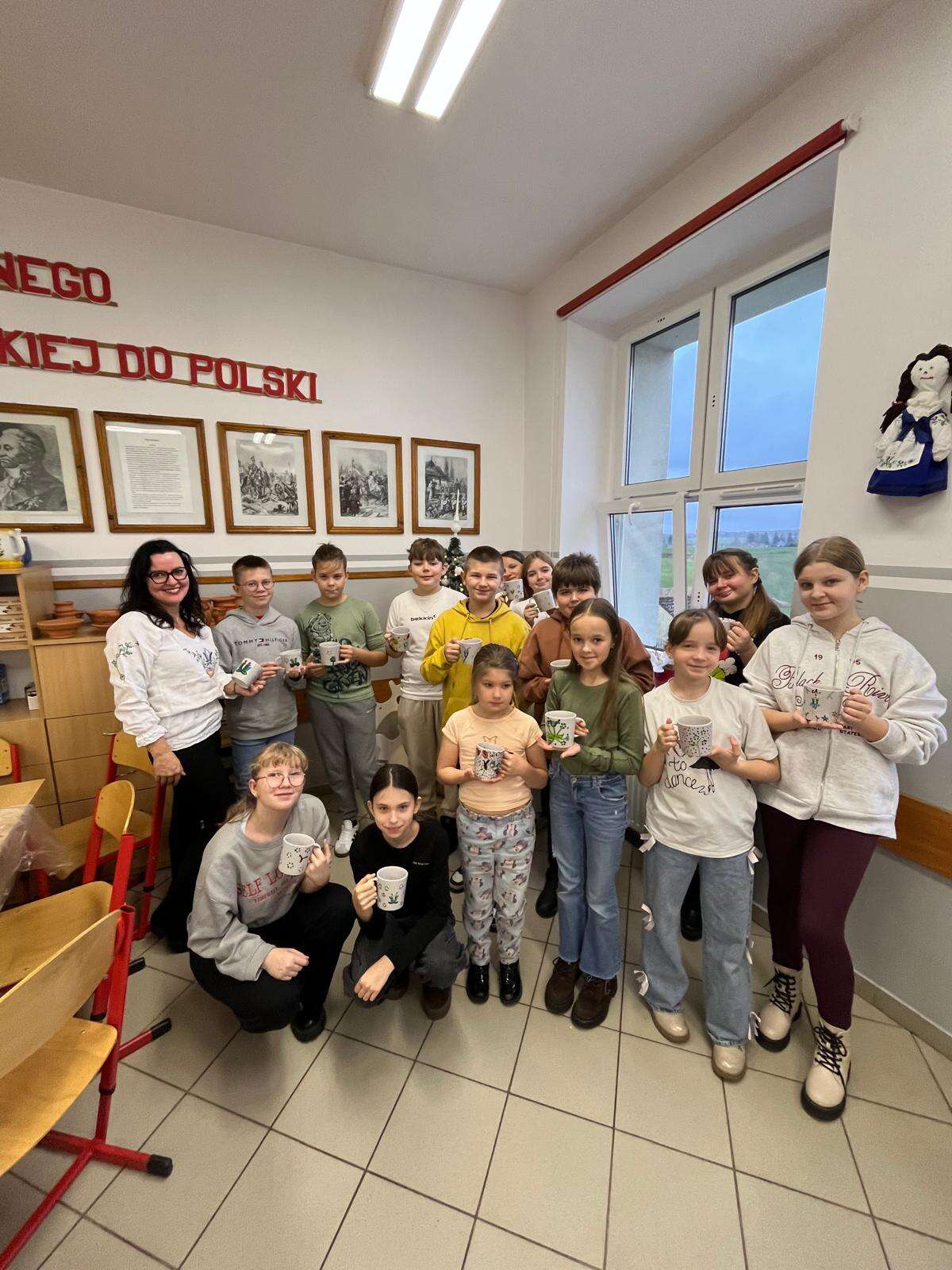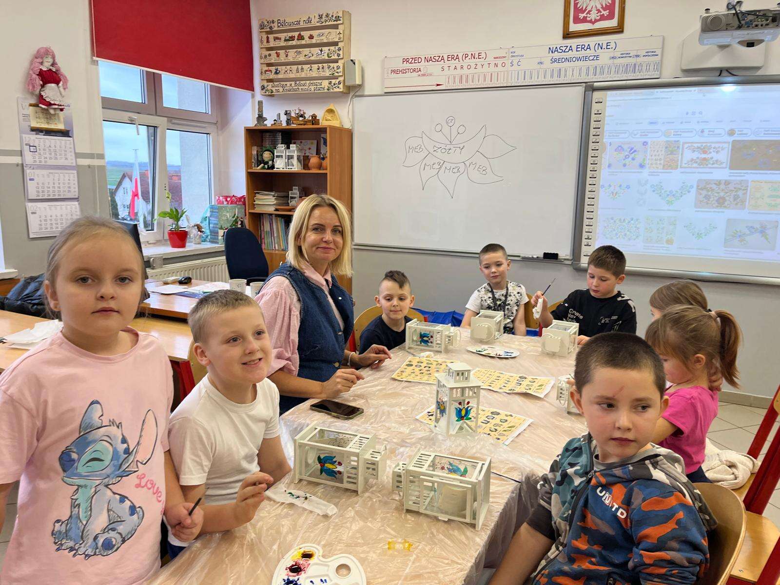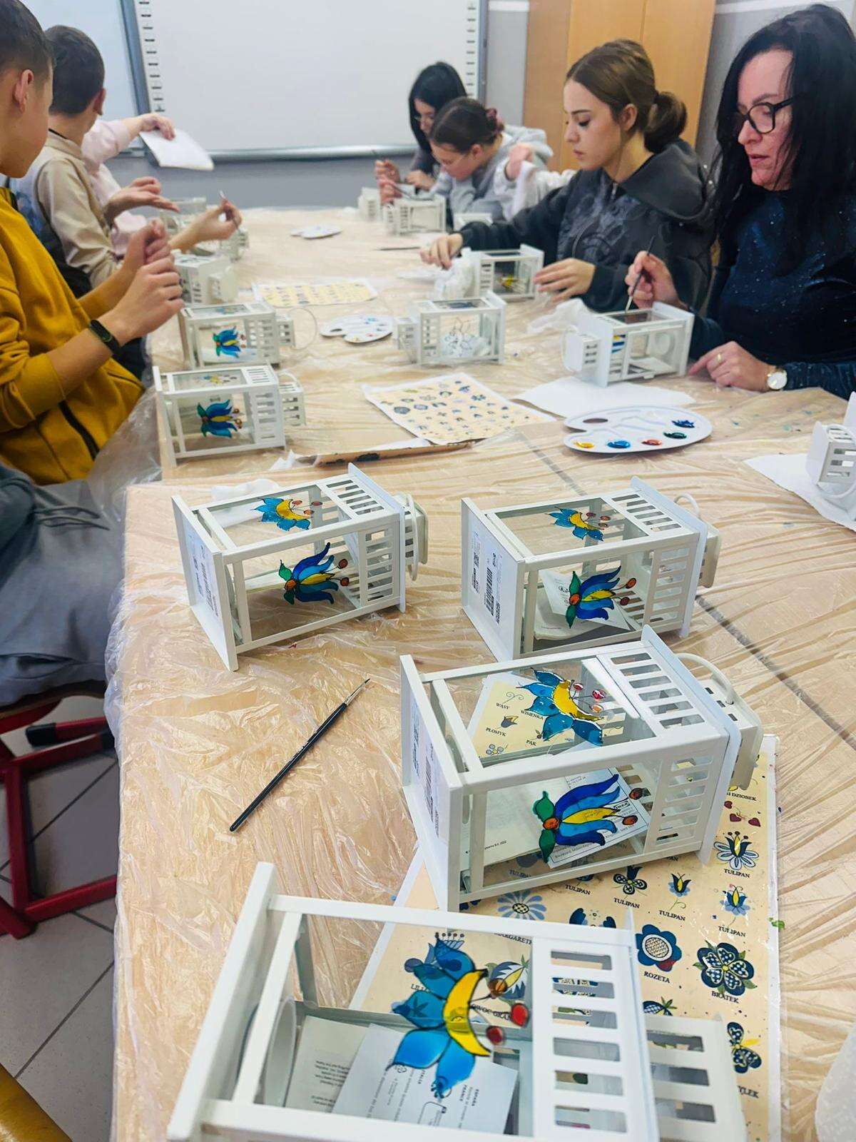 Podczas zajęć dzieci malowały lampiony oraz kubki, zdobiąc je tradycyjnymi wzorami kaszubskimi. Uczniowie z dużym zaangażowaniem i radością tworzyli swoje prace, jednocześnie poznając znaczenie charakterystycznych motywów i kolorów regionu. Każda z wykonanych ozdób była niepowtarzalna i stanowiła piękną, własnoręcznie przygotowaną dekorację świąteczną.