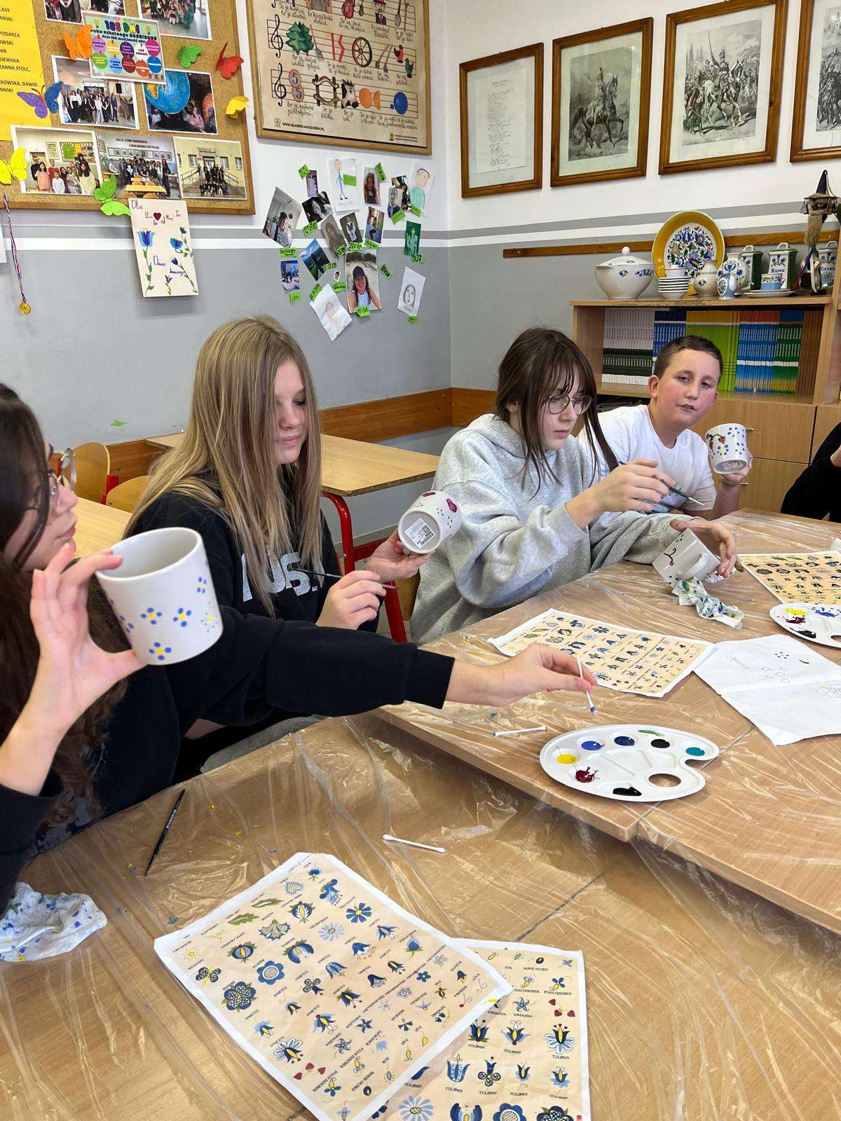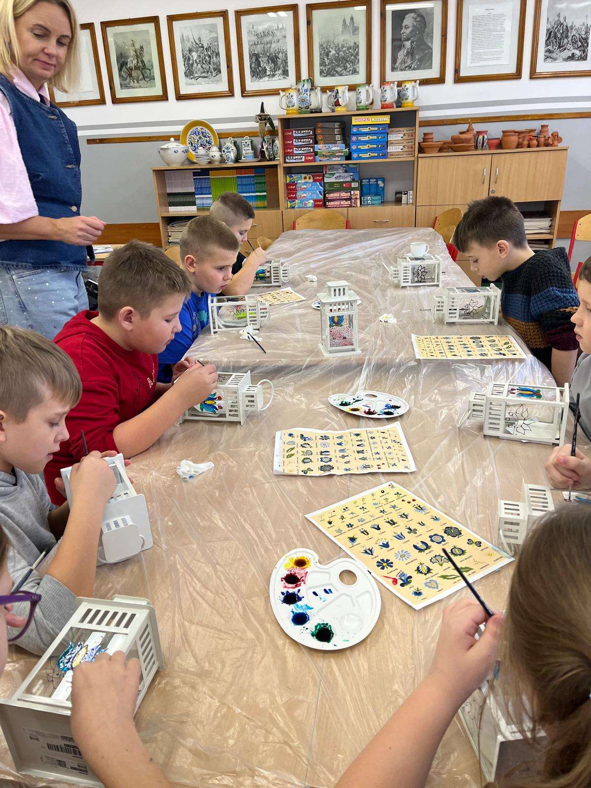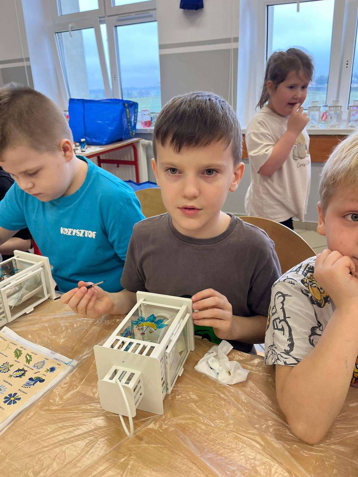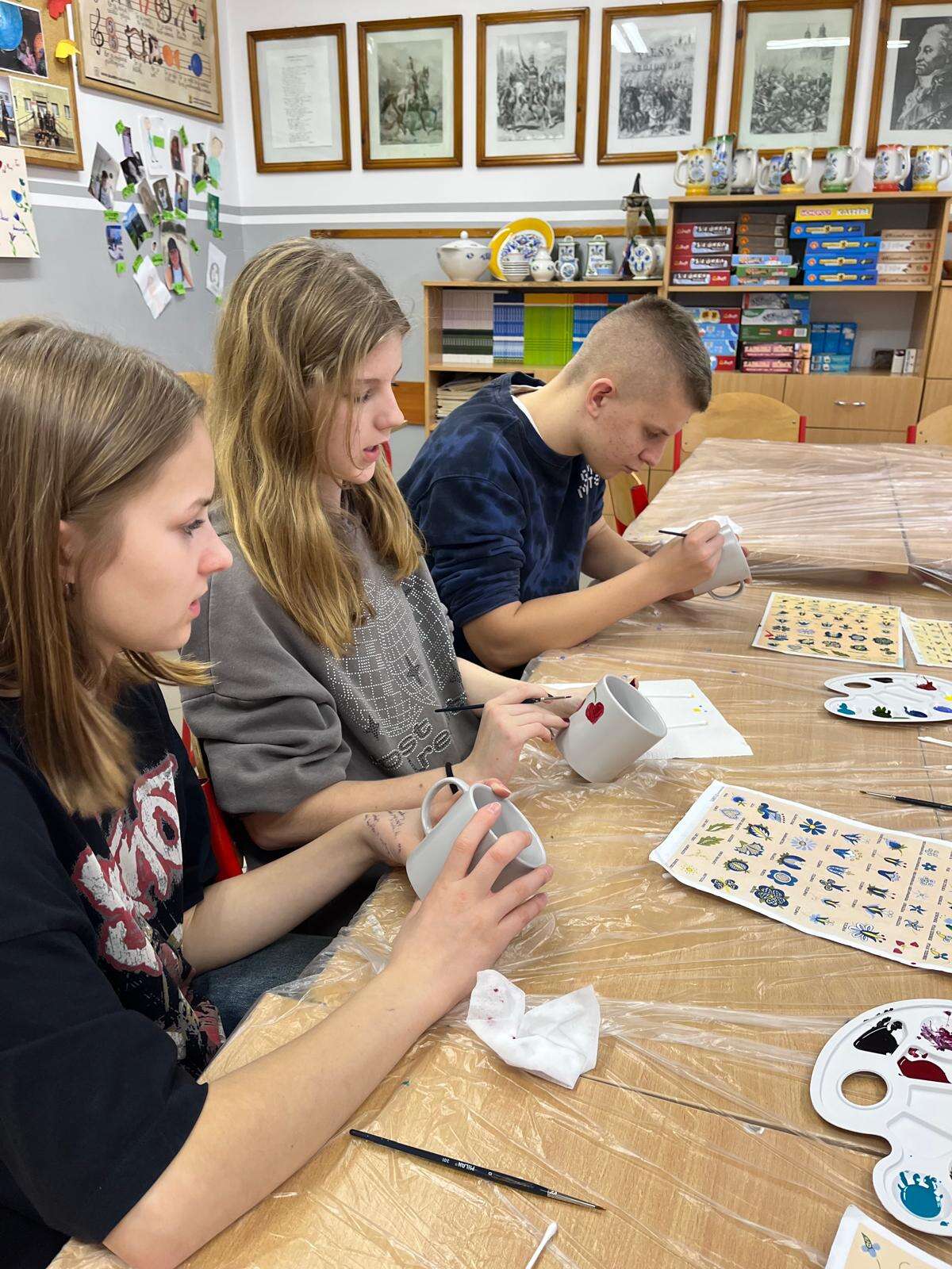 Podczas zajęć dzieci malowały lampiony oraz kubki, zdobiąc je tradycyjnymi wzorami kaszubskimi. Uczniowie z dużym zaangażowaniem i radością tworzyli swoje prace, jednocześnie poznając znaczenie charakterystycznych motywów i kolorów regionu. Każda z wykonanych ozdób była niepowtarzalna i stanowiła piękną, własnoręcznie przygotowaną dekorację świąteczną.