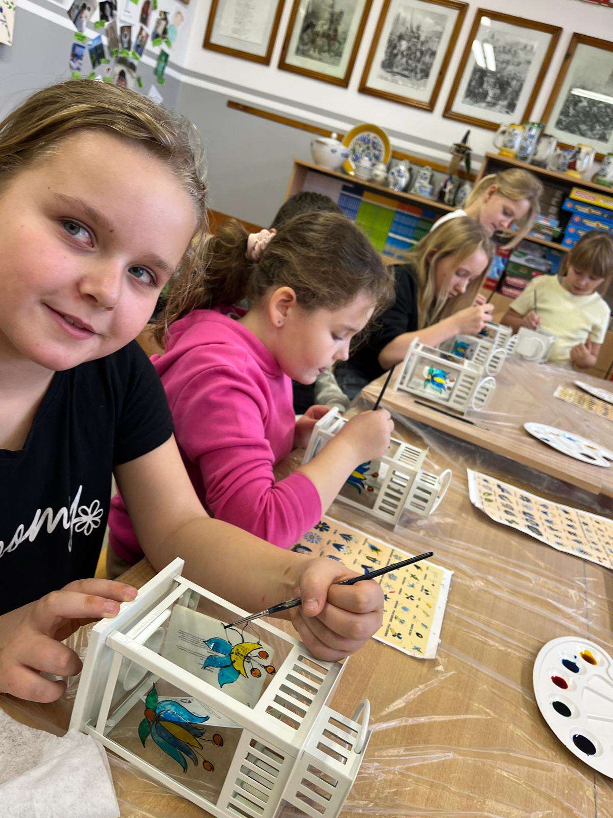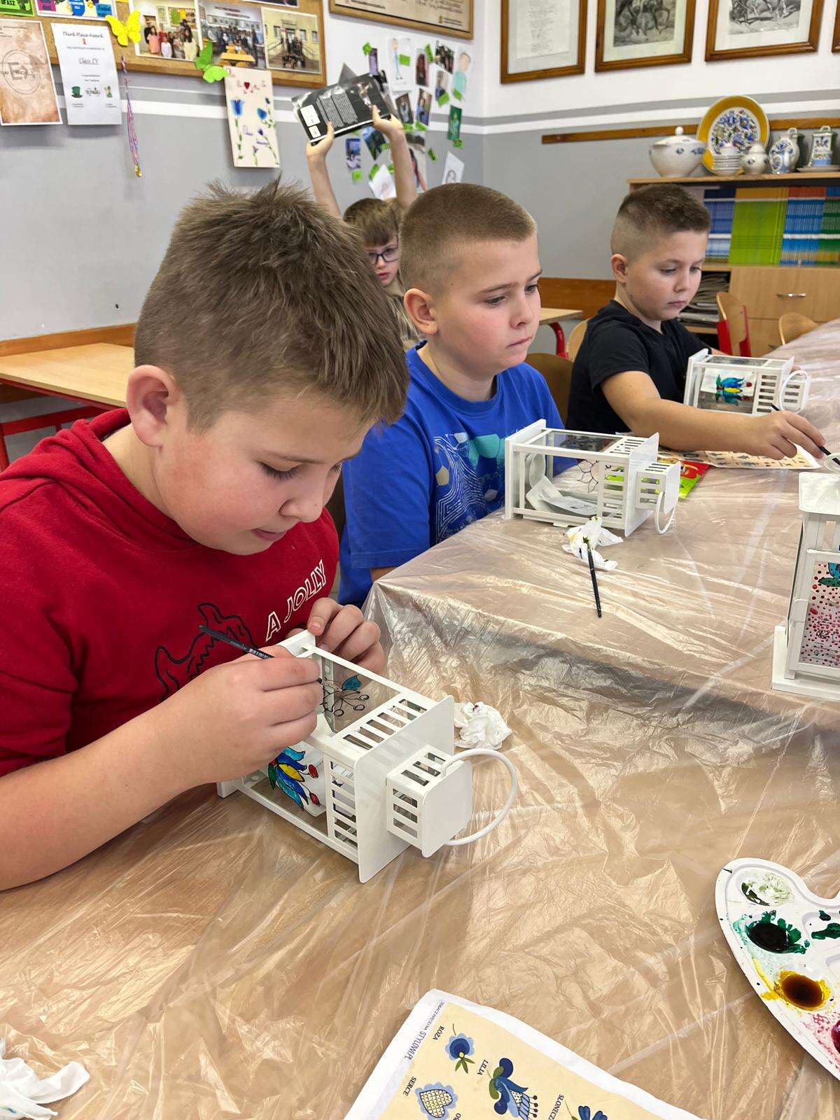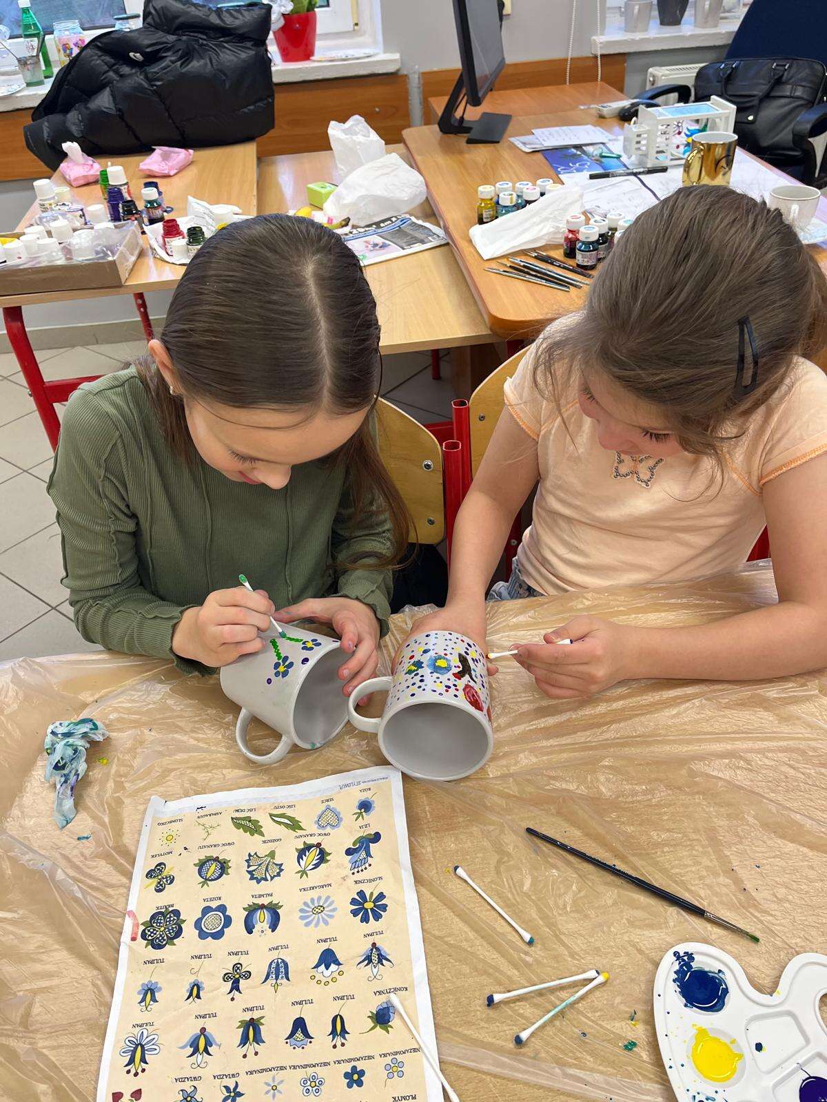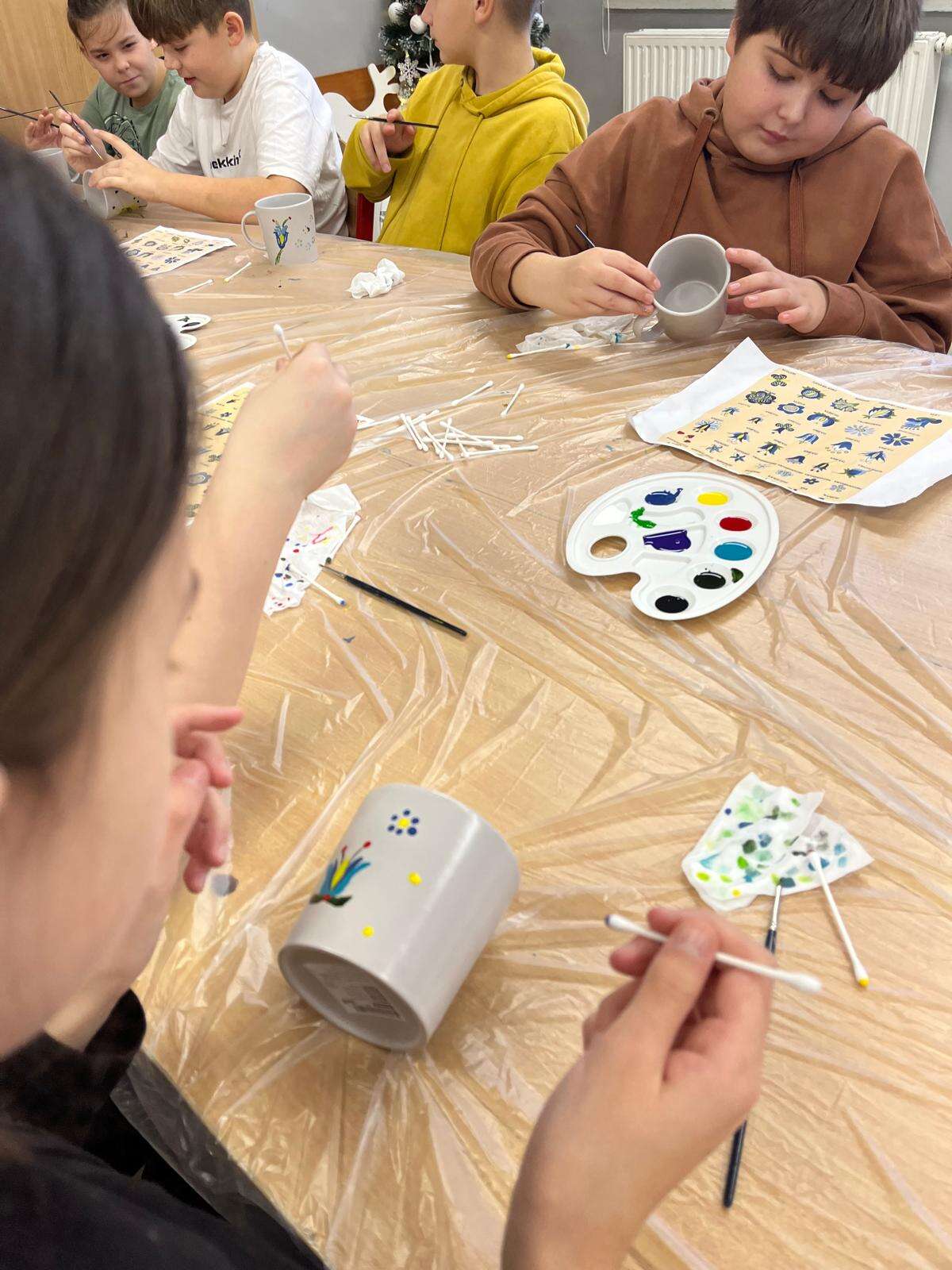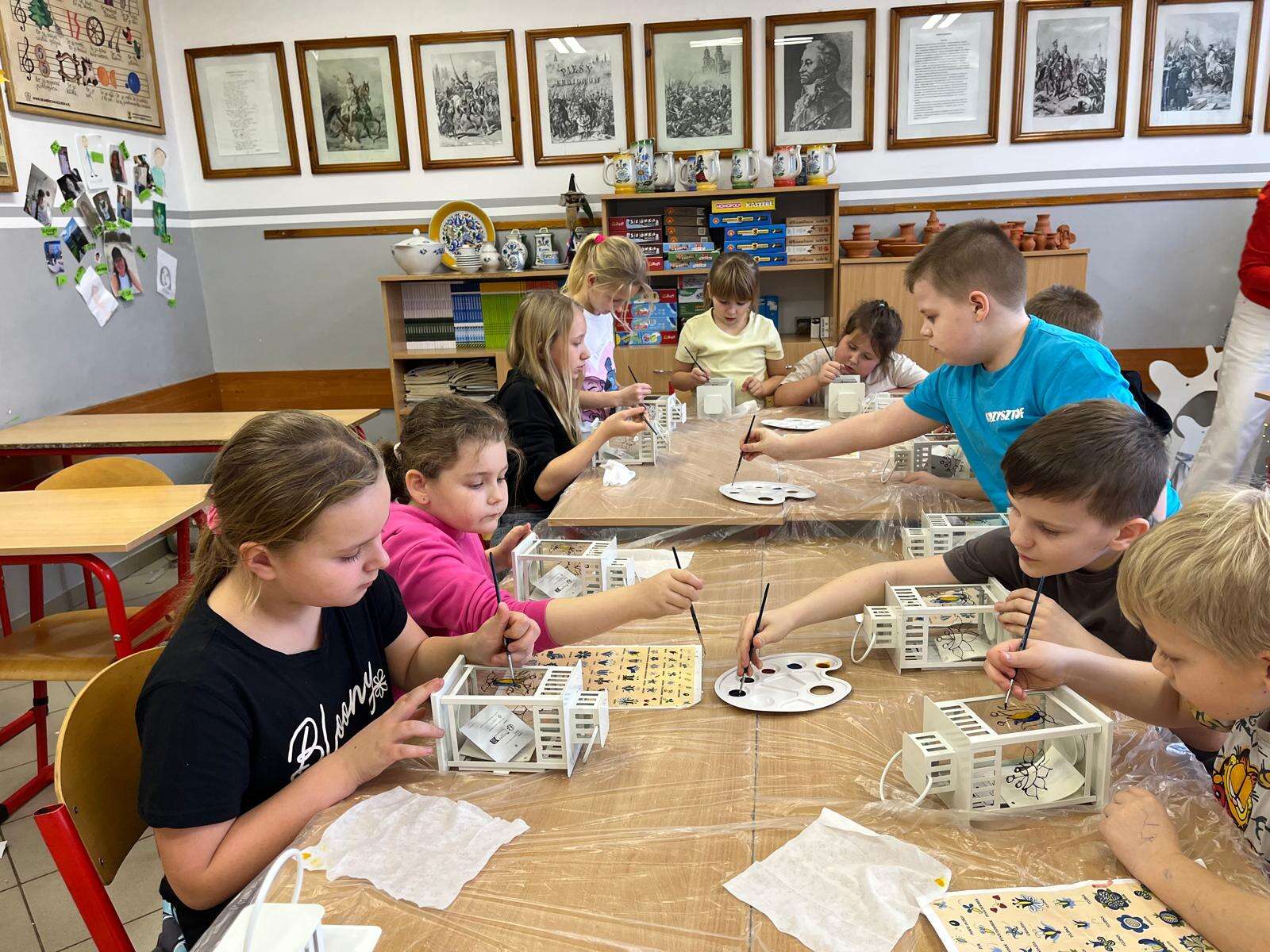 Podczas zajęć dzieci malowały lampiony oraz kubki, zdobiąc je tradycyjnymi wzorami kaszubskimi. Uczniowie z dużym zaangażowaniem i radością tworzyli swoje prace, jednocześnie poznając znaczenie charakterystycznych motywów i kolorów regionu. Każda z wykonanych ozdób była niepowtarzalna i stanowiła piękną, własnoręcznie przygotowaną dekorację świąteczną.
