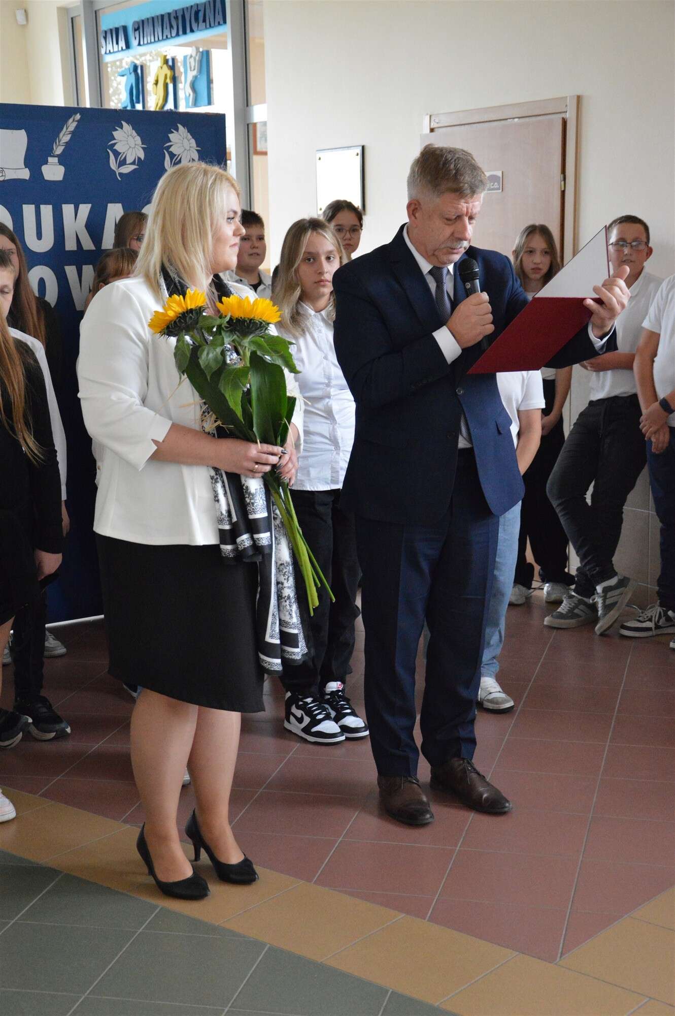 Miłym akcentem uroczystości było również wspomnienie o wyróżnieniu przyznanym przez Burmistrza Bytowa – p. Izabella Kleinszmidt odebrała w tym dniu Nagrodę Burmistrza, za szczególne osiągnięcia w pracy dydaktycznej i wychowawczej.