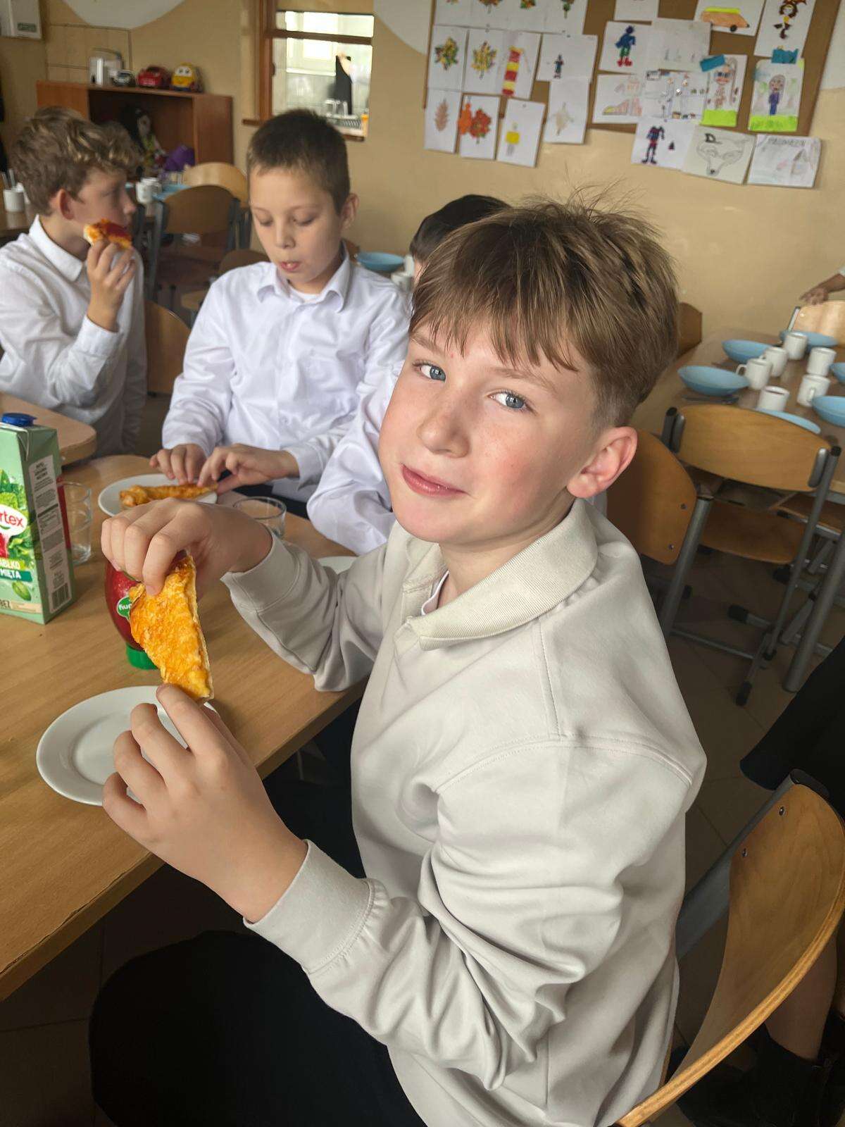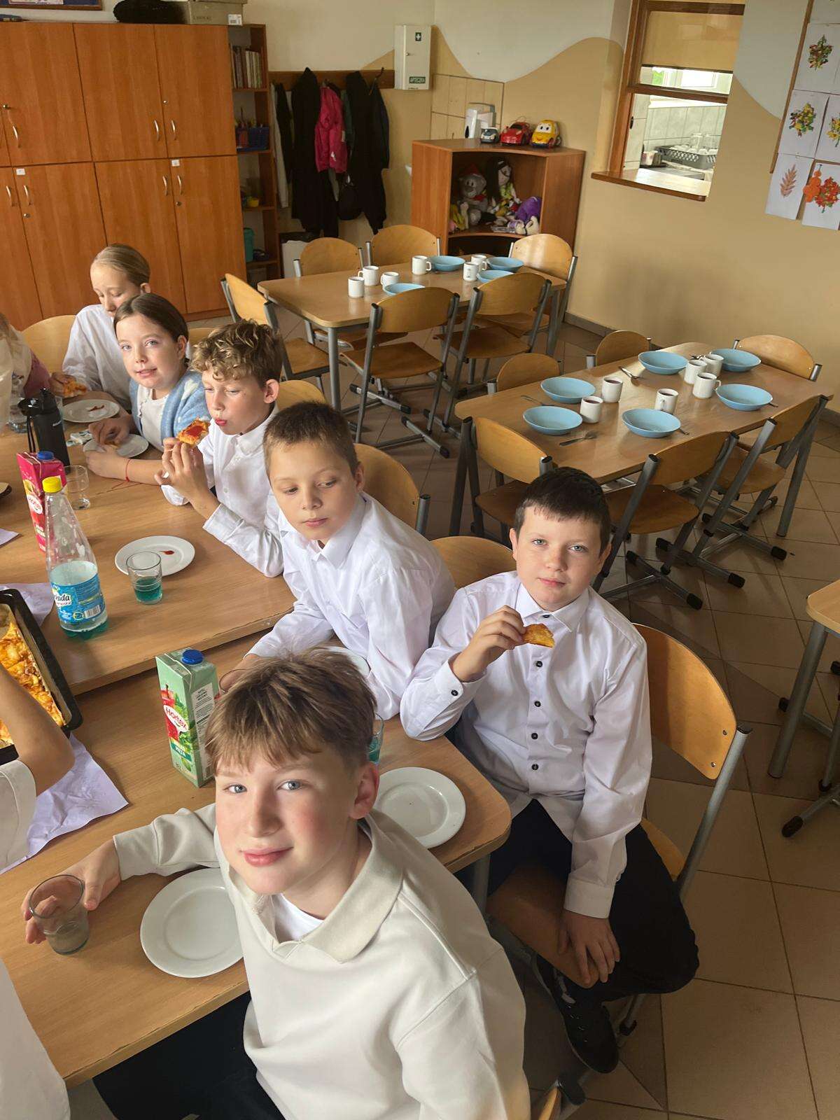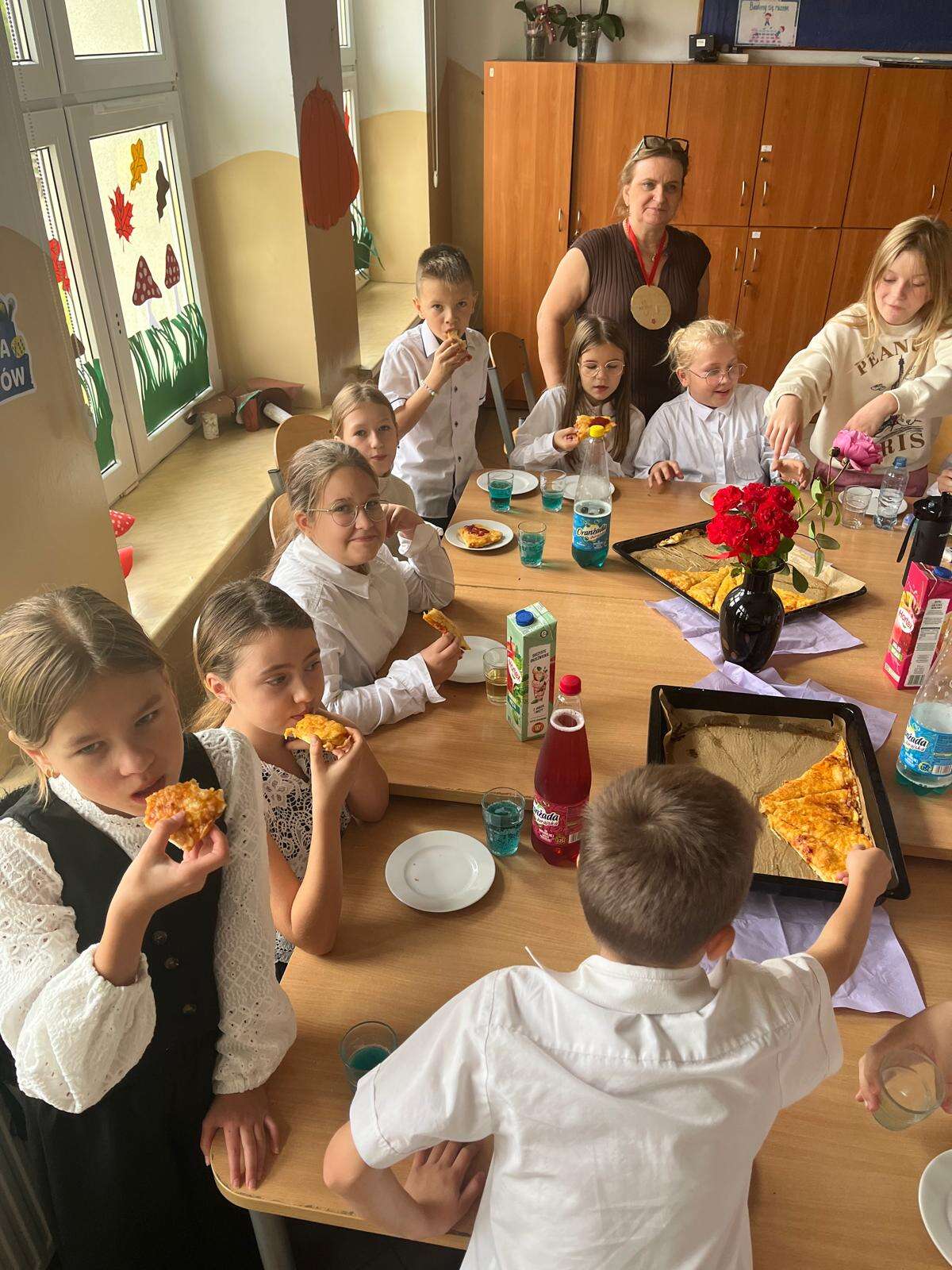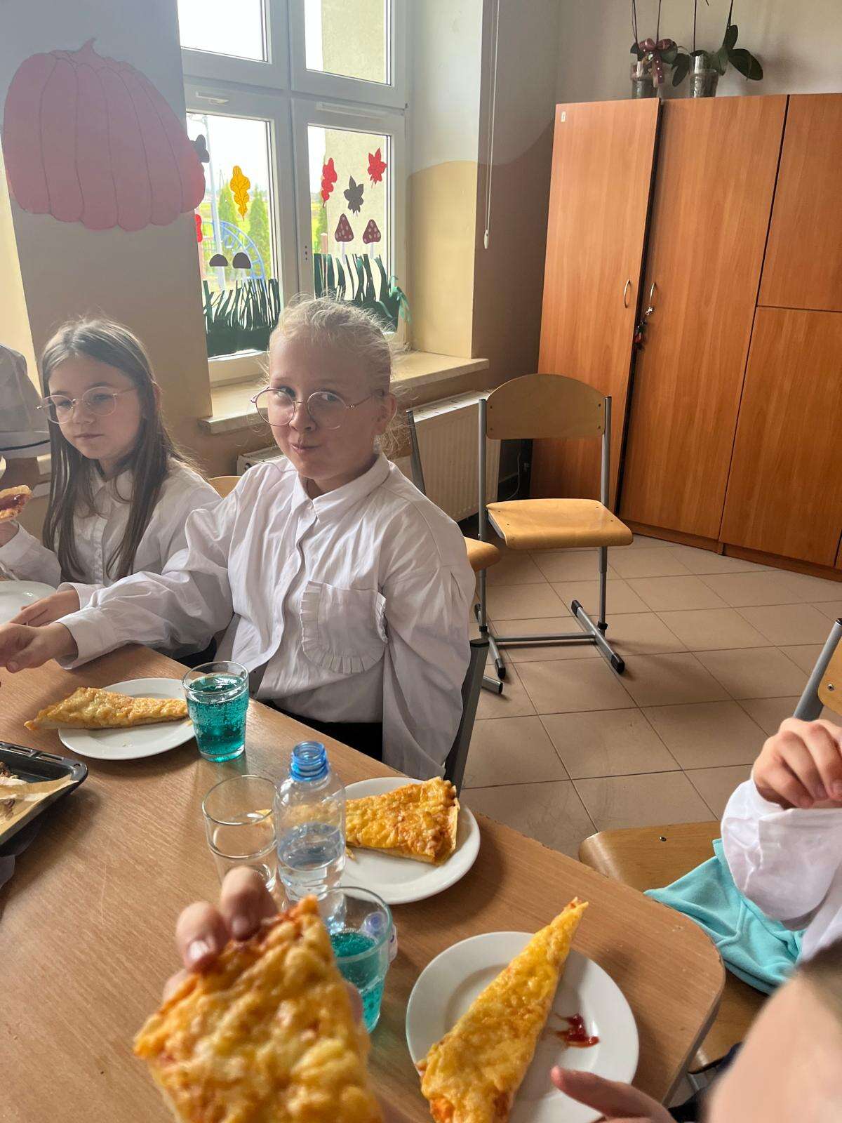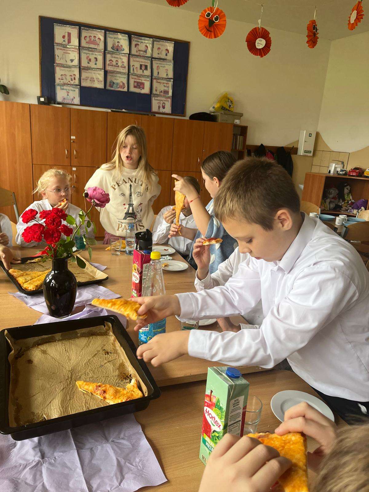 Z tej okazji uczniowie mogli poczuć się jak prawdziwi Włosi – prosto z lokalnej pizzerii przyjechały do nich ciepłe, pachnące pizze, które szybko zniknęły z kartonów. Uśmiechy na twarzach dzieci mówiły same za siebie – to był dzień pełen smaku i radości!