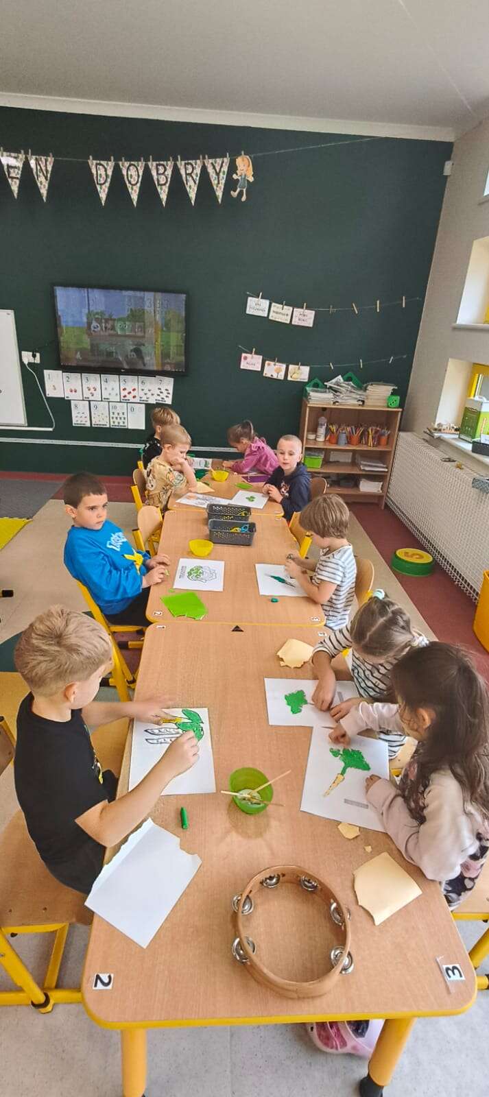 Dzieci z naszej zerówki z radością poznawały wiersz Jana Brzechwy „Na straganie”. Po wspólnym czytaniu i rozmowie o warzywach, przedszkolaki z wielkim zaangażowaniem stworzyły własny, kolorowy stragan. Nie zabrakło marchewek, cebulek, sałaty i ogórków – wszystko wyglądało jak na prawdziwym targu!