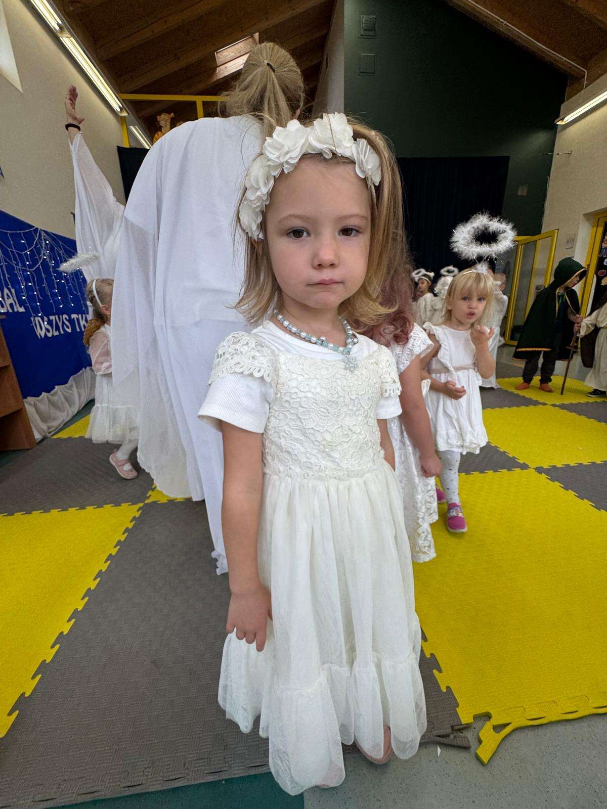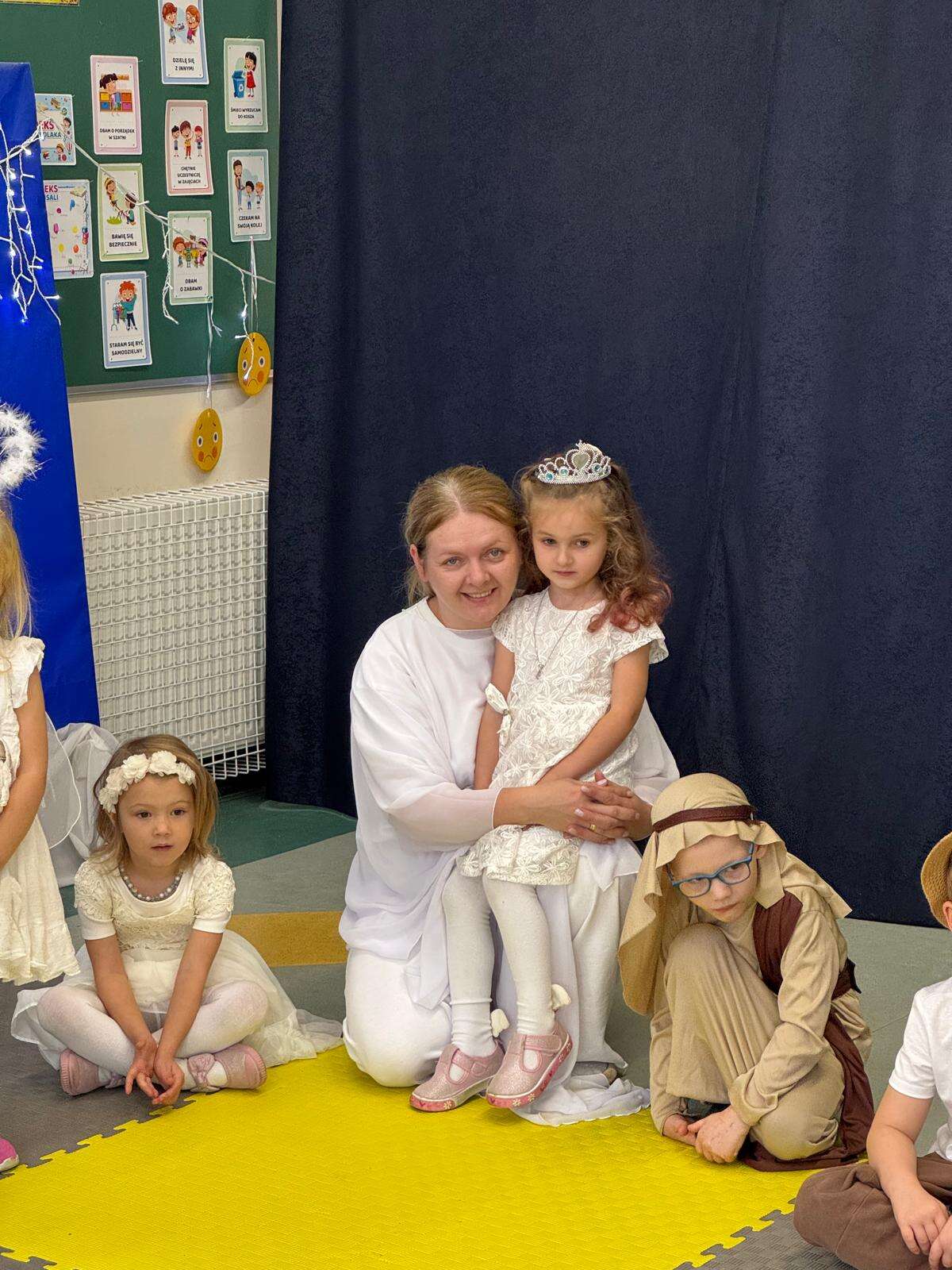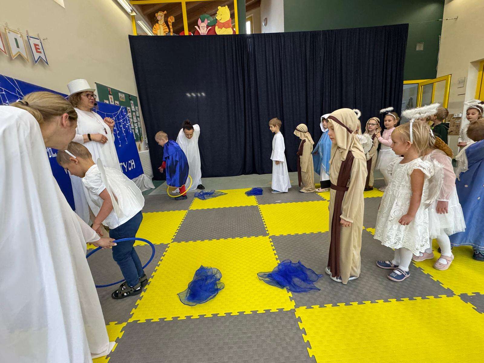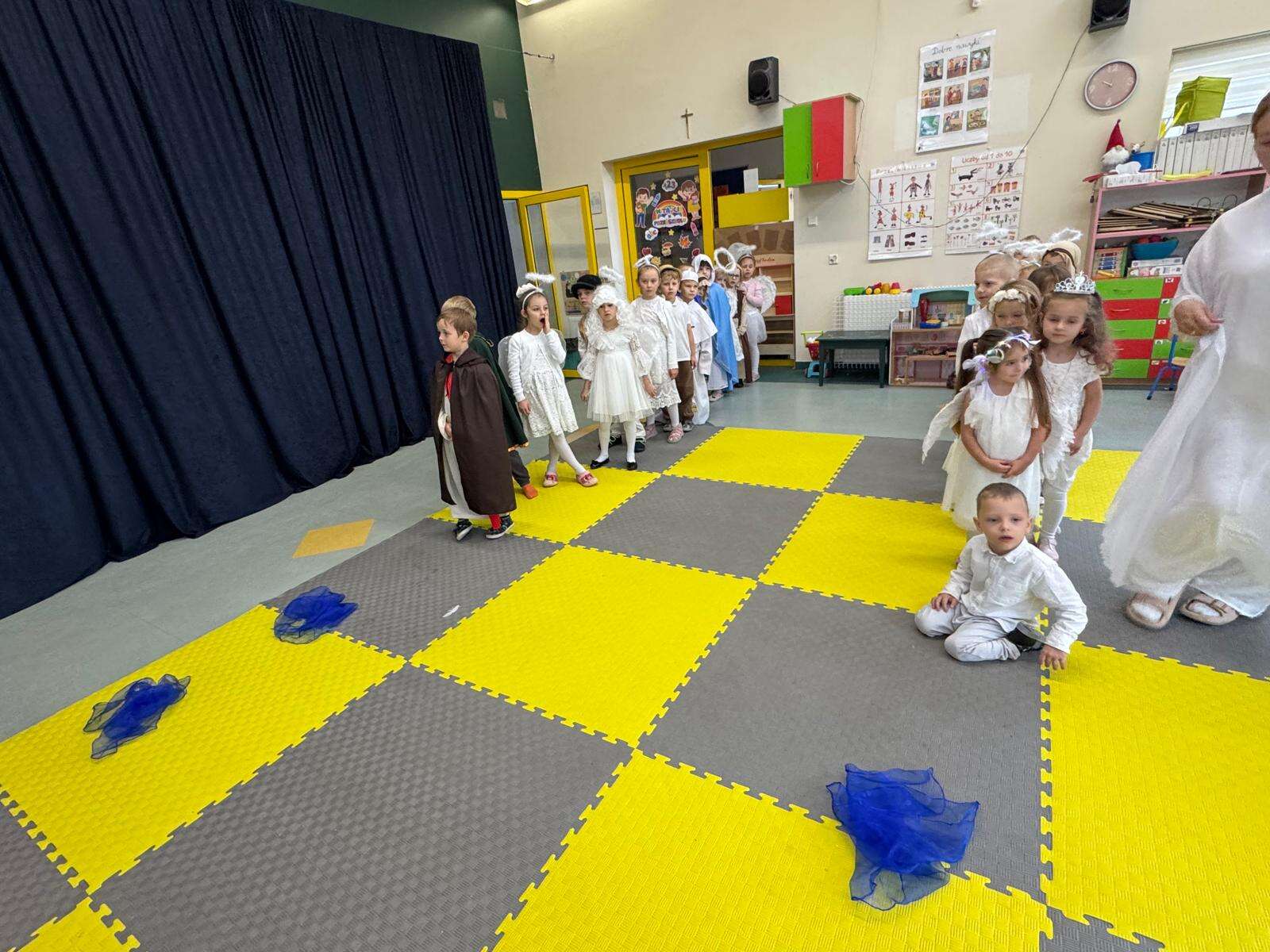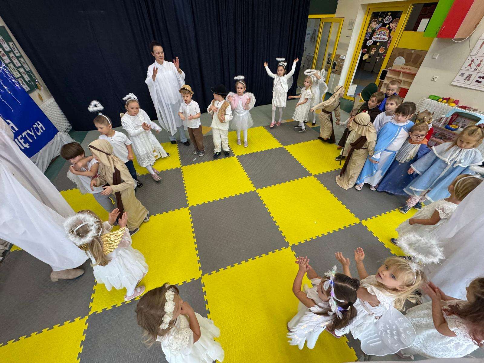 W rytmie piosenek „Niebo jest otwarte”, „Każdy może być święty”, „O Maryjo” i „Niebo jeden świat” połączyły się dwa światy – niebo i ziemia. Dzieci z uśmiechem tańczyły w rytmie anielskiej muzyki, celnie rzucały „aureolą” do nieba i z radością pokonywały „rajski tor przeszkód”, na końcu którego dzwoniły dzwoneczkiem, by św. Piotr otworzył im niebiańskie bramy.