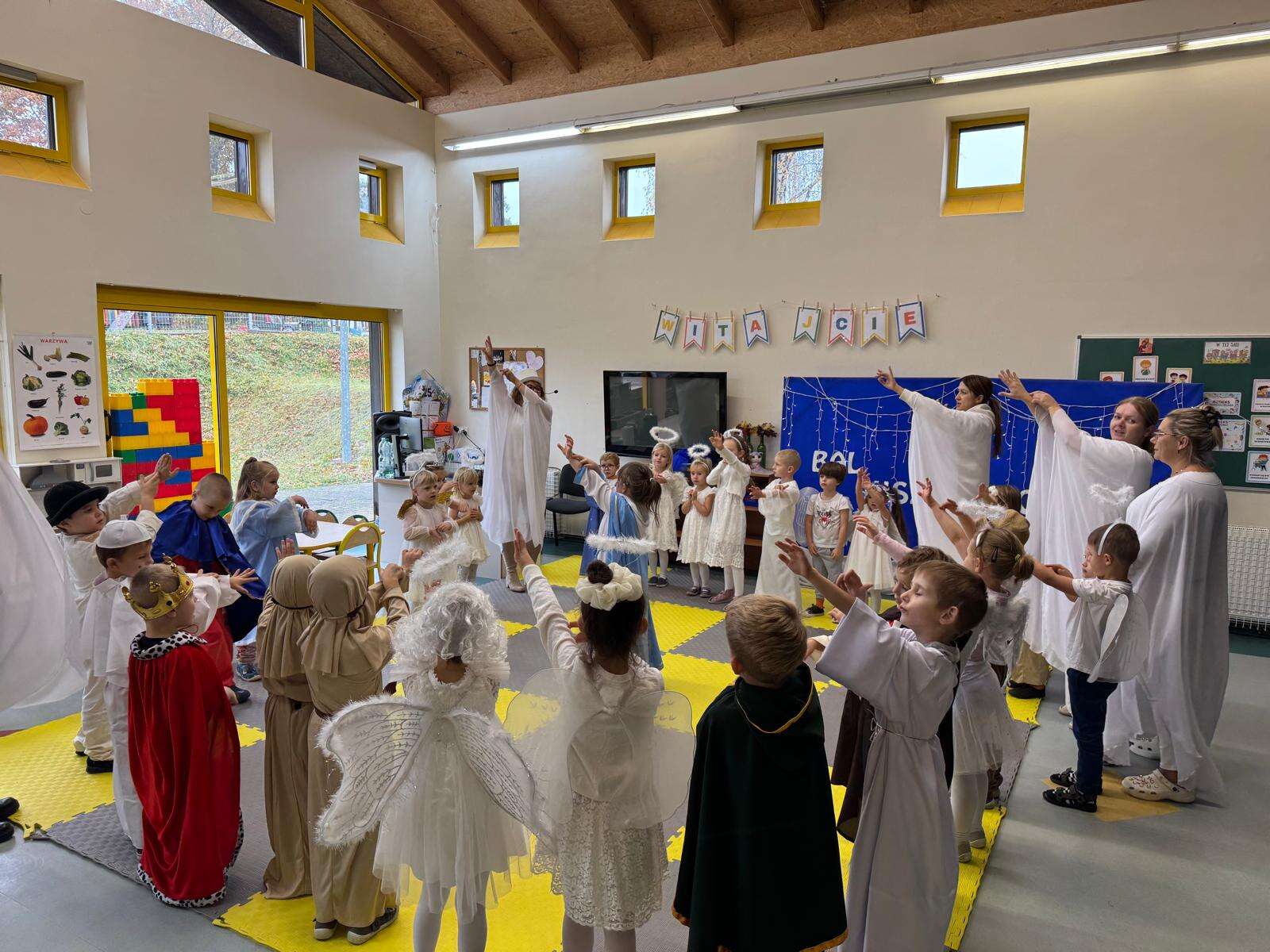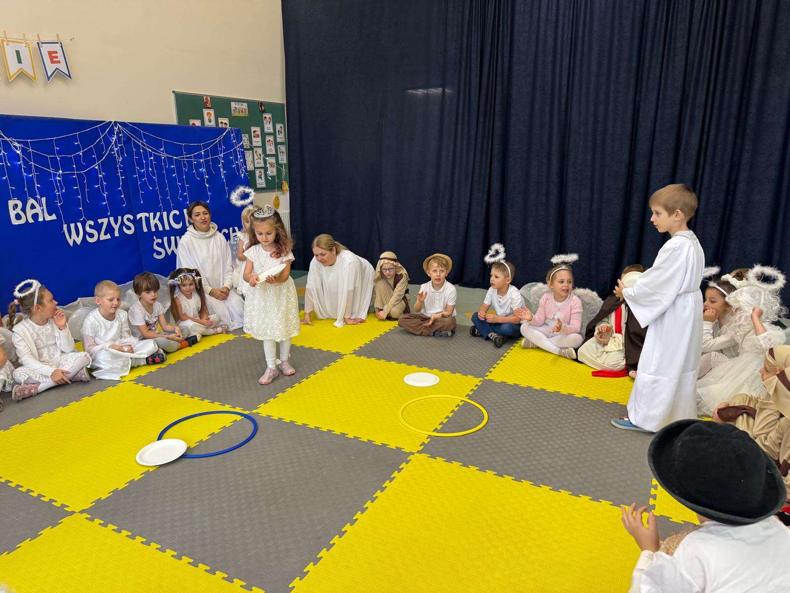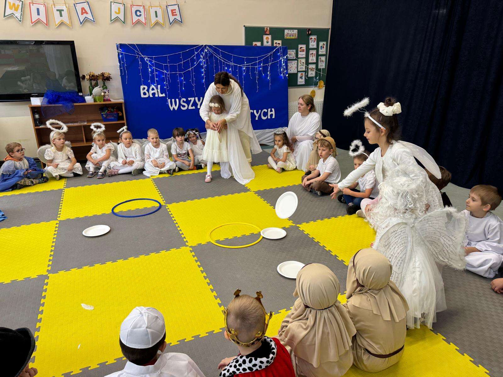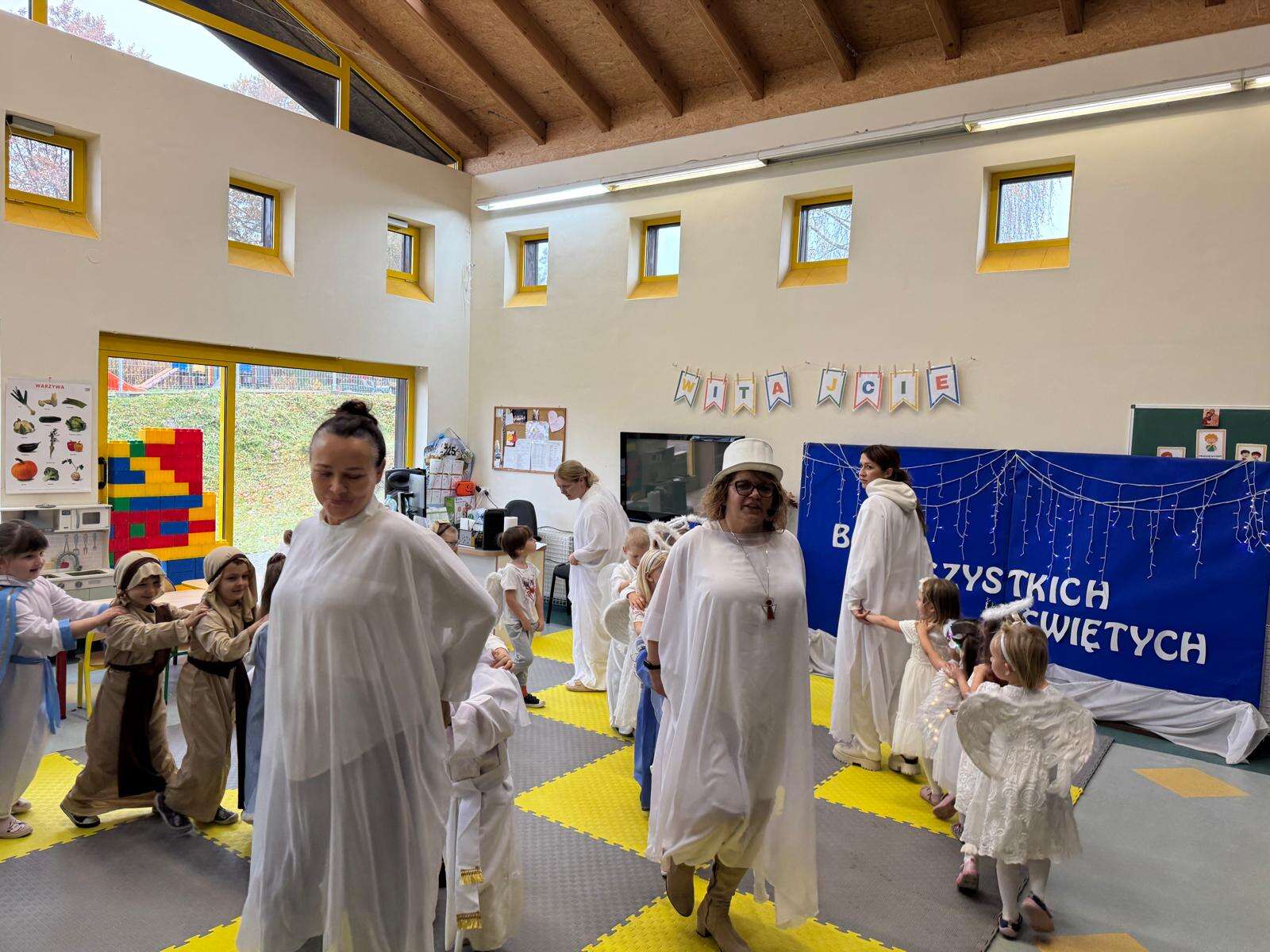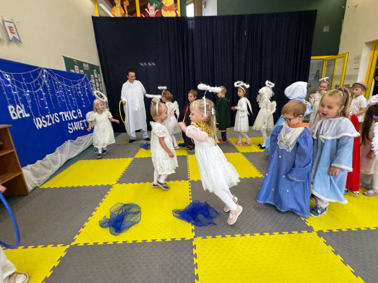 W naszym przedszkolu odbył się radosny Bal Wszystkich Świętych. Pod hasłem „Niebo jest otwarte” dzieci tańczyły, śpiewały i bawiły się w obecności aniołów i świętych, przypominając sobie, że świętość to radość, dobro i miłość do Pana Jezusa.