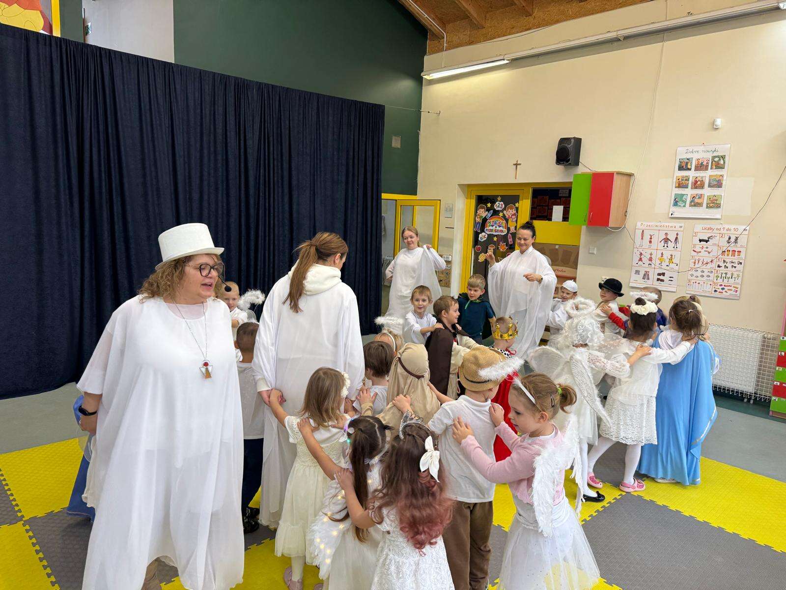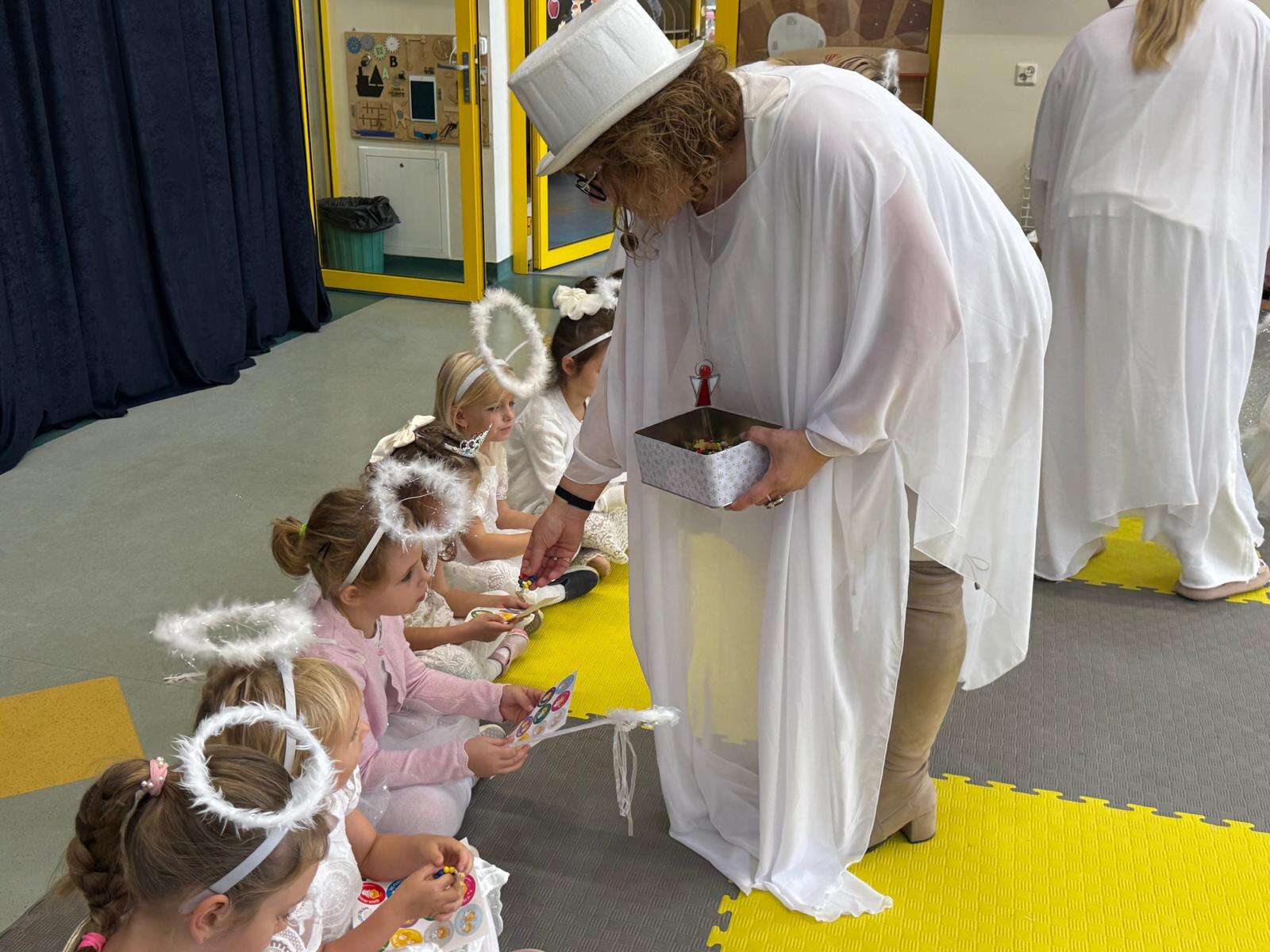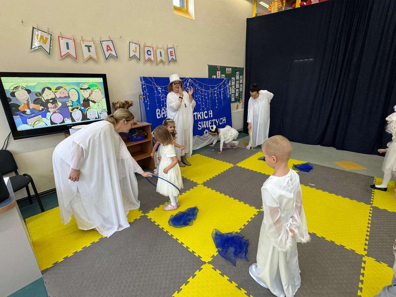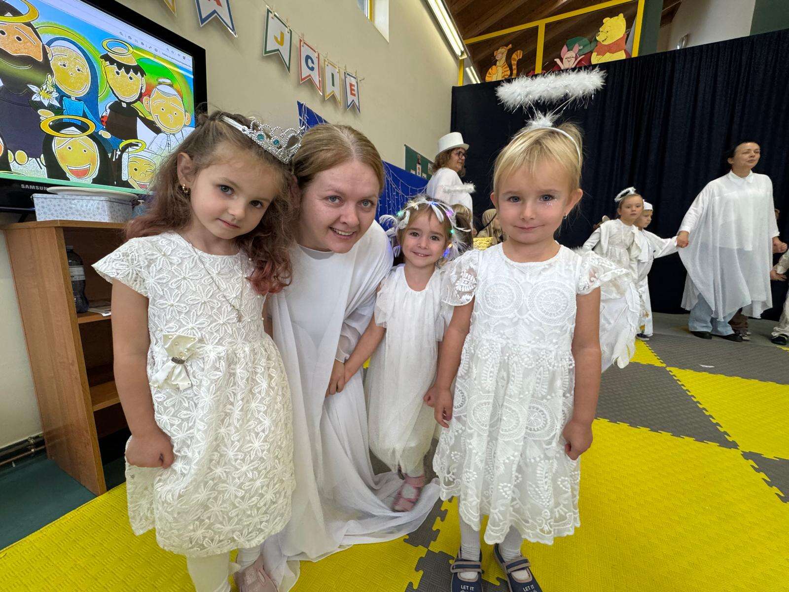 W naszym przedszkolu odbył się radosny Bal Wszystkich Świętych. Pod hasłem „Niebo jest otwarte” dzieci tańczyły, śpiewały i bawiły się w obecności aniołów i świętych, przypominając sobie, że świętość to radość, dobro i miłość do Pana Jezusa.