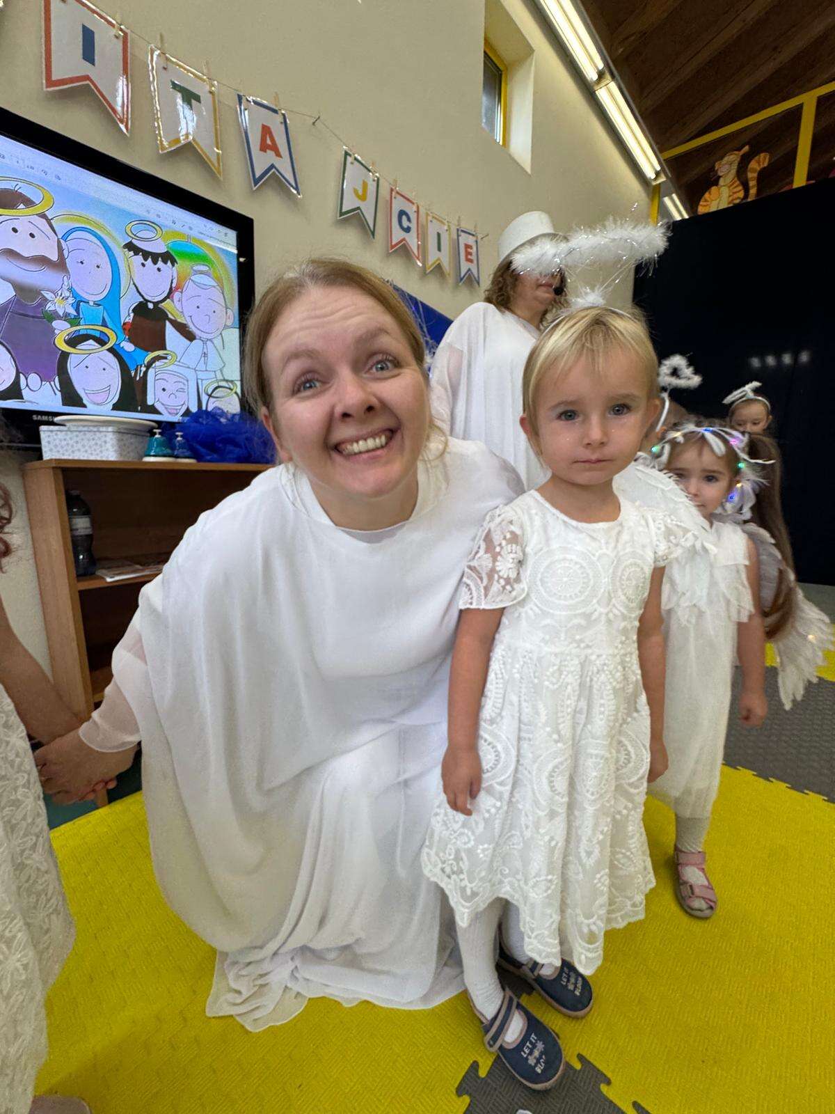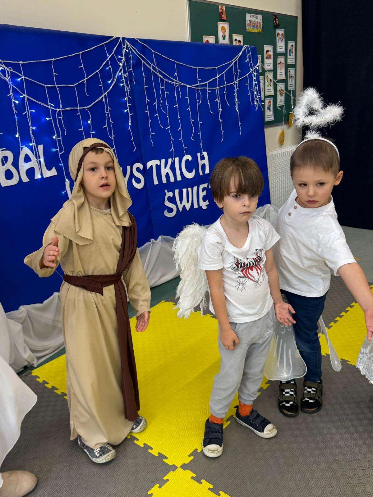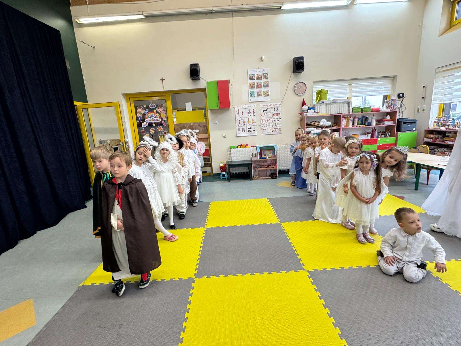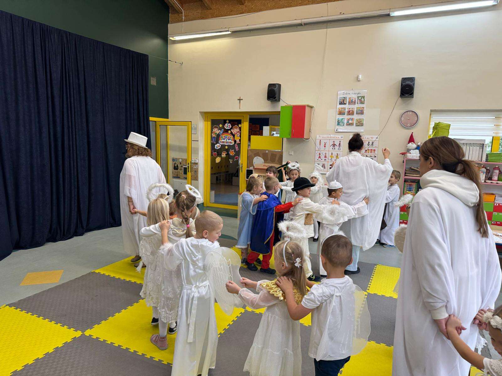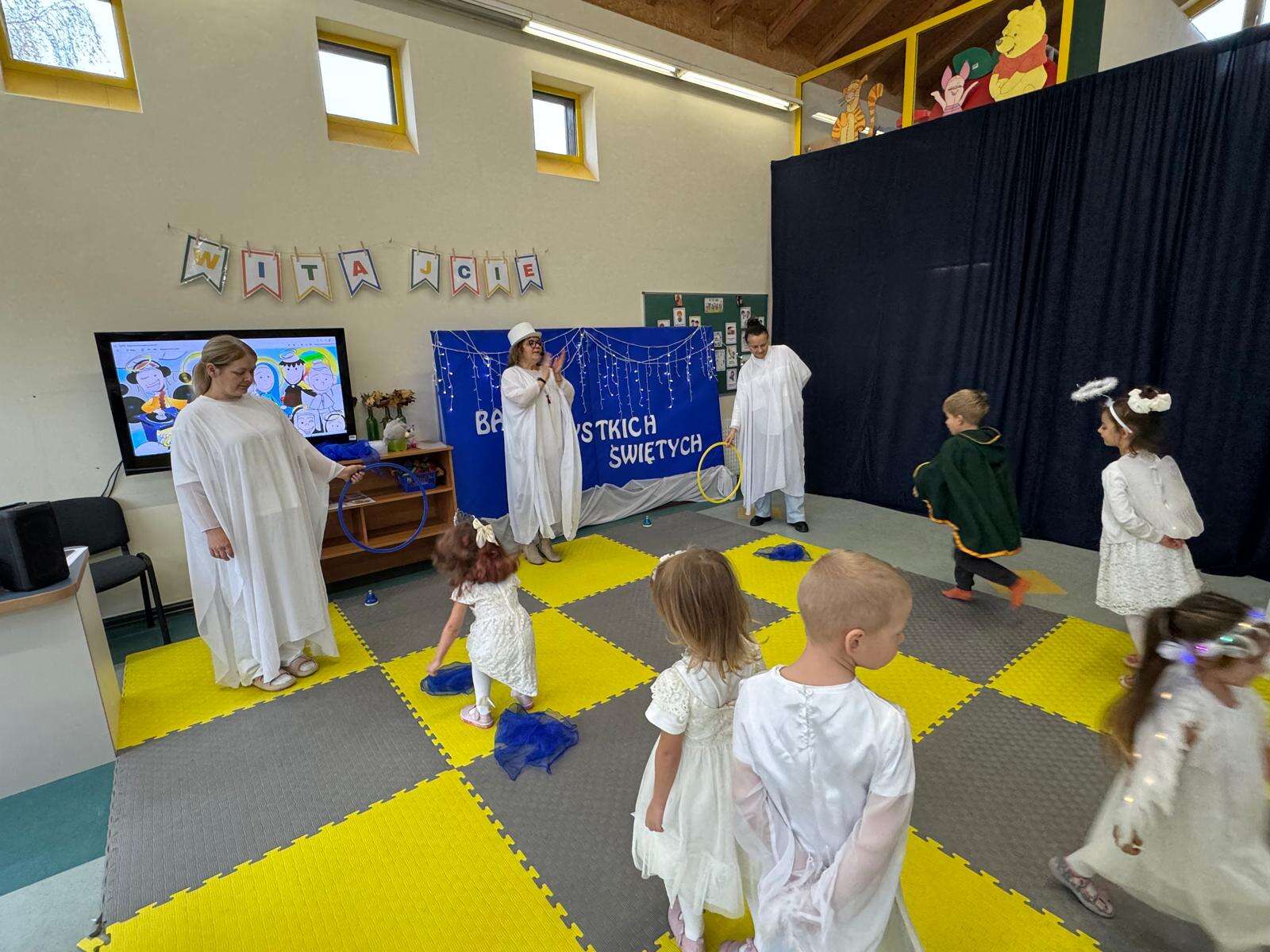 W naszym przedszkolu odbył się radosny Bal Wszystkich Świętych. Pod hasłem „Niebo jest otwarte” dzieci tańczyły, śpiewały i bawiły się w obecności aniołów i świętych, przypominając sobie, że świętość to radość, dobro i miłość do Pana Jezusa.