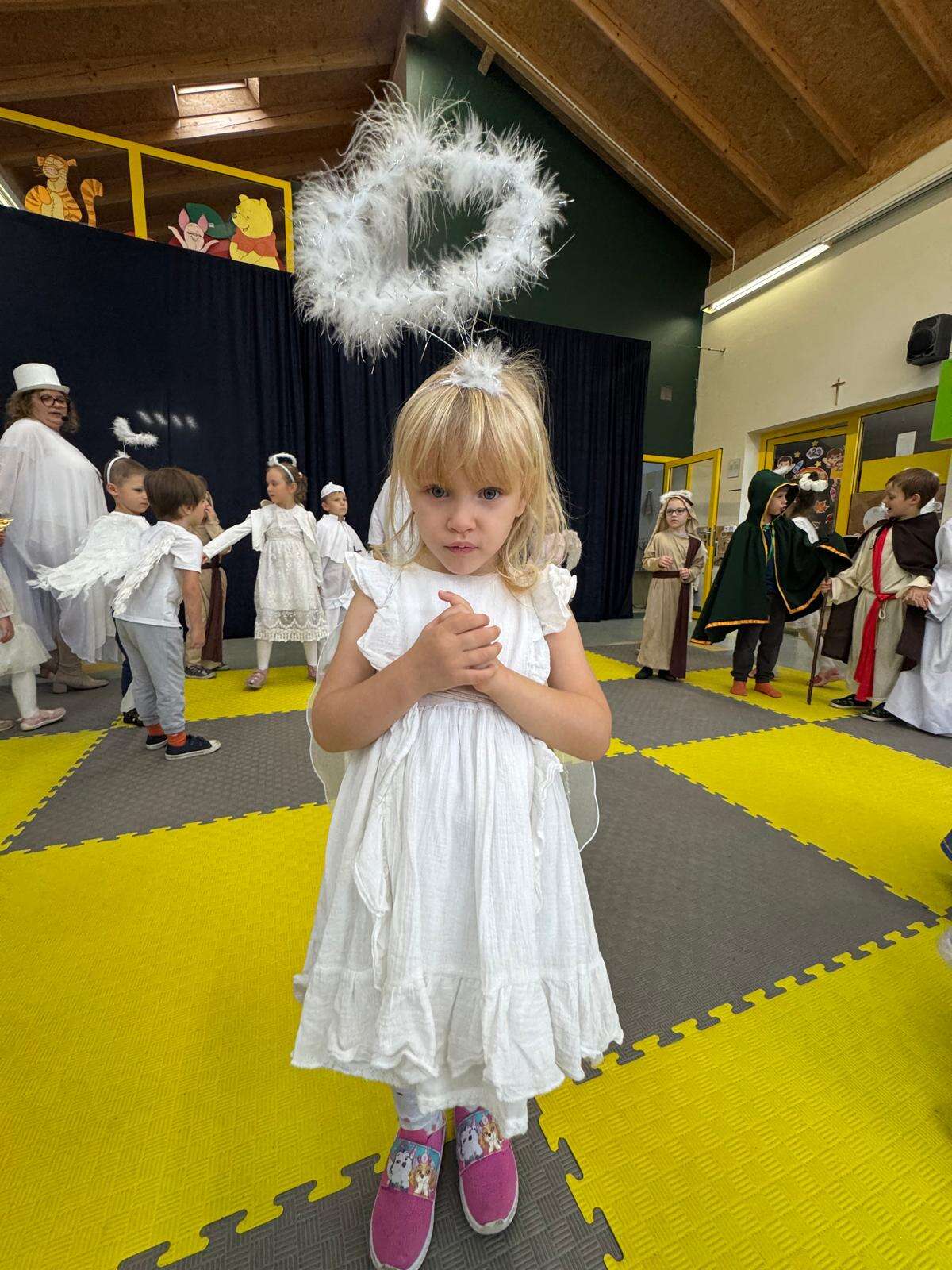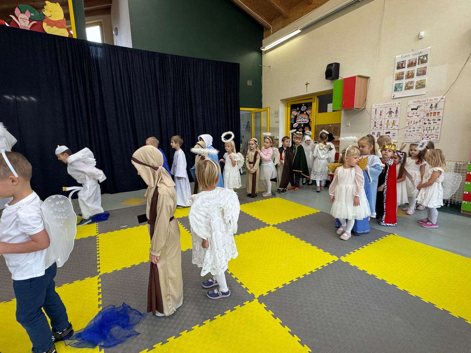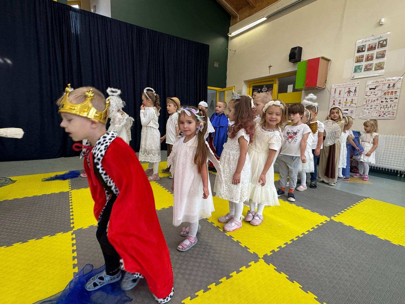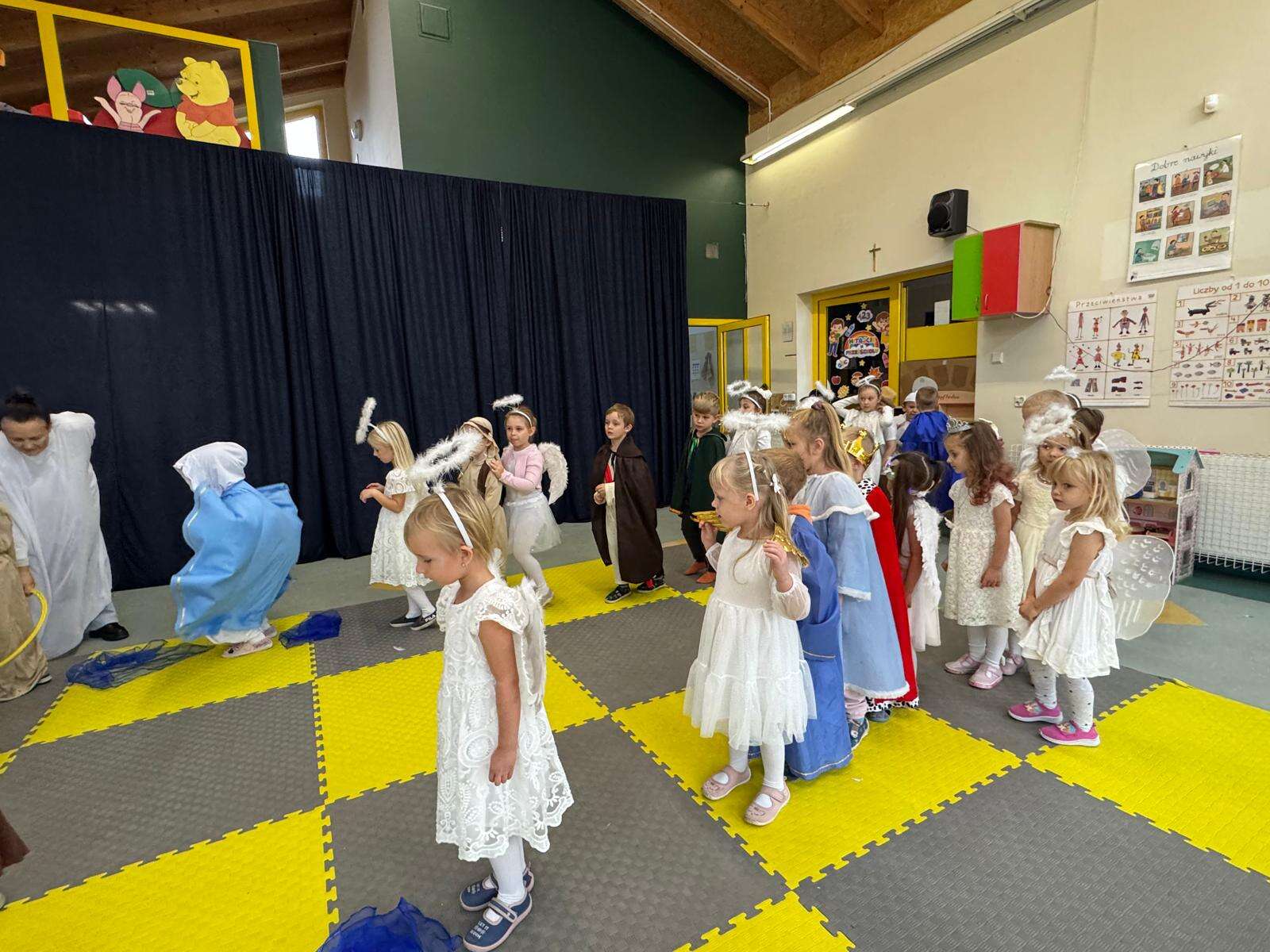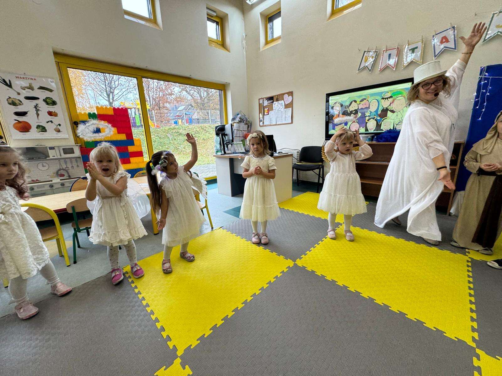 W naszym przedszkolu odbył się radosny Bal Wszystkich Świętych. Pod hasłem „Niebo jest otwarte” dzieci tańczyły, śpiewały i bawiły się w obecności aniołów i świętych, przypominając sobie, że świętość to radość, dobro i miłość do Pana Jezusa.