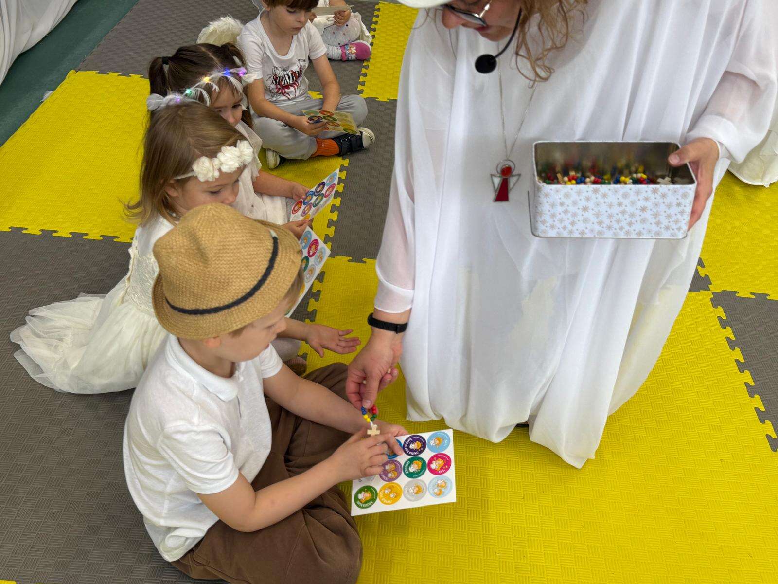 Każde dziecko otrzymało też drobny upominek – dziesiątkę różańca i anielskie naklejki – jako pamiątkę wspólnej radości i zachętę, by każdego dnia czynić dobro.