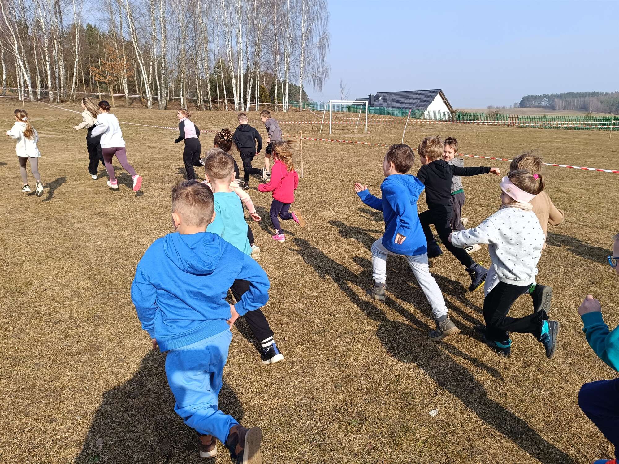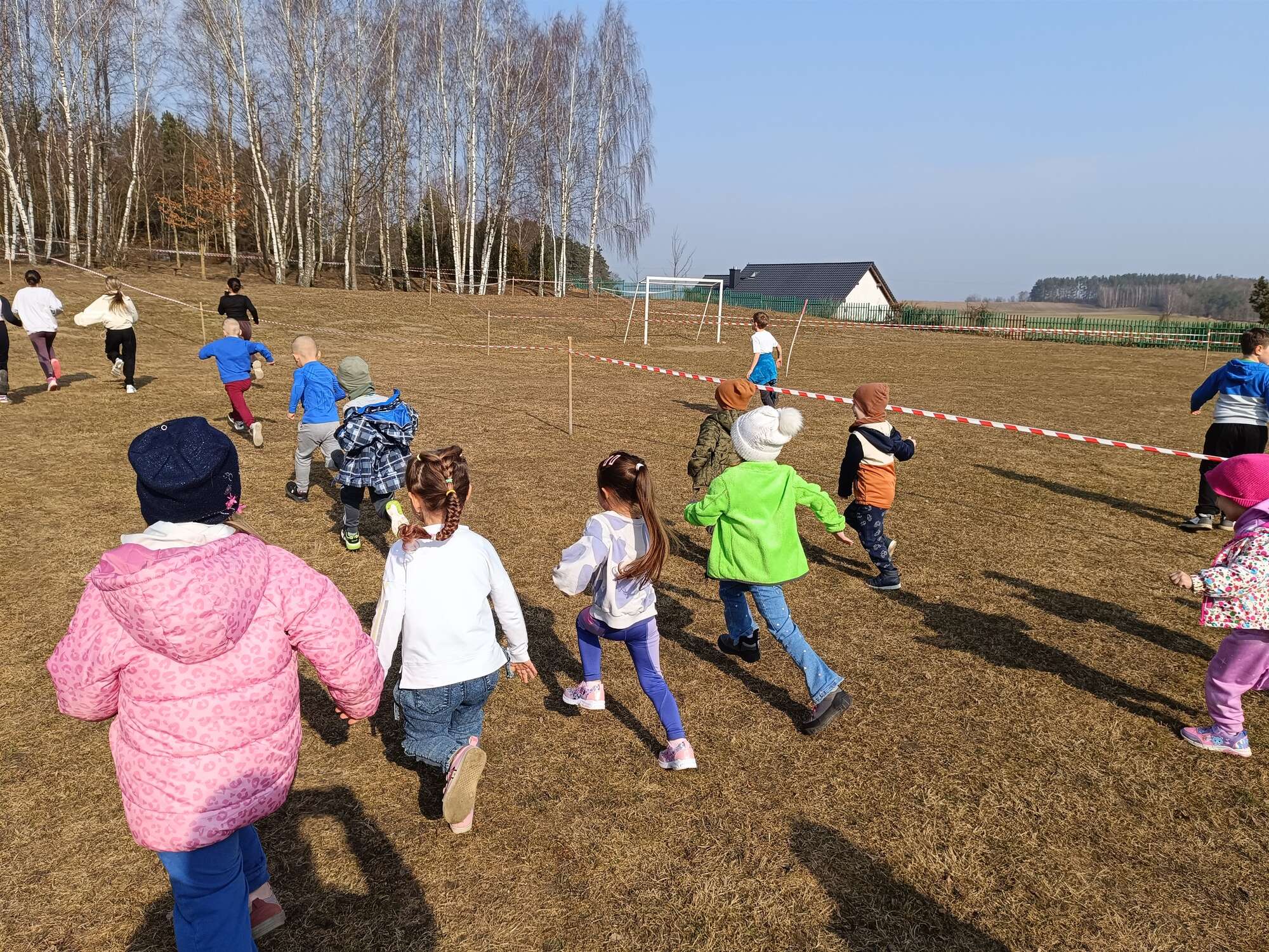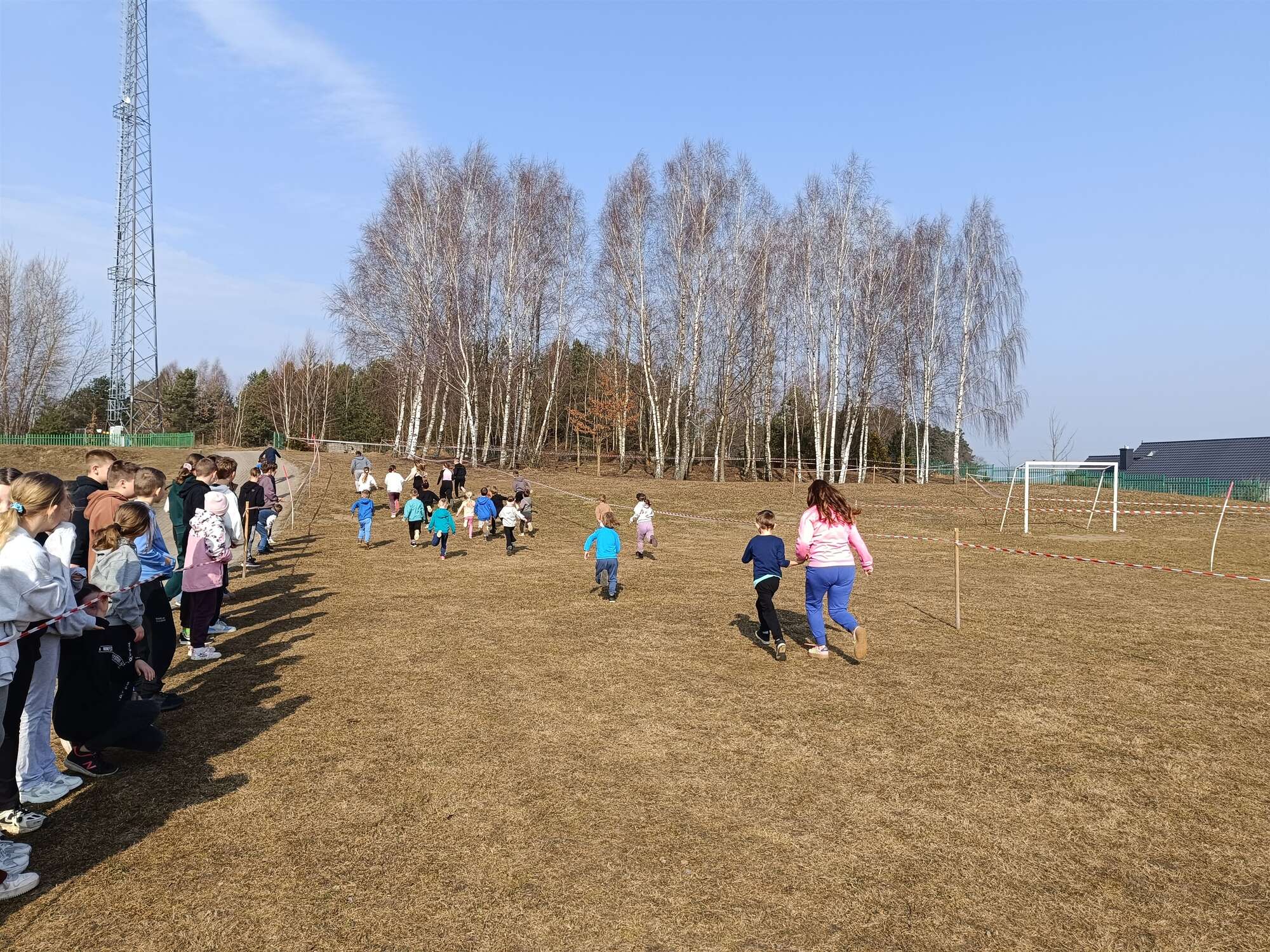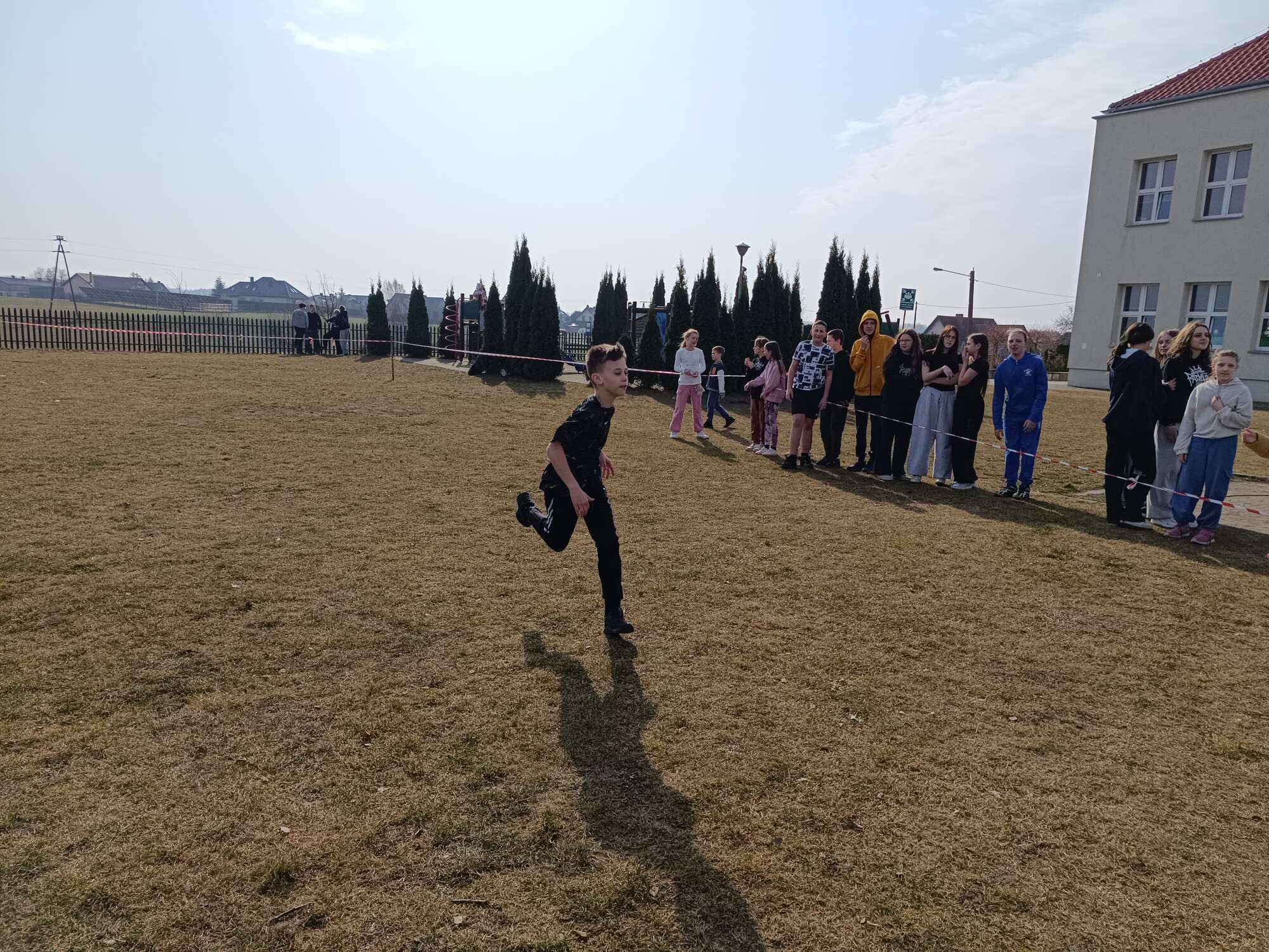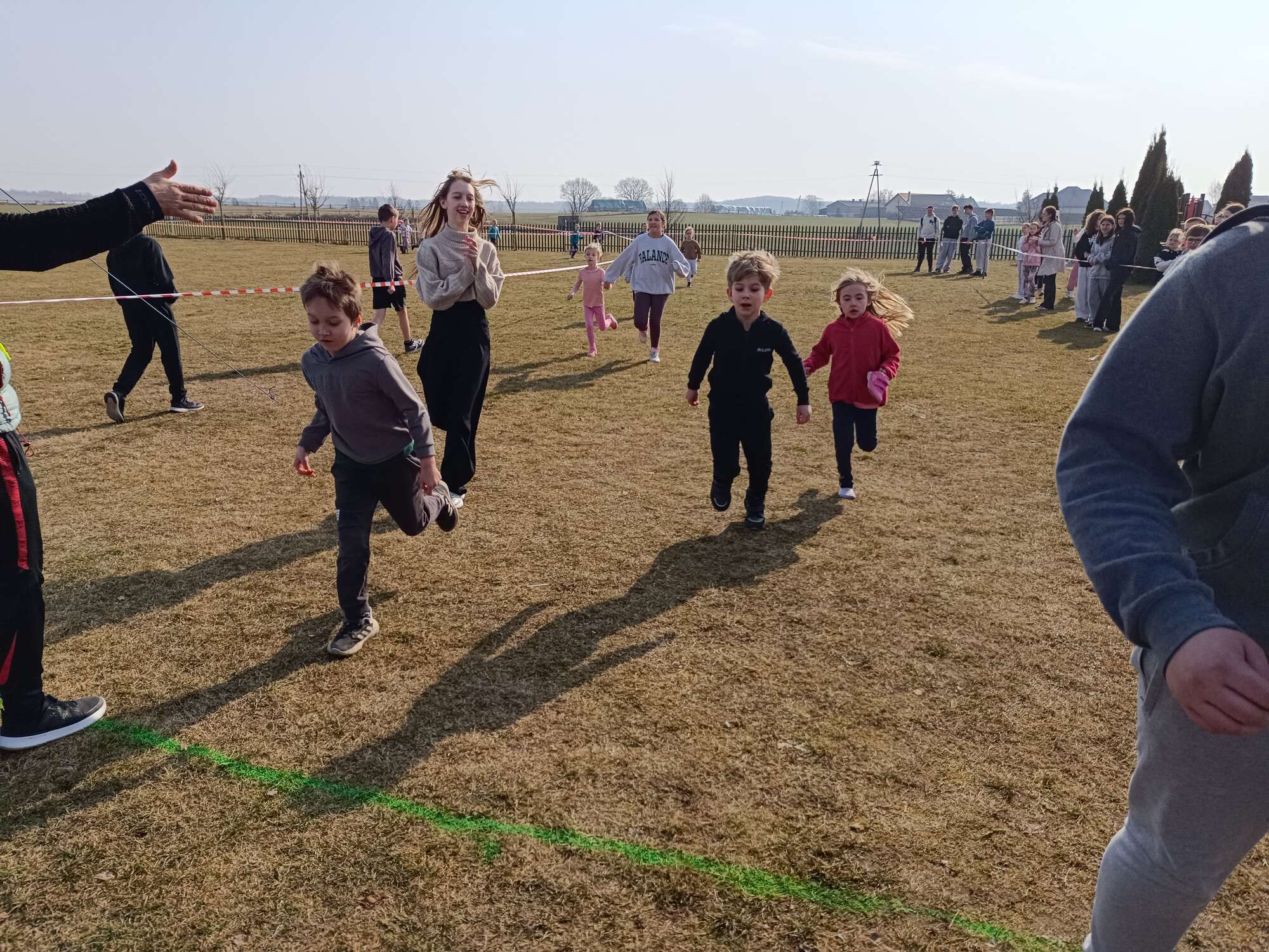 Po części artystycznej odbyły się szkolne biegi pamięci. Na boisku szkolnym rywalizowali uczniowie wszystkich klas – od przedszkola aż po klasę VIII. Wydarzenie miało charakter nie tylko sportowy, ale również symboliczny – było wyrazem pamięci i szacunku wobec tych, którzy oddali życie za wolność naszej Ojczyzny. Za organizację biegów odpowiedzialny był p. Damian Pokładowski.