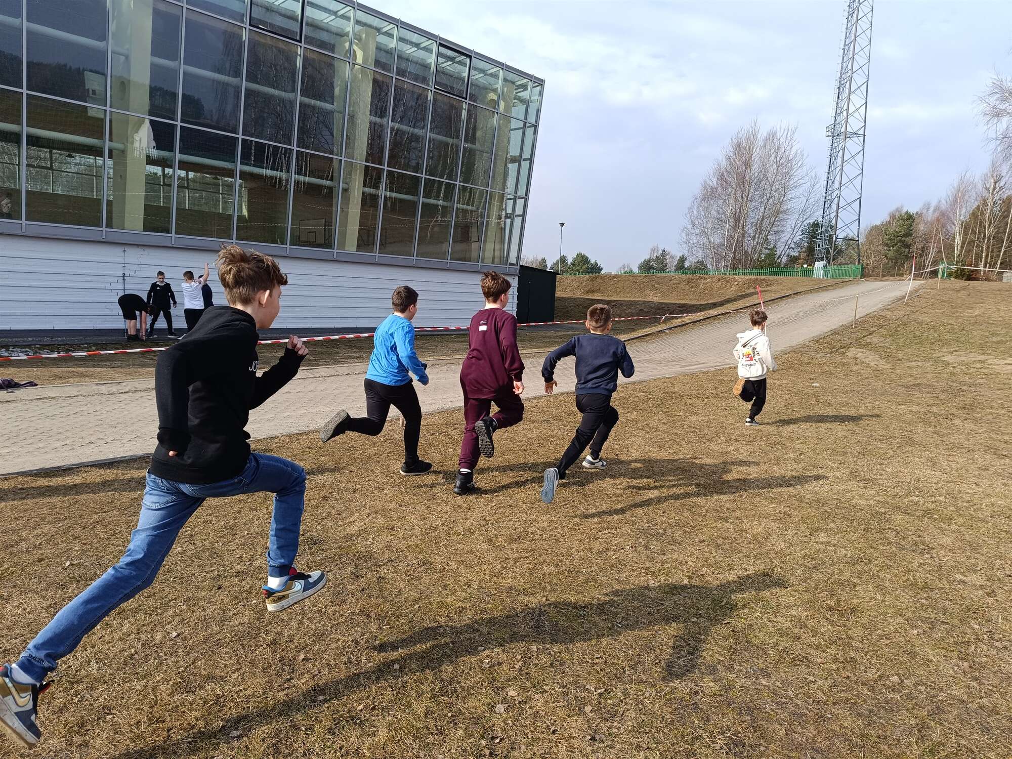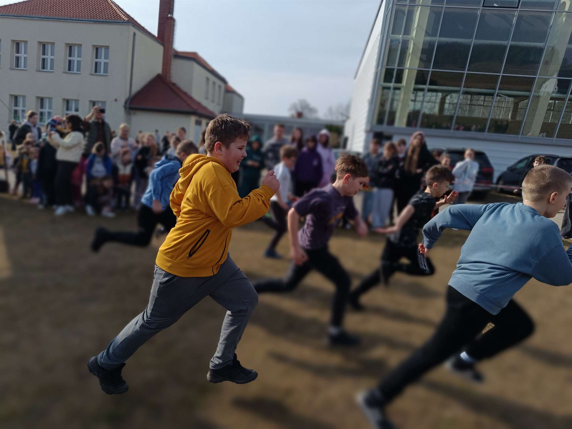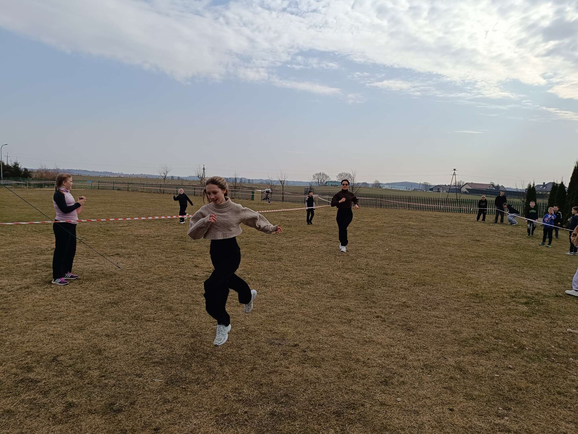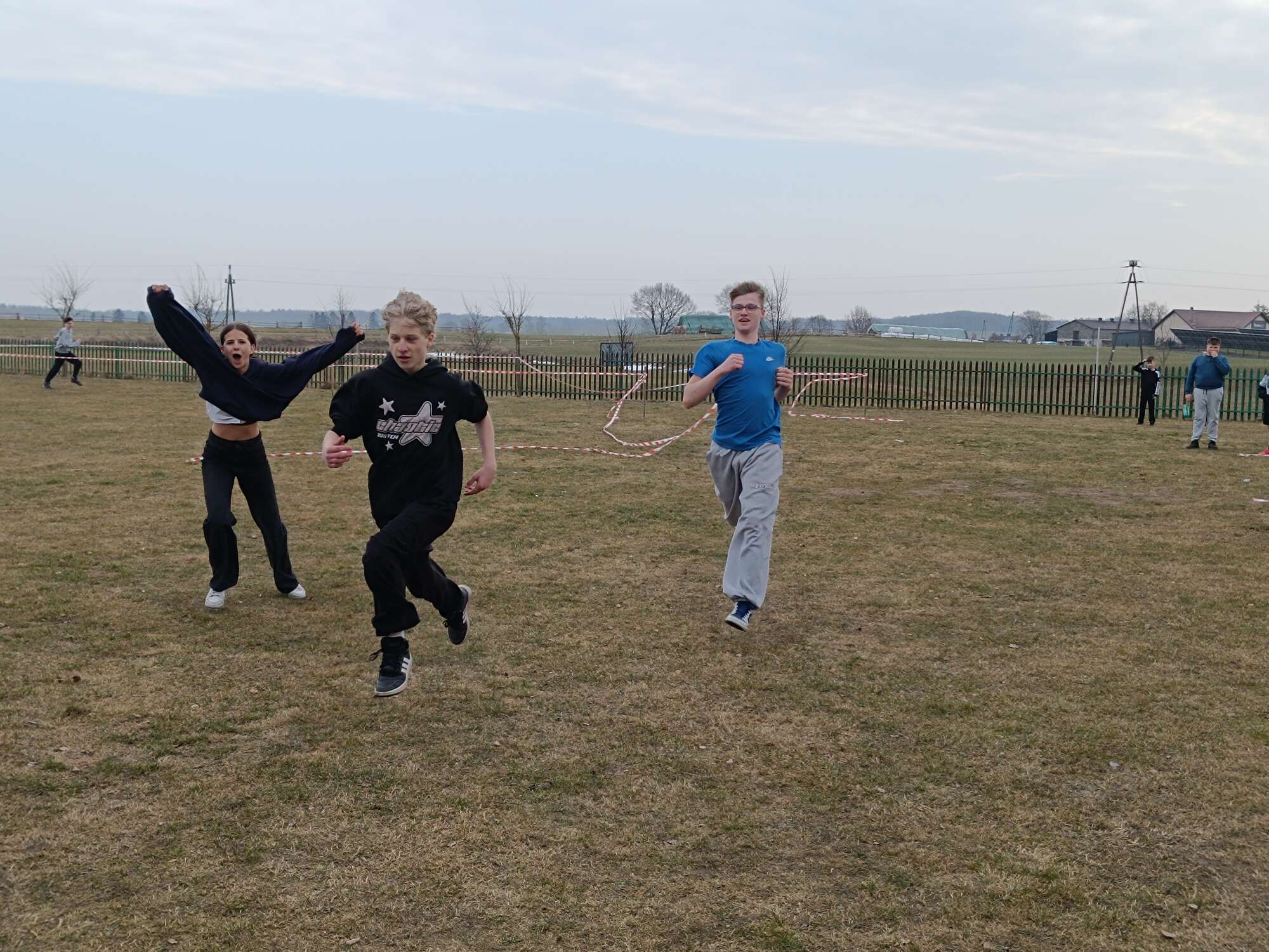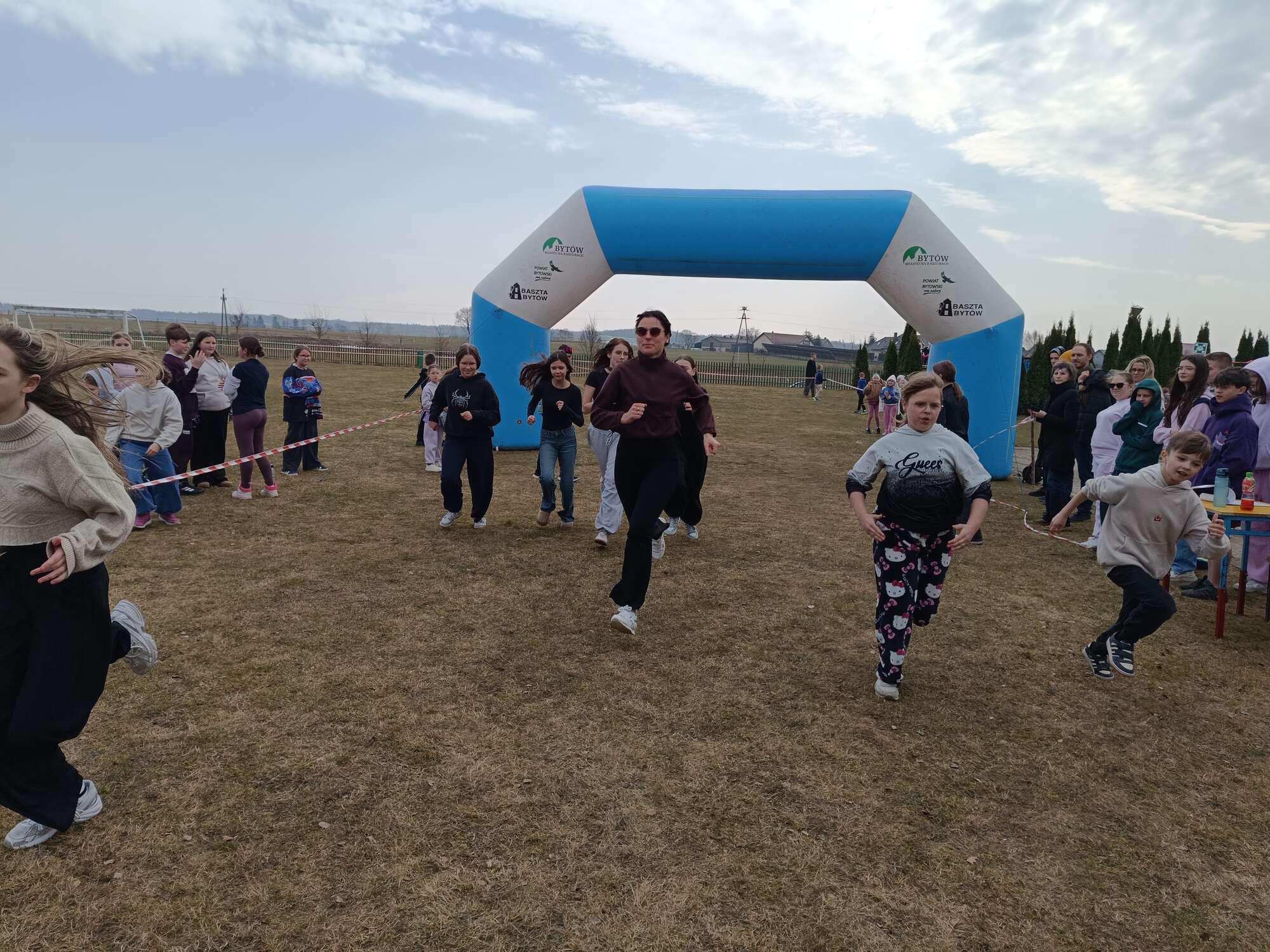 Po części artystycznej odbyły się szkolne biegi pamięci. Na boisku szkolnym rywalizowali uczniowie wszystkich klas – od przedszkola aż po klasę VIII. Wydarzenie miało charakter nie tylko sportowy, ale również symboliczny – było wyrazem pamięci i szacunku wobec tych, którzy oddali życie za wolność naszej Ojczyzny. Za organizację biegów odpowiedzialny był p. Damian Pokładowski.