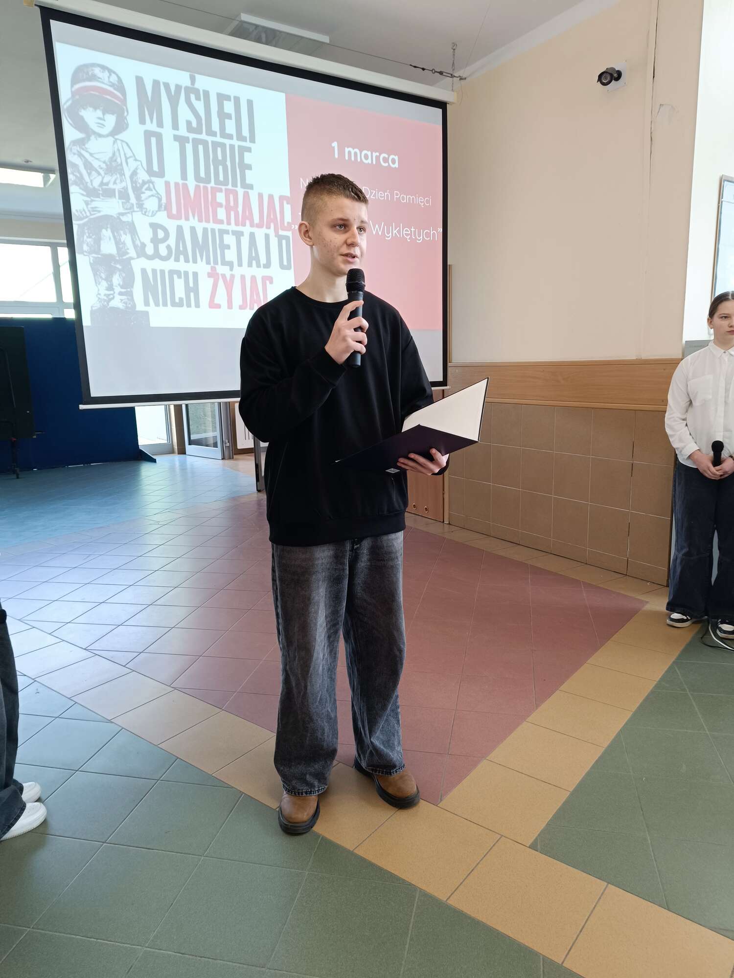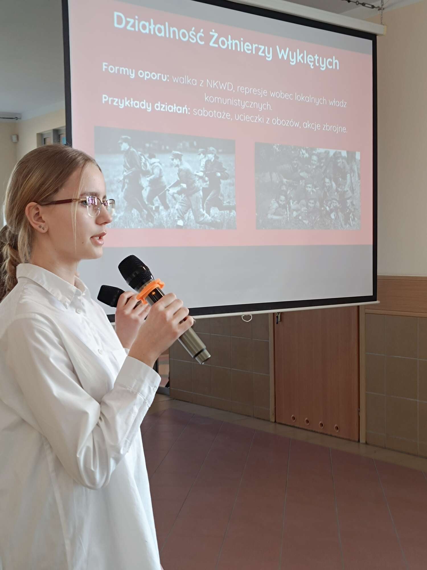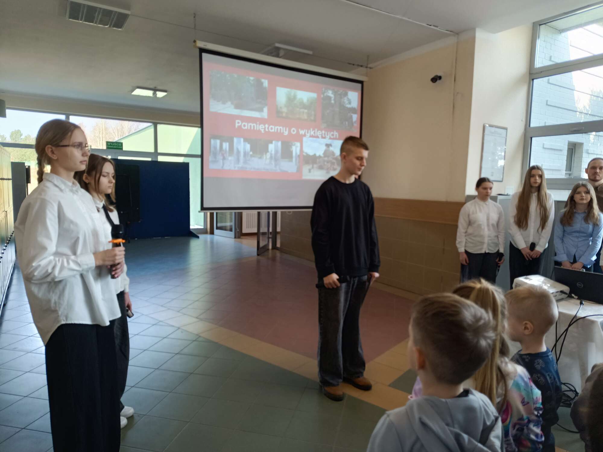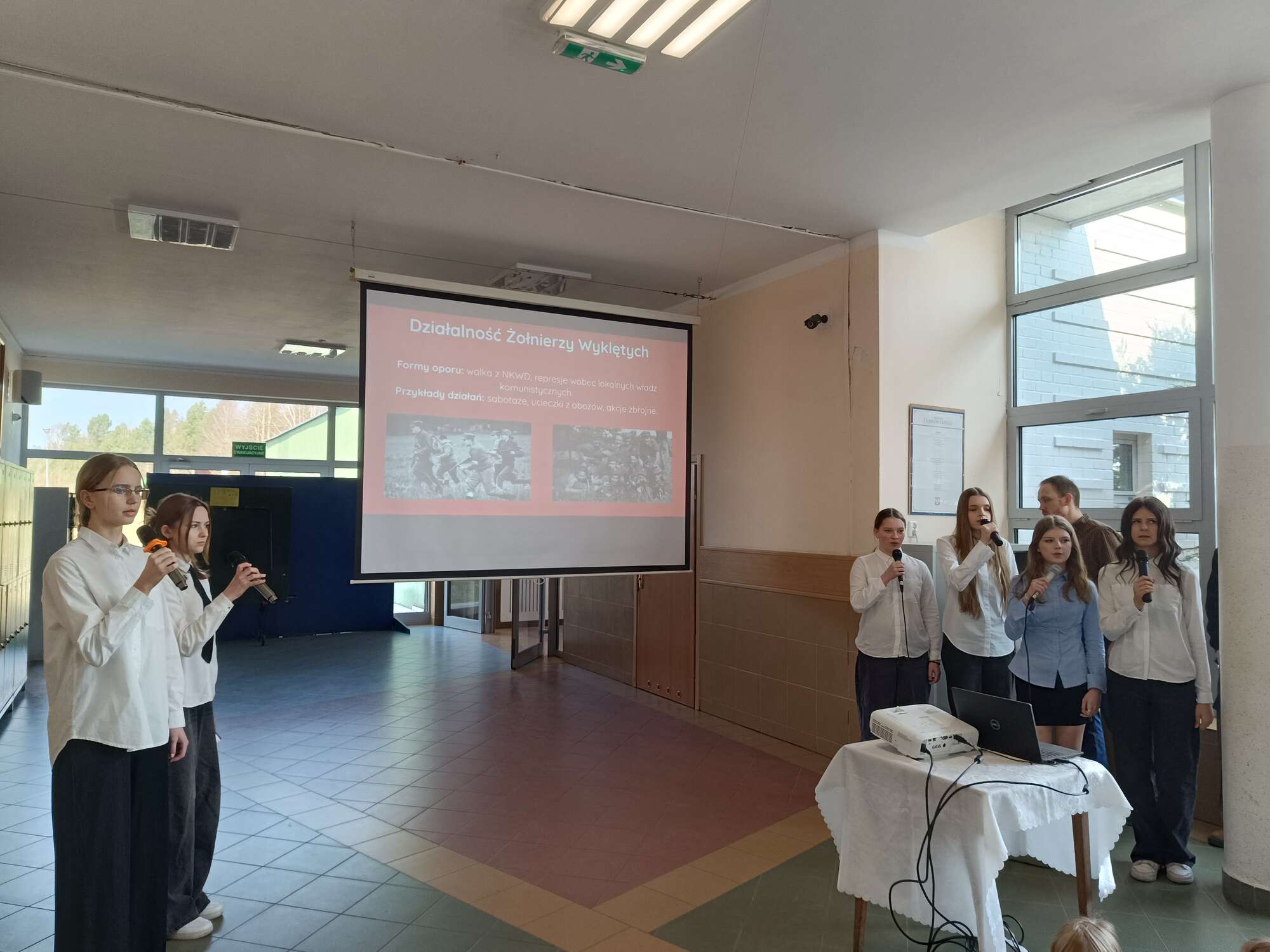 Podczas apelu uczniowie przybliżyli społeczności szkolnej historię żołnierzy podziemia niepodległościowego. Teksty narracyjne zawarte w prezentacji przygotowanej przez Hannę Wolską i Marcelinę Łącką oraz oprawa muzyczna pozwoliły lepiej zrozumieć trudną drogę tych, którzy pozostali wierni swoim ideałom i zapłacili za to najwyższą cenę. Była to ważna lekcja historii i patriotyzmu dla całej społeczności szkolnej.