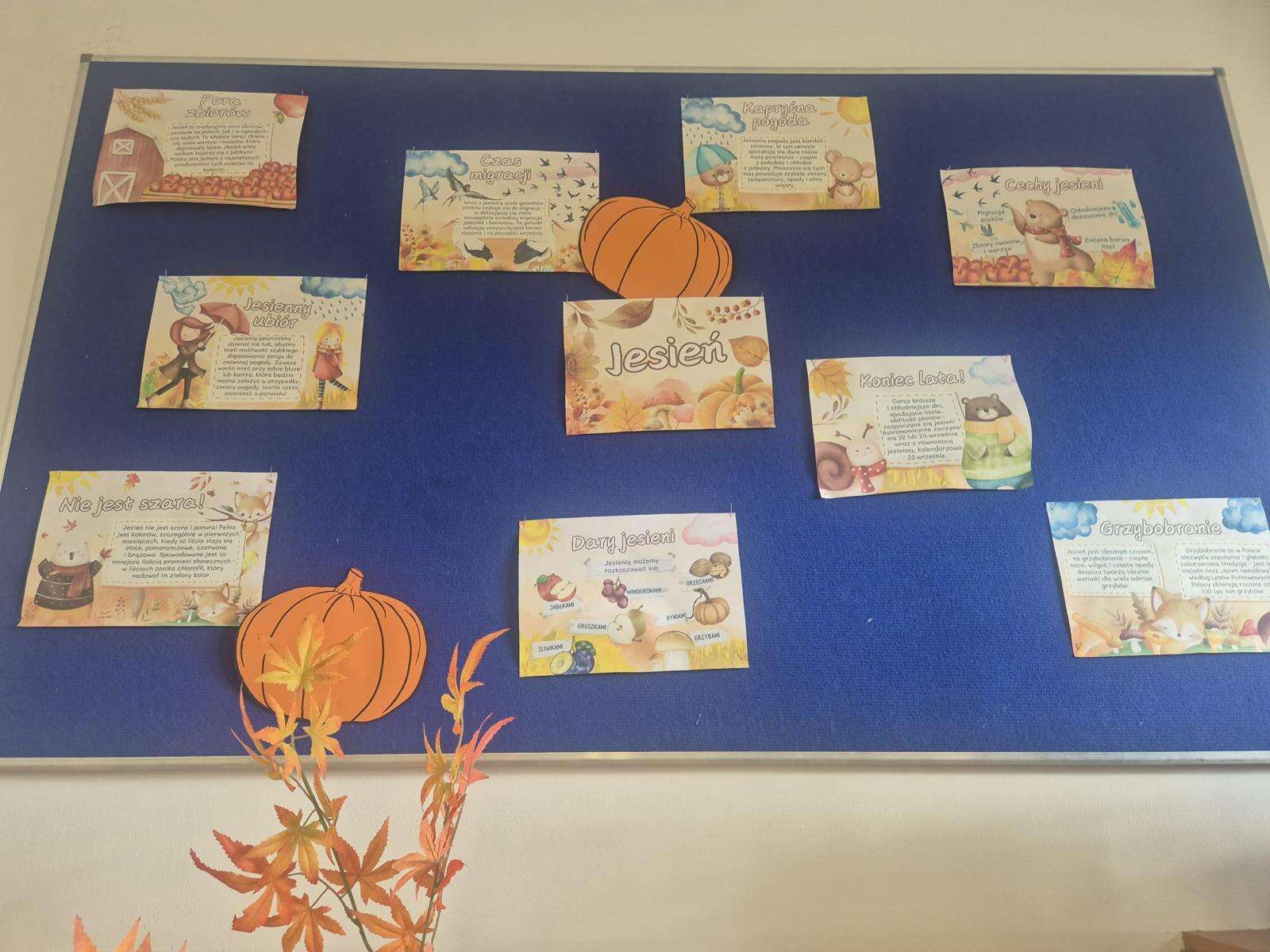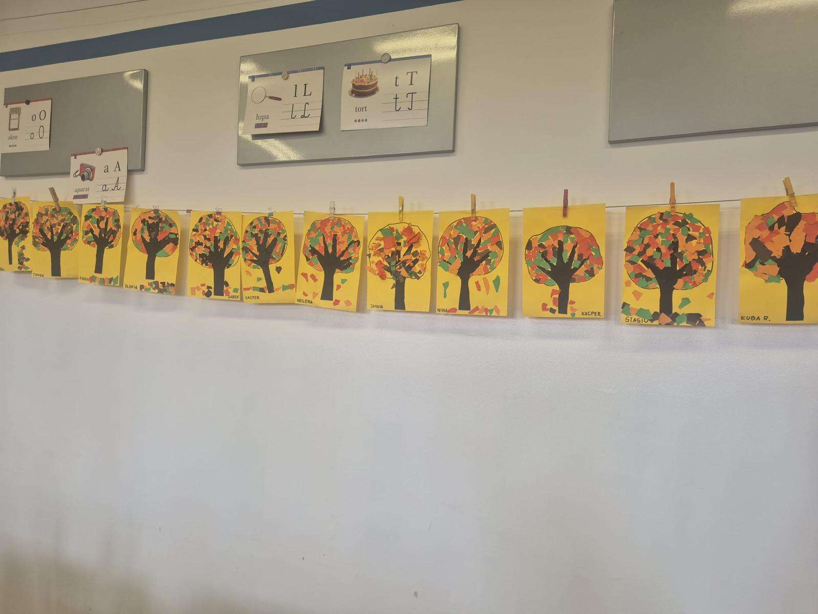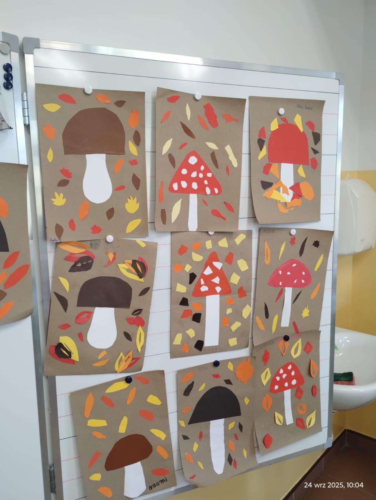 W klasach powstały kąciki przyrodnicze, w których znalazły się jesienne liście, owoce, warzywa oraz kasztany i żołędzie zebrane podczas spaceru. Nie zabrakło także prac plastycznych inspirowanych jesiennymi barwami – dzieci wykonały piękne rysunki, wyklejanki i kompozycje, które ozdobiły sale lekcyjne.