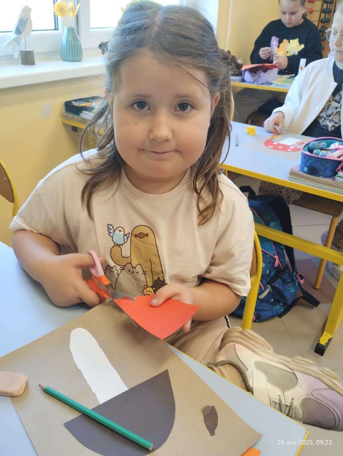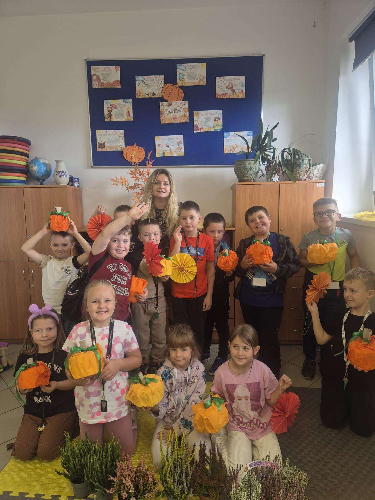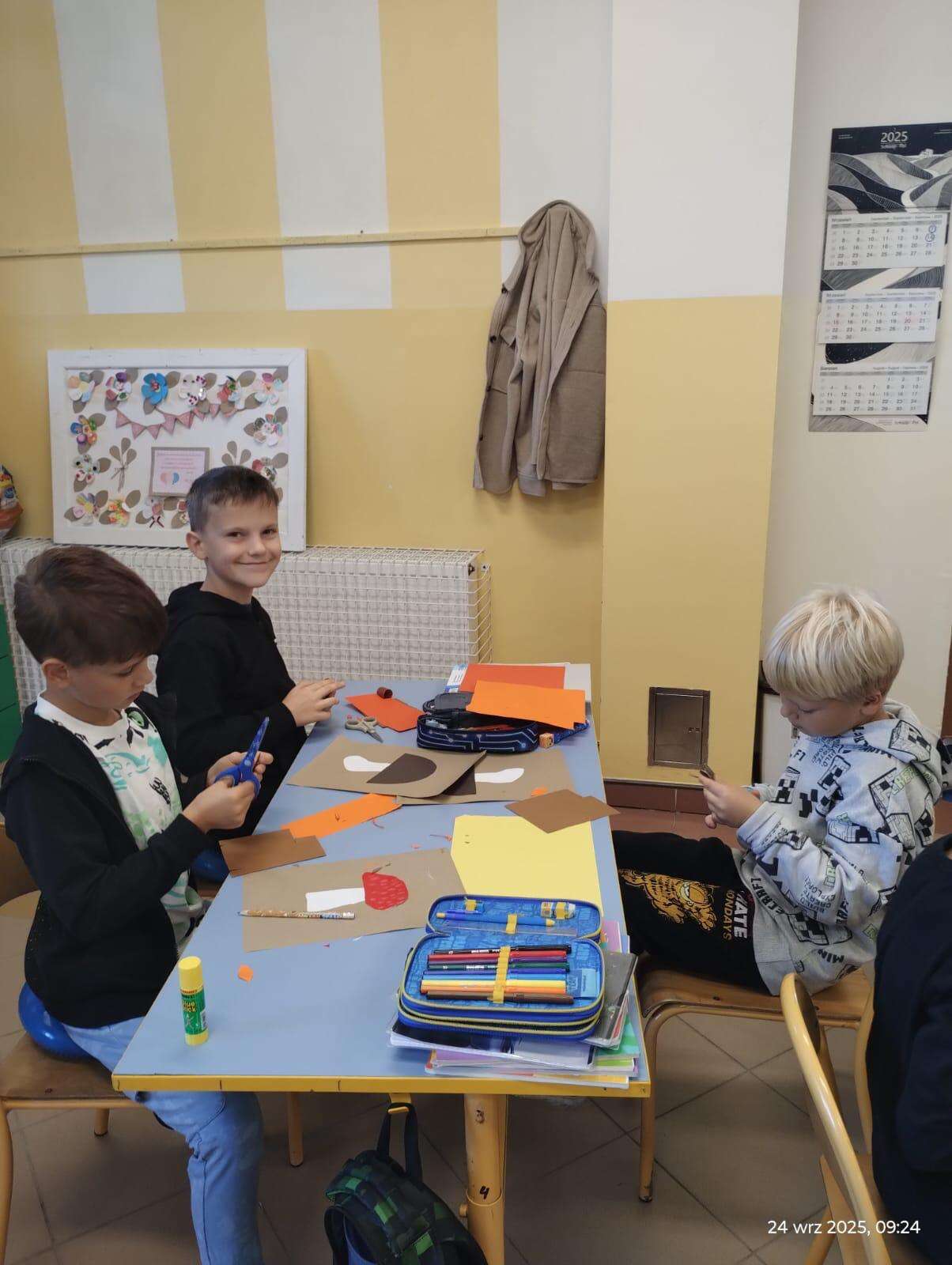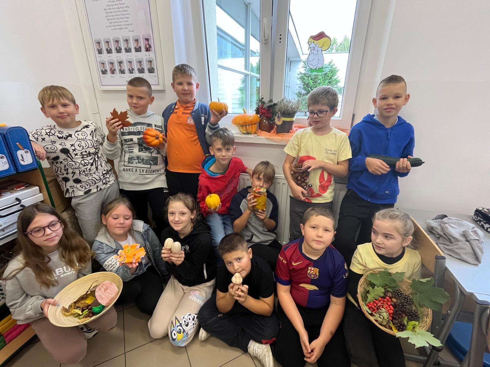 W klasach powstały kąciki przyrodnicze, w których znalazły się jesienne liście, owoce, warzywa oraz kasztany i żołędzie zebrane podczas spaceru. Nie zabrakło także prac plastycznych inspirowanych jesiennymi barwami – dzieci wykonały piękne rysunki, wyklejanki i kompozycje, które ozdobiły sale lekcyjne.