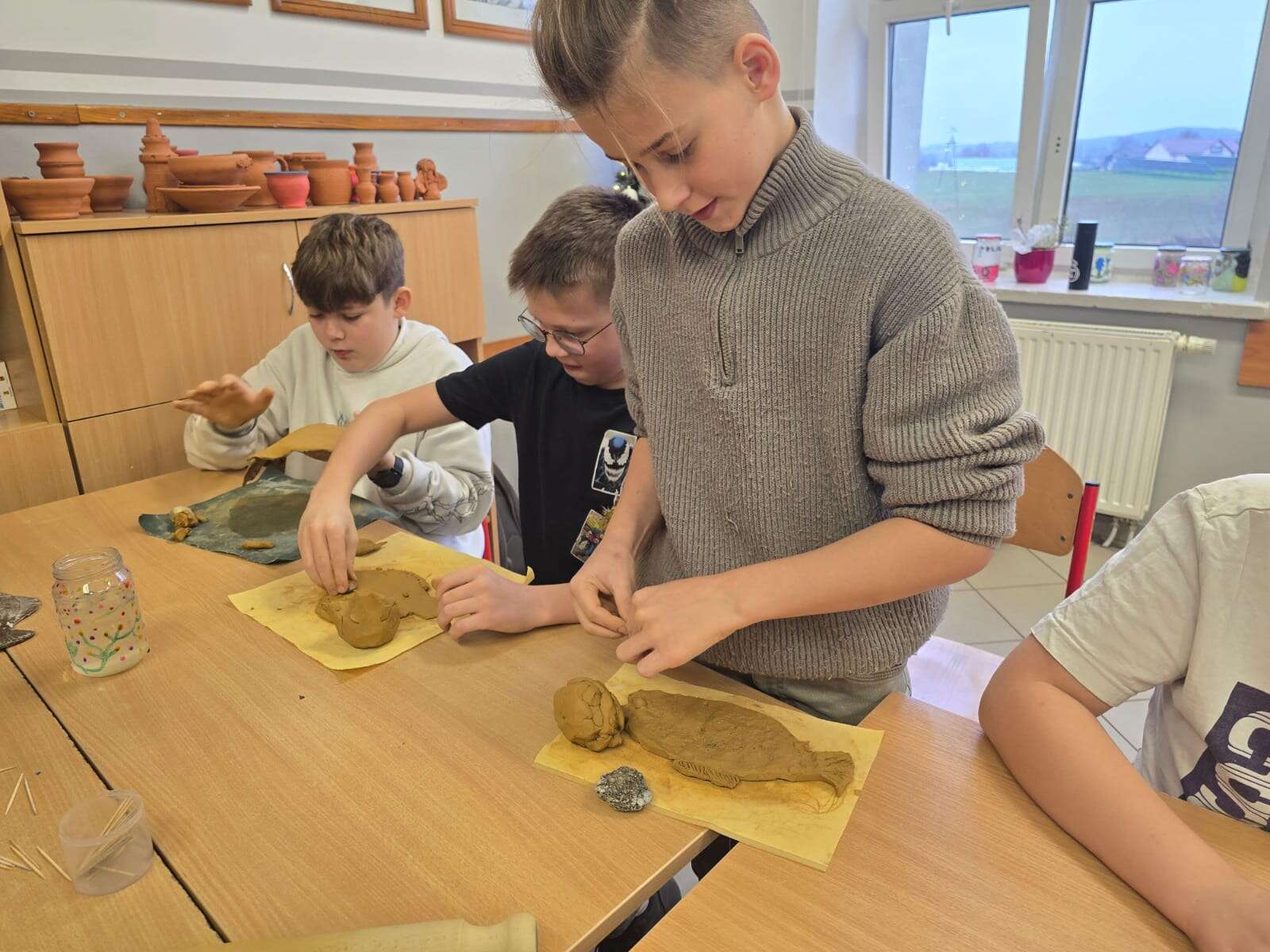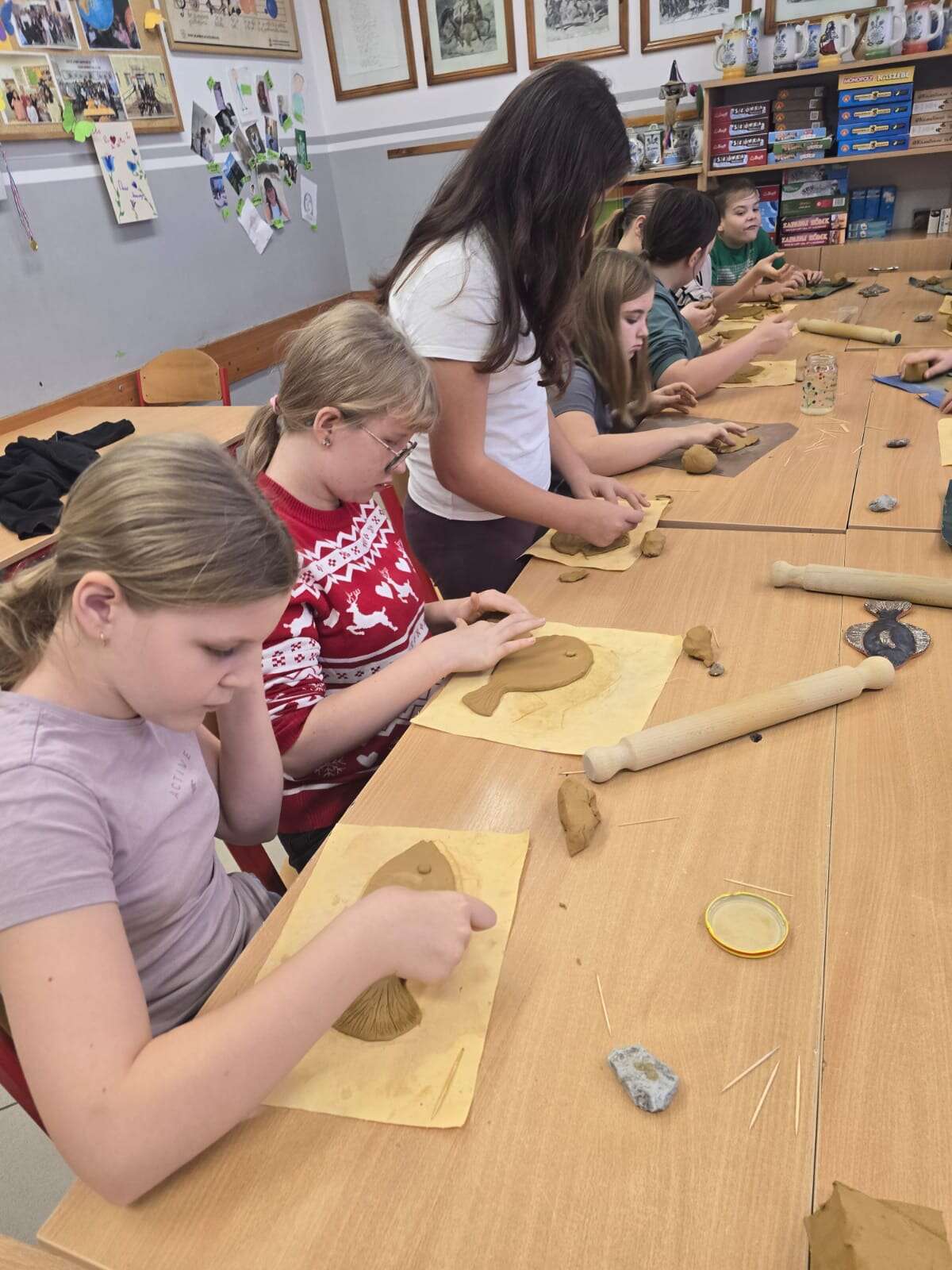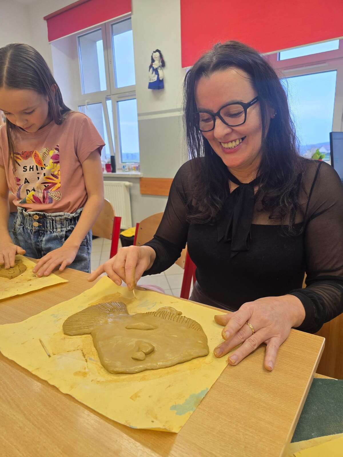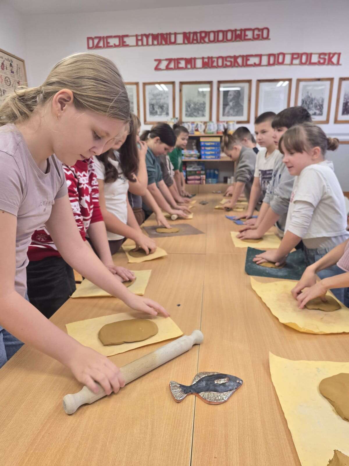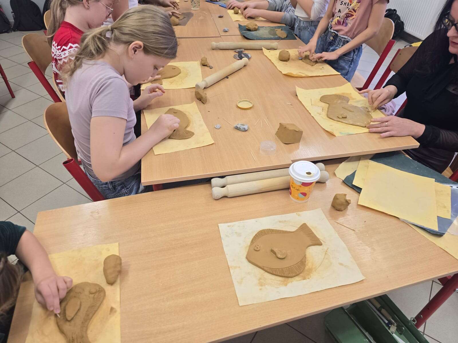 Podczas zajęć nie zabrakło kreatywności, skupienia i radości tworzenia. Uczniowie mogli poznać zarówno dawną technikę pracy z gliną, jak i znaczenie motywów rybnych w kulturze lokalnej. Powstały piękne, niepowtarzalne prace, które z dumą będą zdobić szkolną przestrzeń.