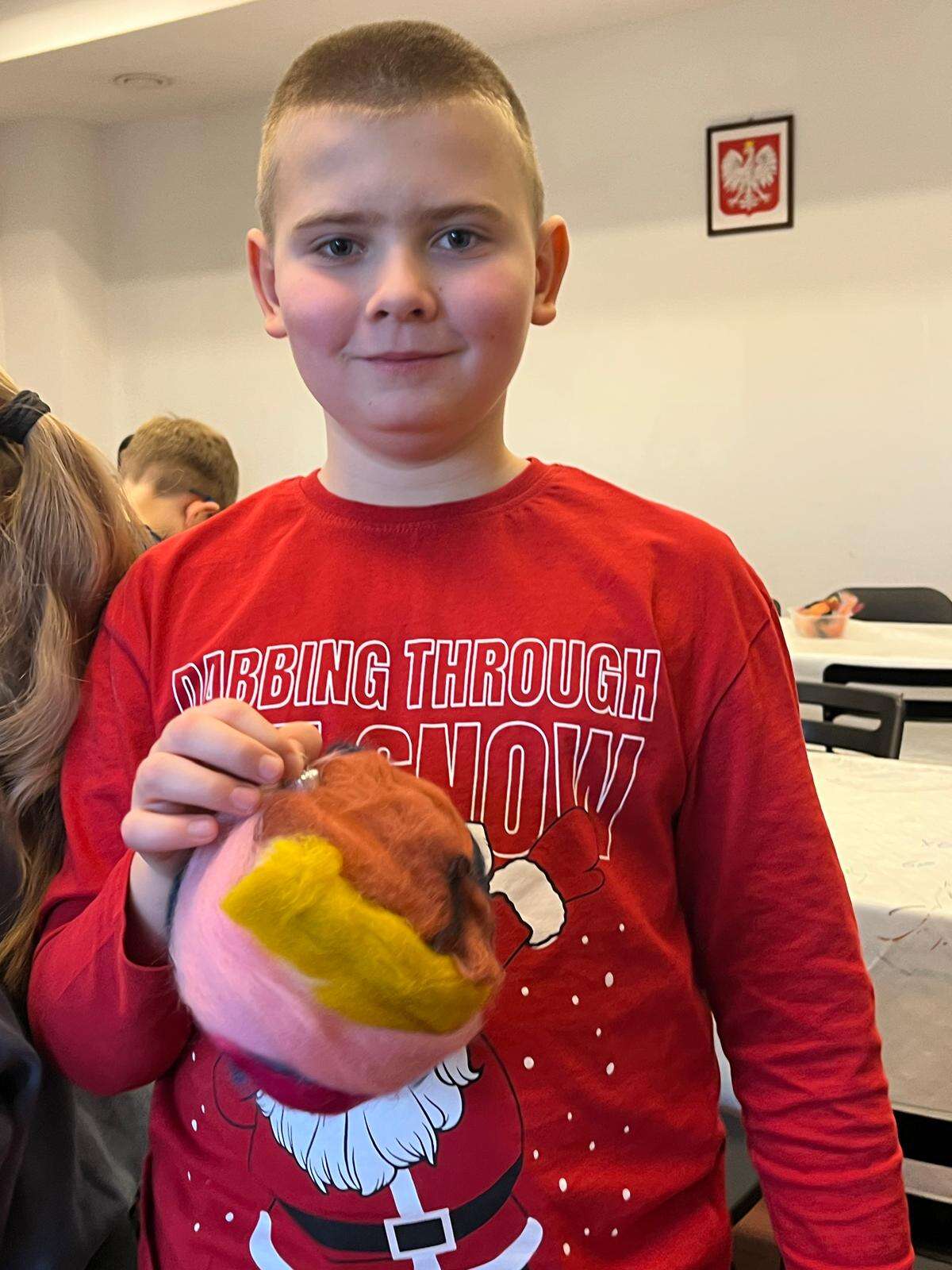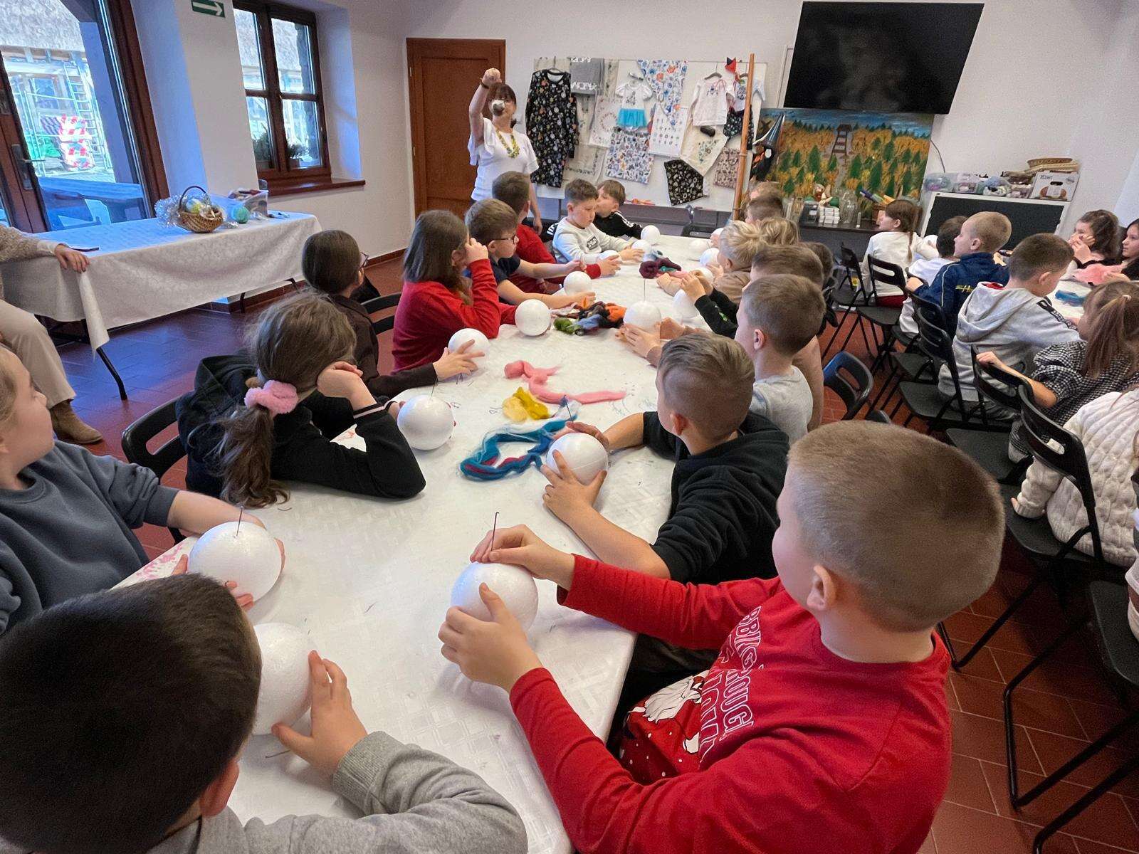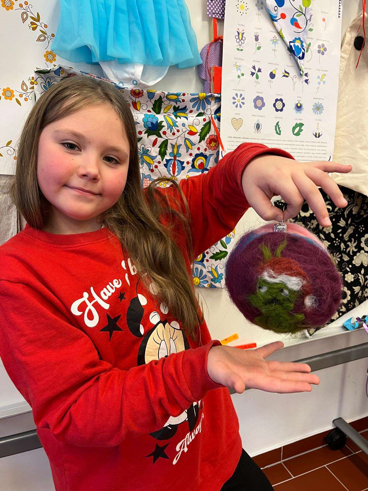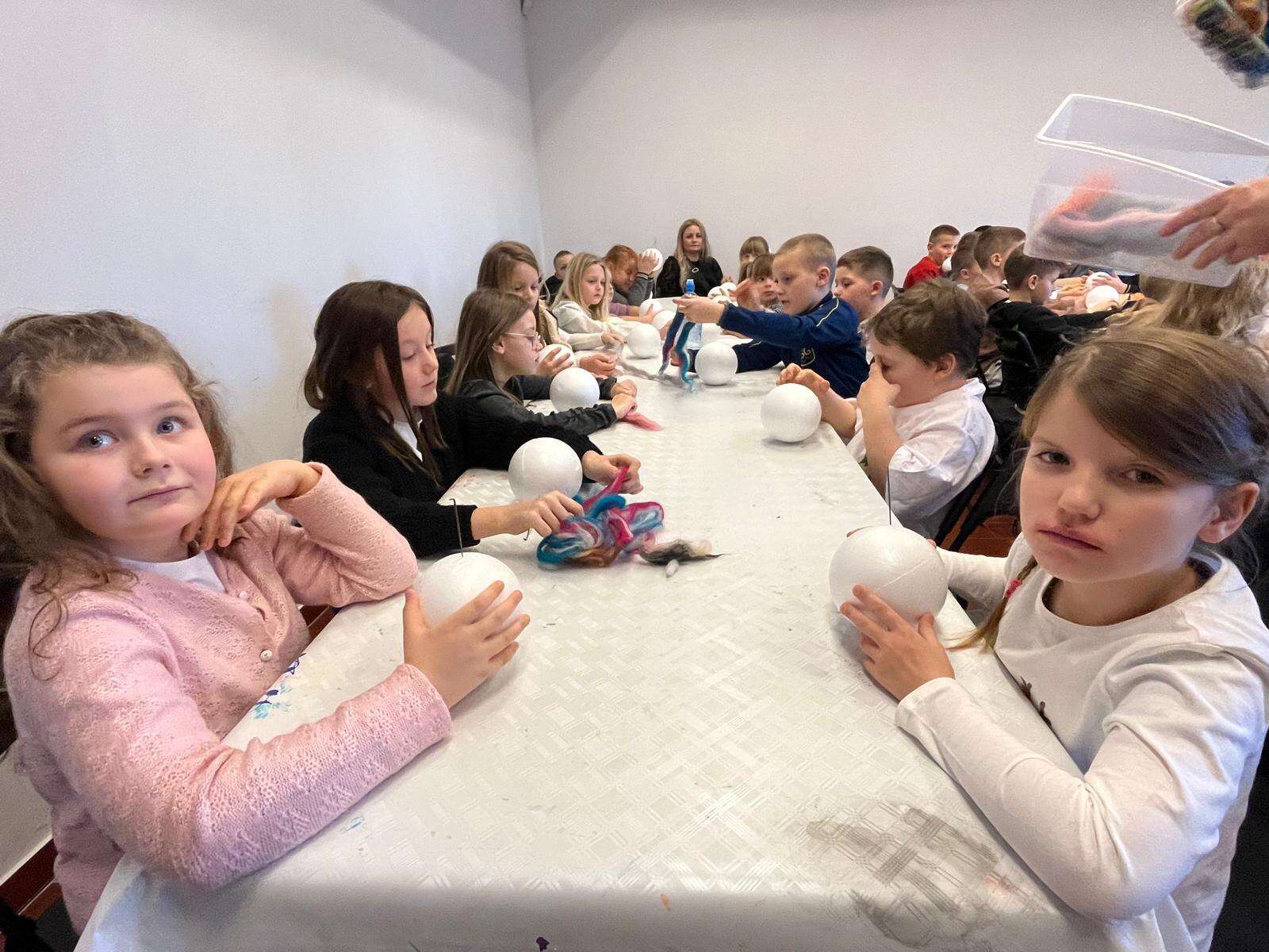 Nie zabrakło również elementów praktycznych – uczniowie degustowali tradycyjne potrawy świąteczne oraz uczestniczyli w warsztatach rękodzielniczych, podczas których filcowali własnoręcznie wykonane bombki. Zajęcia dostarczyły dzieciom wielu radości, rozwijały ich kreatywność oraz pozwoliły w ciekawy sposób przybliżyć regionalne dziedzictwo kulturowe.