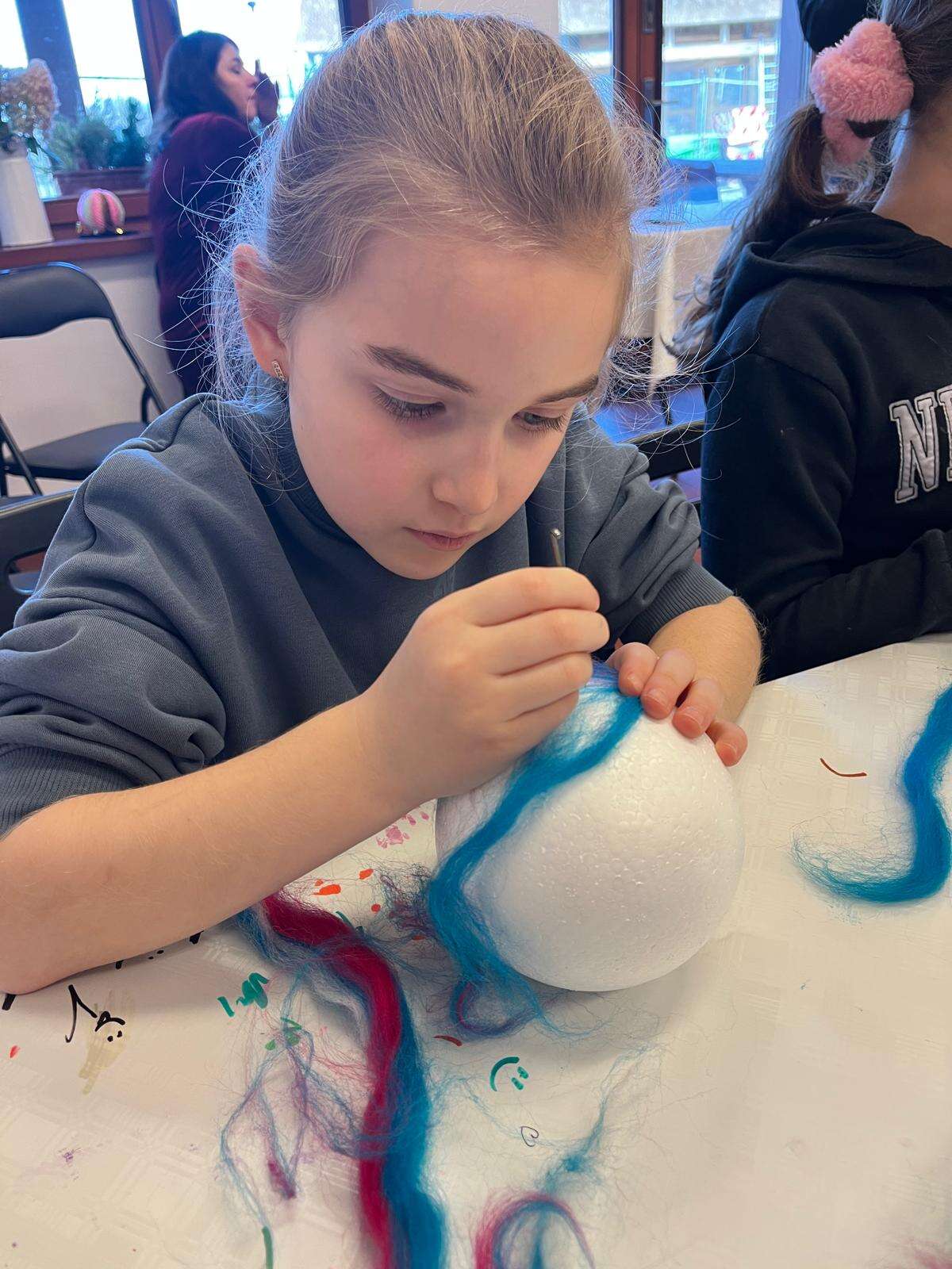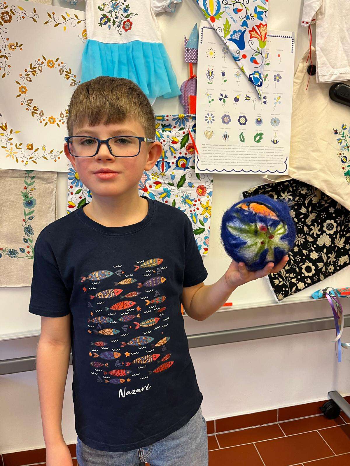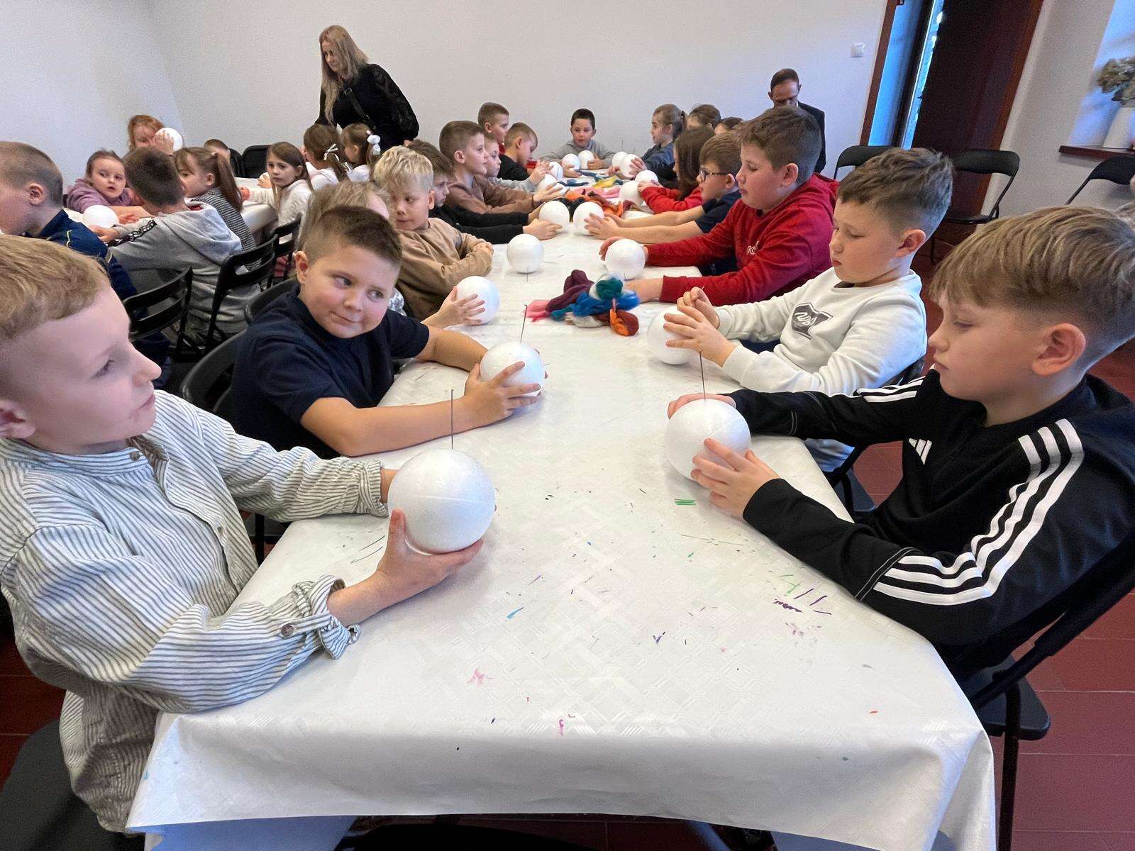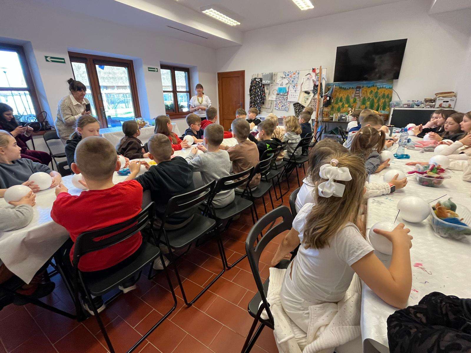 Nie zabrakło również elementów praktycznych – uczniowie degustowali tradycyjne potrawy świąteczne oraz uczestniczyli w warsztatach rękodzielniczych, podczas których filcowali własnoręcznie wykonane bombki. Zajęcia dostarczyły dzieciom wielu radości, rozwijały ich kreatywność oraz pozwoliły w ciekawy sposób przybliżyć regionalne dziedzictwo kulturowe.