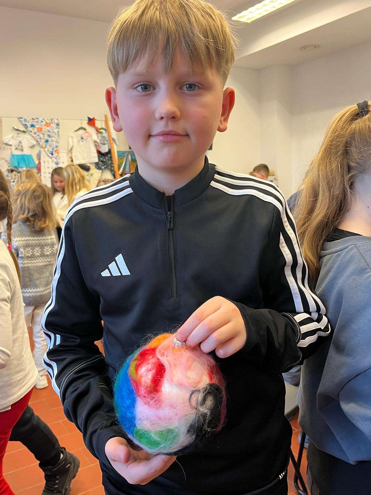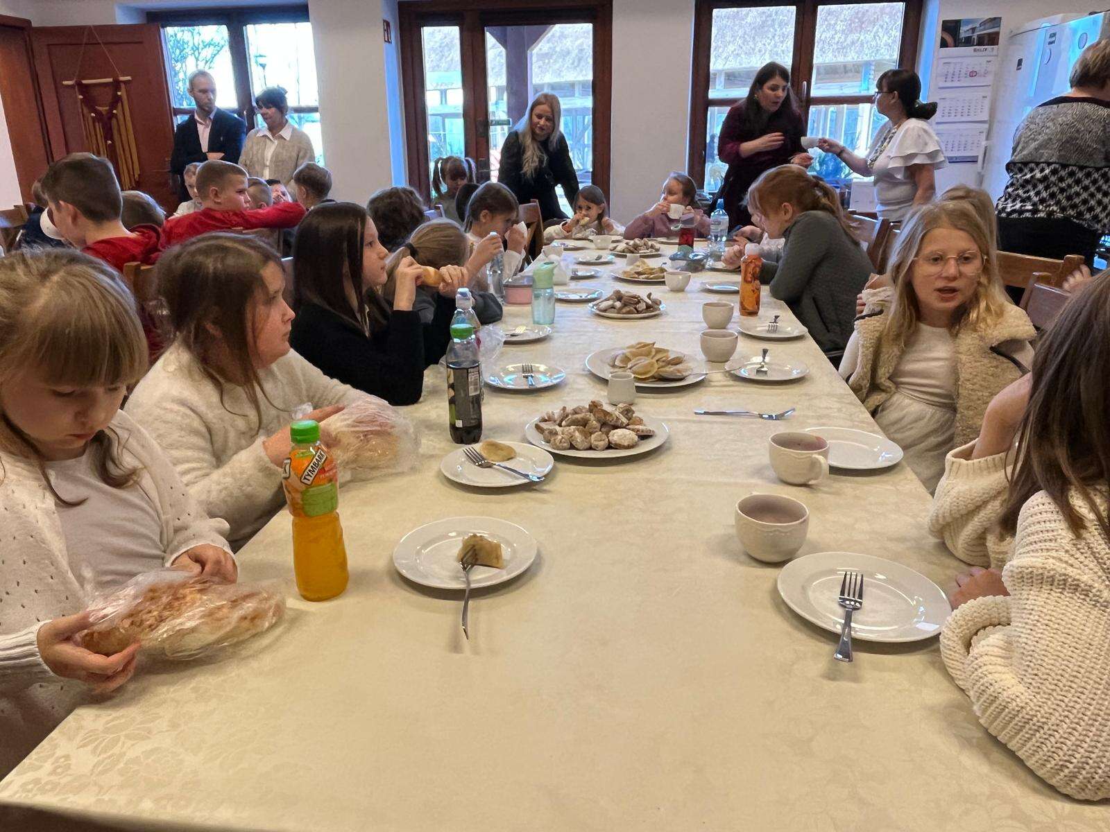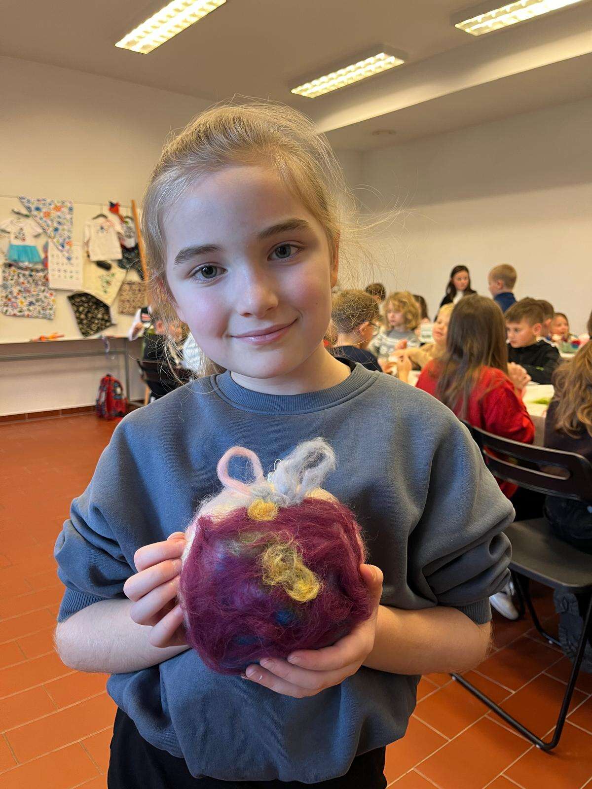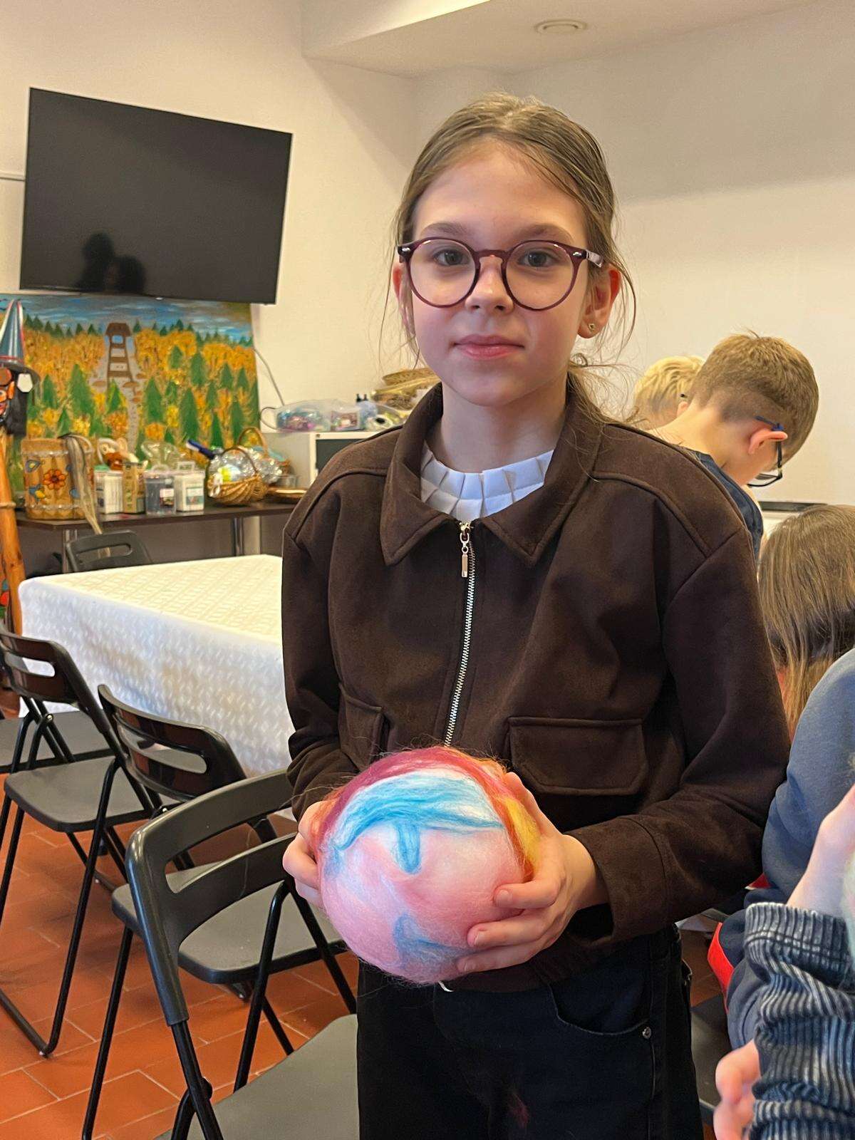 Nie zabrakło również elementów praktycznych – uczniowie degustowali tradycyjne potrawy świąteczne oraz uczestniczyli w warsztatach rękodzielniczych, podczas których filcowali własnoręcznie wykonane bombki. Zajęcia dostarczyły dzieciom wielu radości, rozwijały ich kreatywność oraz pozwoliły w ciekawy sposób przybliżyć regionalne dziedzictwo kulturowe.