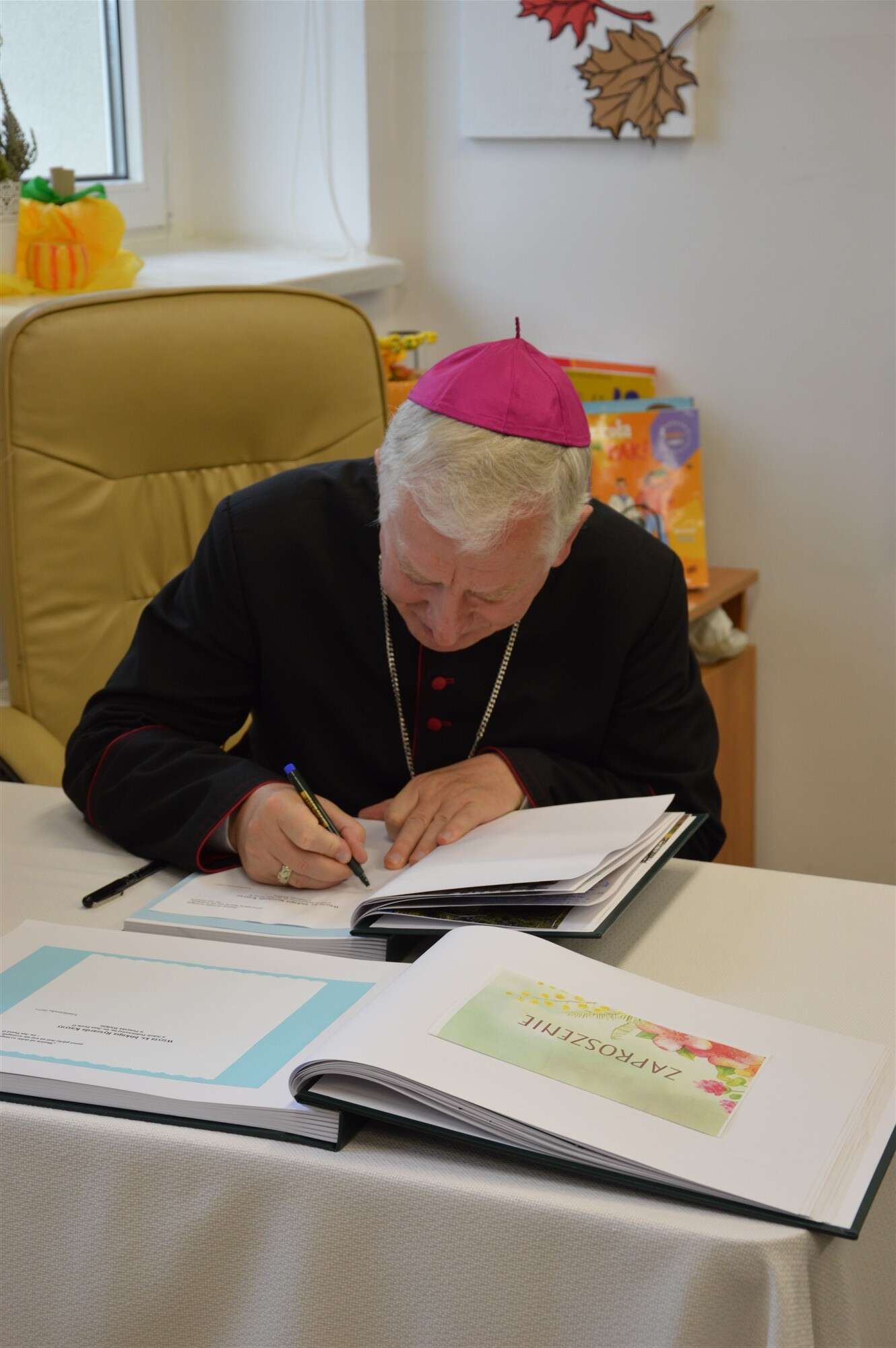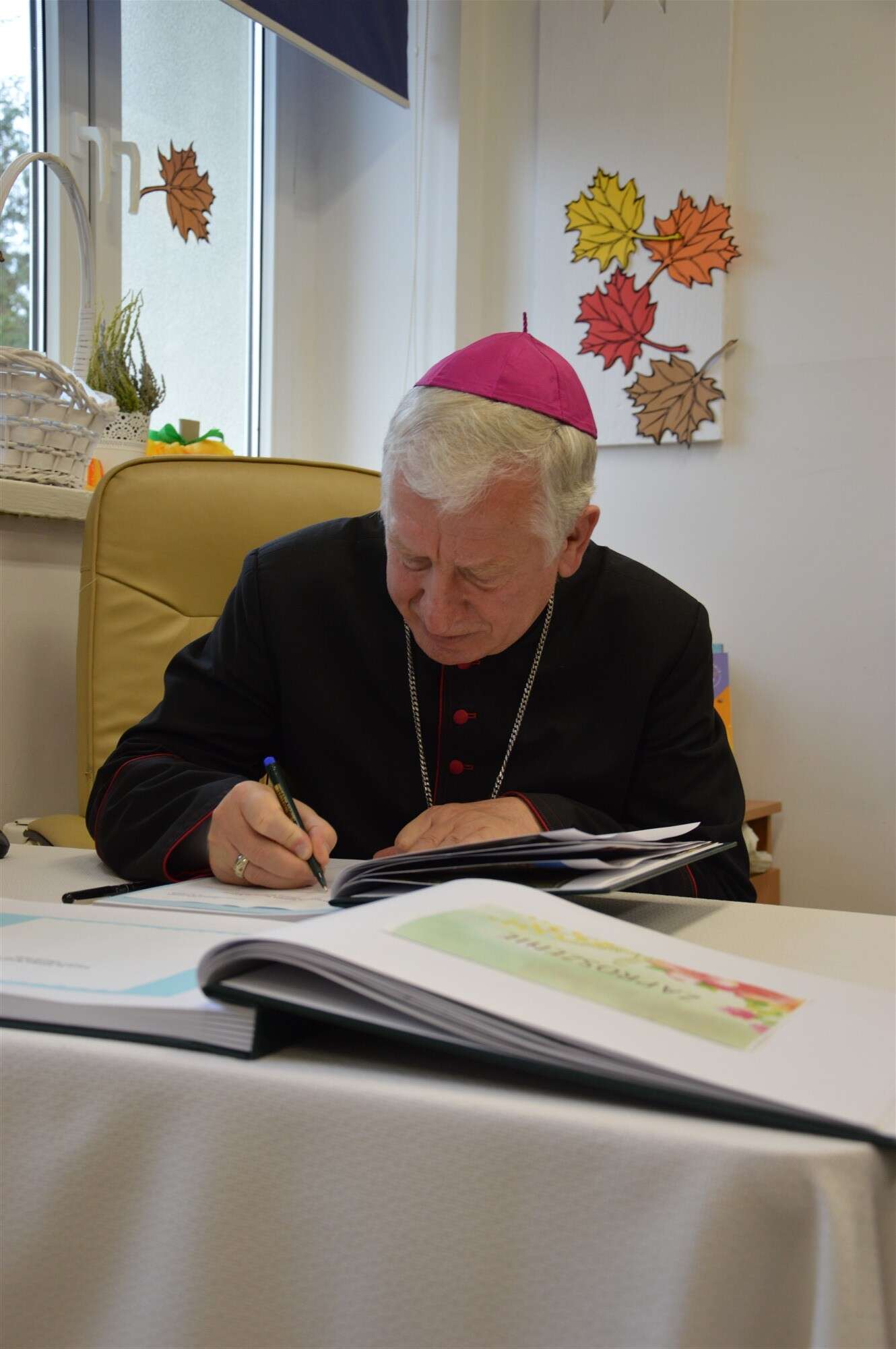 Na pamiątkę wizyty ks. biskup Ryszard Kasyna wpisał się do kroniki szkolnej oraz do kroniki zespołu kaszubskiego.