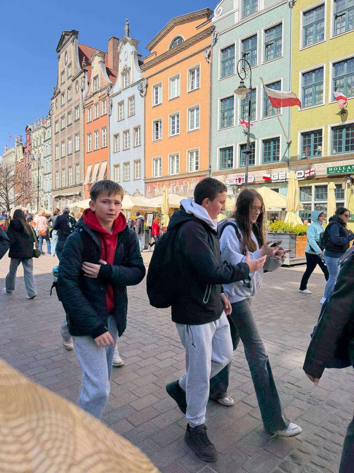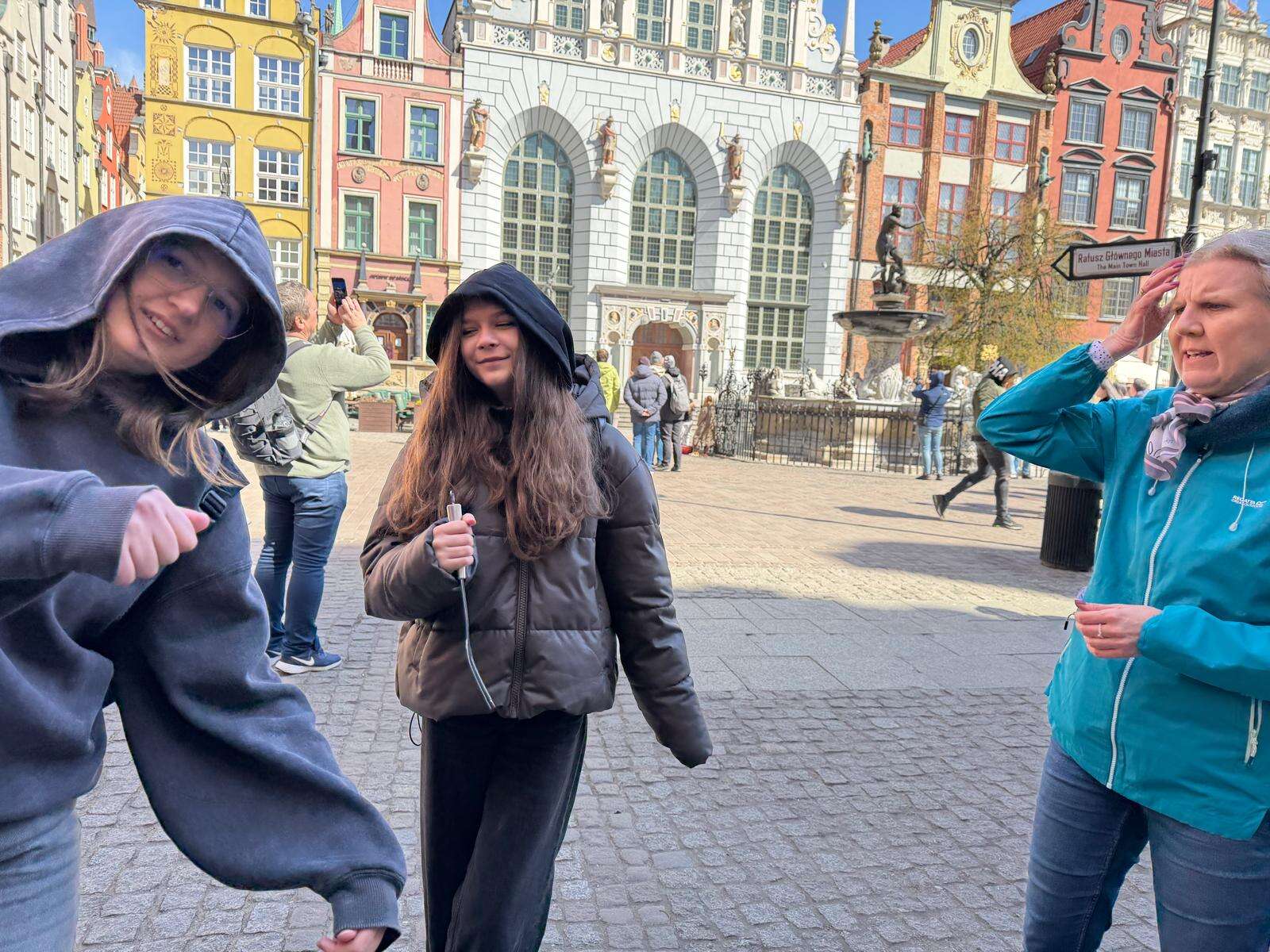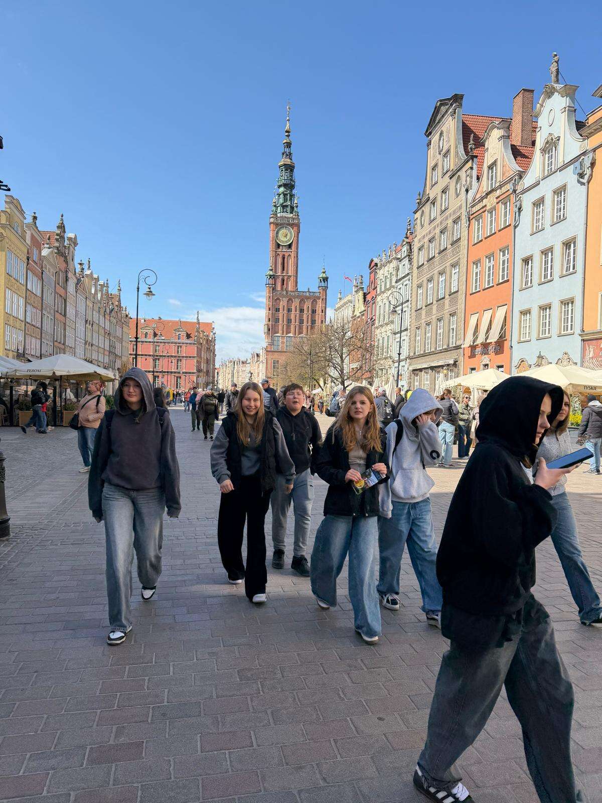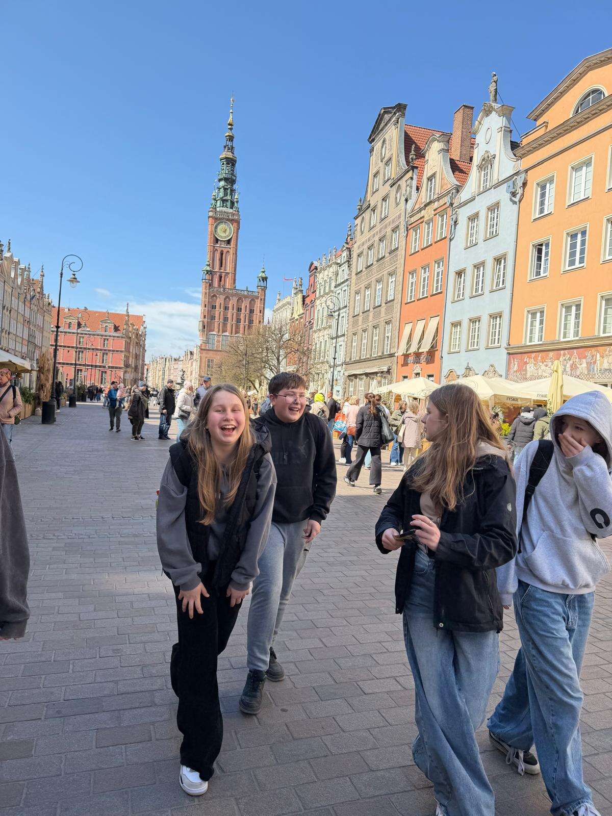Spacer z przewodnikiem poprowadził uczestników przez serce miasta – ulicę Długą i Długi Targ, gdzie historia przeplata się z codziennym życiem. Uczniowie z zaciekawieniem słuchali opowieści o dawnych kupcach i mieszkańcach Gdańska, podziwiając Fontannę Neptuna – symbol miasta. Kolejnym punktem programu była imponująca Bazylika Mariacka, której ogrom i niezwykła architektura zrobiły na wszystkich duże wrażenie. Nie zabrakło również wizyty przy słynnym Żurawiu nad Motławą – jednym z najstarszych portowych dźwigów w Europie, przypominającym o bogatej, morskiej historii miasta.